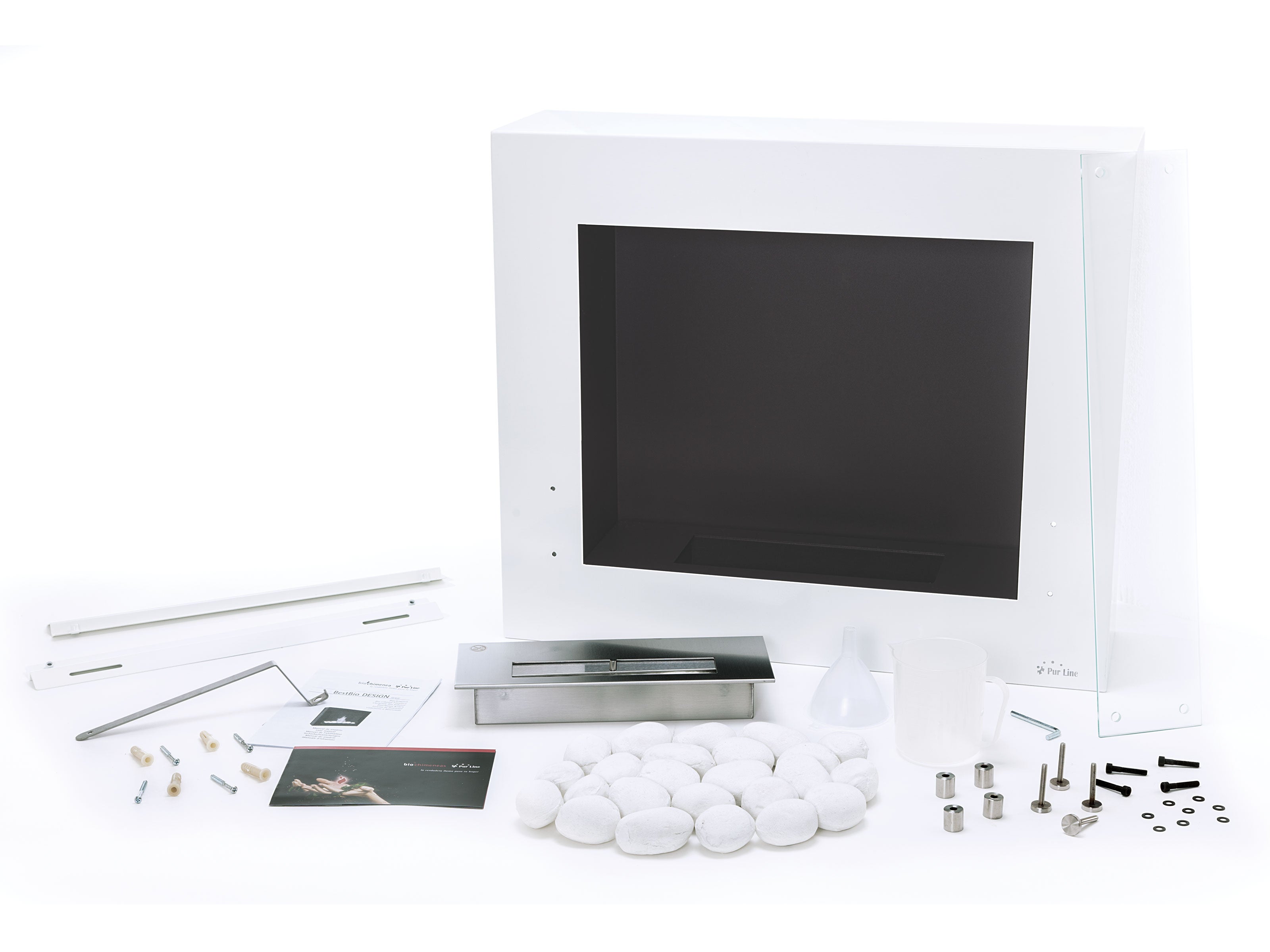 ¿Alguna vez pensaste tener una chimenea en tu casa? Gracias a Purline ya puedes conseguirlo, solo necesitas esta biochimenea, un poco de su combustible líquido de origen natural y rápidamente tendrás un fuego con llamas y calor reales en tu salón, dormitorio o despacho, limpia, sin humos ni cenizas y de fácil mantenimiento. Además incorpora fibra cerámica para garantizar su seguridad.Incluye kit de colgado, y su tamaño (LxPxH: 70 x 20 x 60 cm), su solidez (18.5kg) y su diseño moderno la hacen perfecta para poner en la pared o encastrarla, sin necesidad de obras ni salida de humos, ayudando a crear un ambiente acogedor, cálido y genuino. La BESTBIO DESIGN W está fabricada en acero lacado blanco, con un protector de cristal de vidrio templado y está diseñada en forma de rectángulo al estilo clásico de las chimeneas de leña. Toda la serie BESTBIO DESIGN incluye una jarra y un embudo para facilitar el llenado del depósito, y un kit de piedras cerámicas decorativas que aportarán exclusividad a este minimalista modelo. Su bloque de combustión tiene una capacidad de 1.2L y ofrece la posibilidad de regular la intensidad de la llama, además su potencia calorífica es equivalente a 2KW.