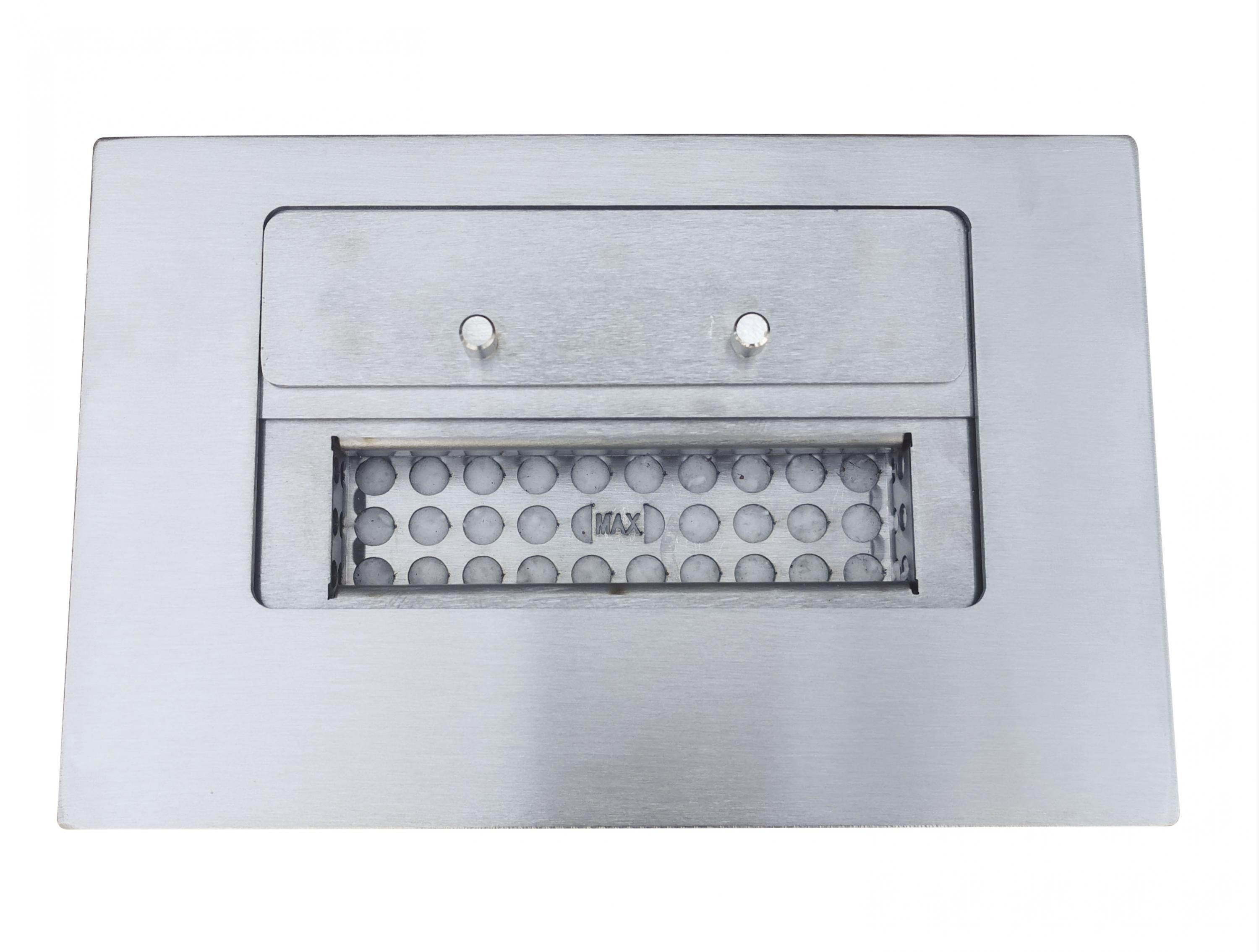 Esta chimenea está fabricada en acero esmaltado negro y cuenta con un cristal frontal de vidrio templado. Su diseño clásico rectangular le da un toque elegante y resalta la intensidad del fuego.