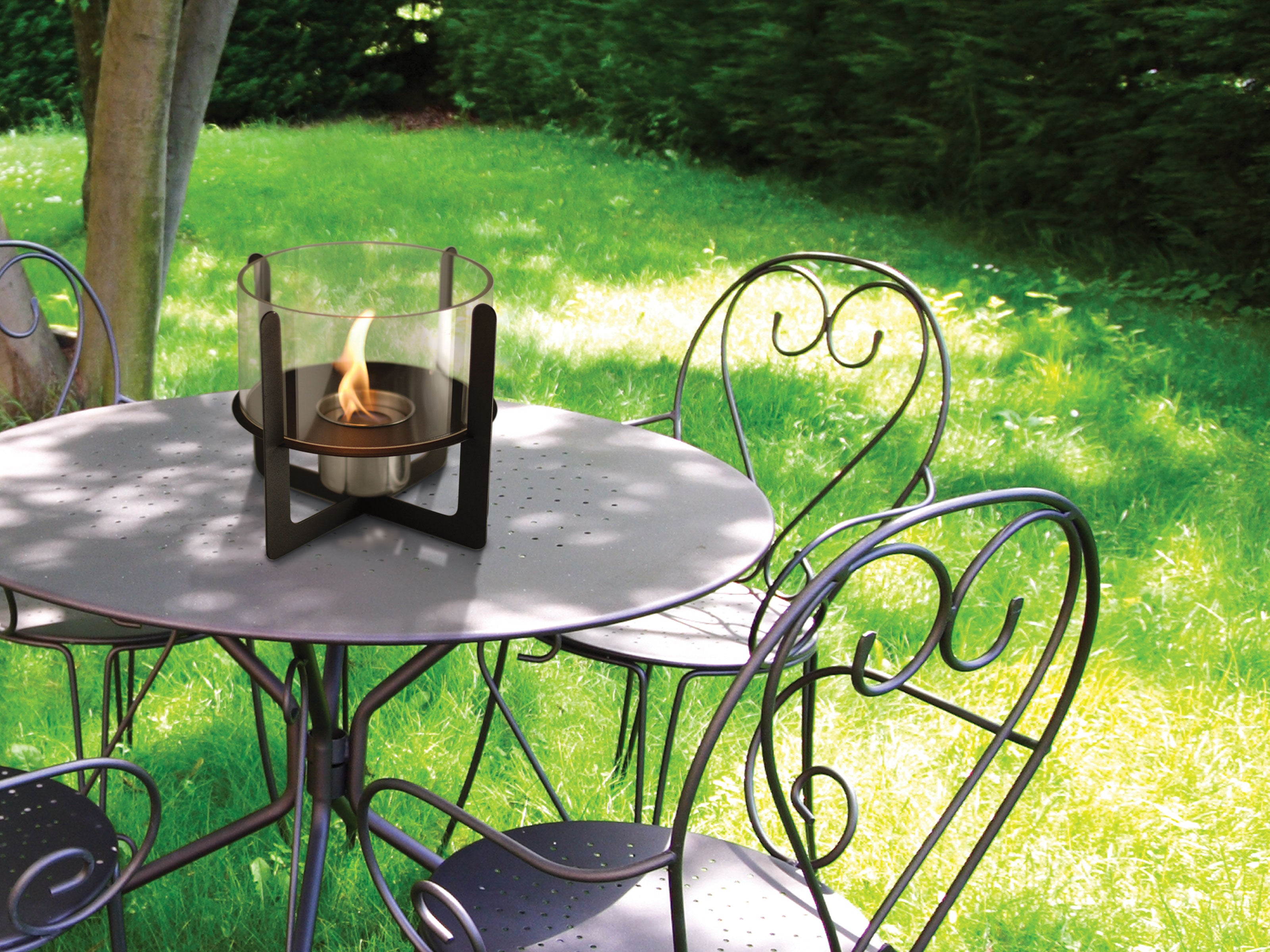 Definitivamente sí. Su diseño moderno y portátil la hace ideal para terrazas y jardines, permitiéndote disfrutar de un ambiente cálido y genuino al aire libre.