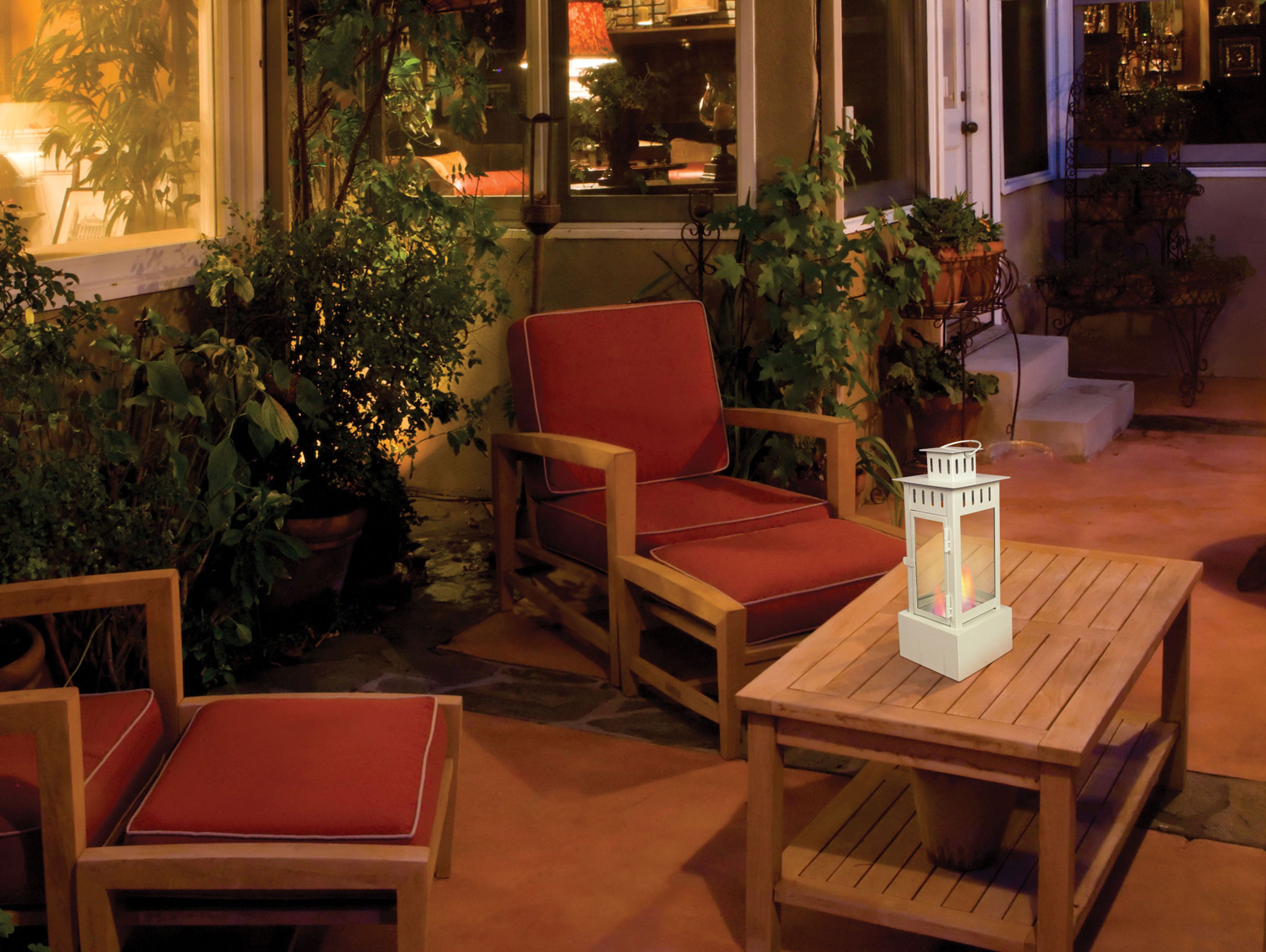 Su tamaño (LxPxH: 15 x 15 x 38 cm), su ligereza (2,8kg) y su diseño moderno la hacen perfecta para usar en terrazas y jardines, en suelo o sobre muebles, ayudando a crear un ambiente acogedor, cálido y genuino.