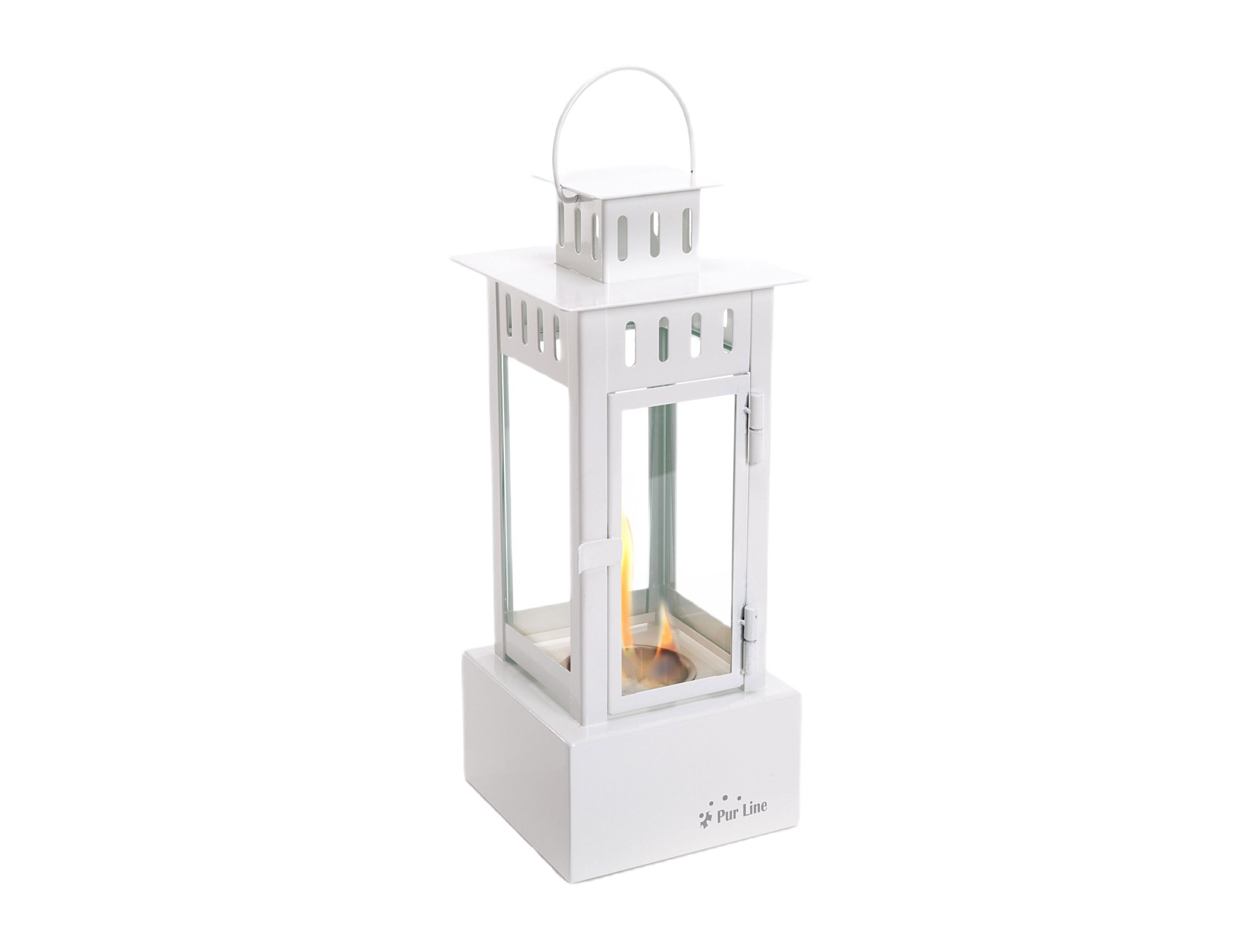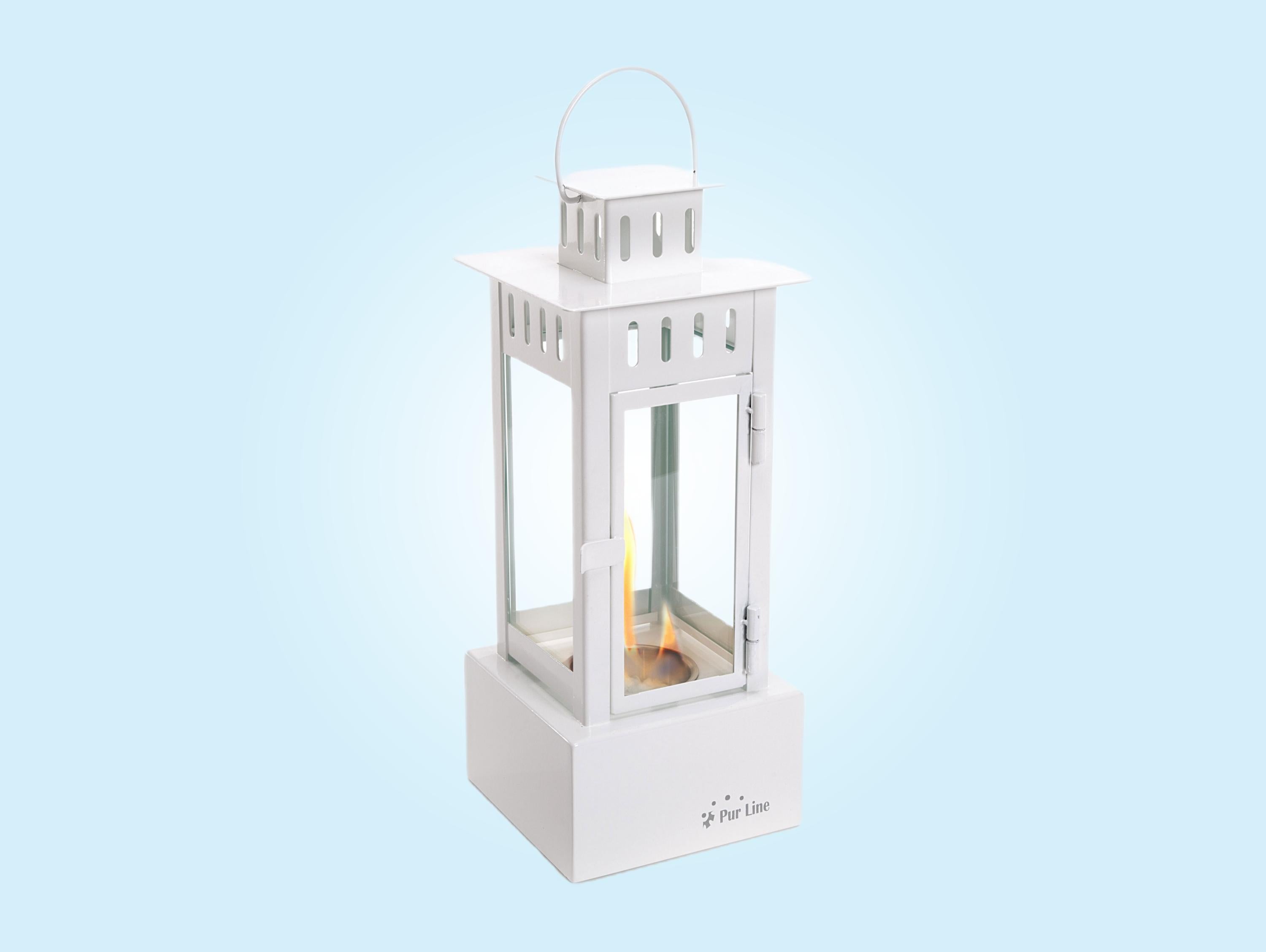 La biochimenea IRIS W está fabricada en metal, tiene un depósito de 0,5L y su diseño en forma de farolillo blanco es moderno y práctico. Sus cuatro vidrios templados contienen unas llamas que aportarán un toque diferente y creativo a tu hogar.