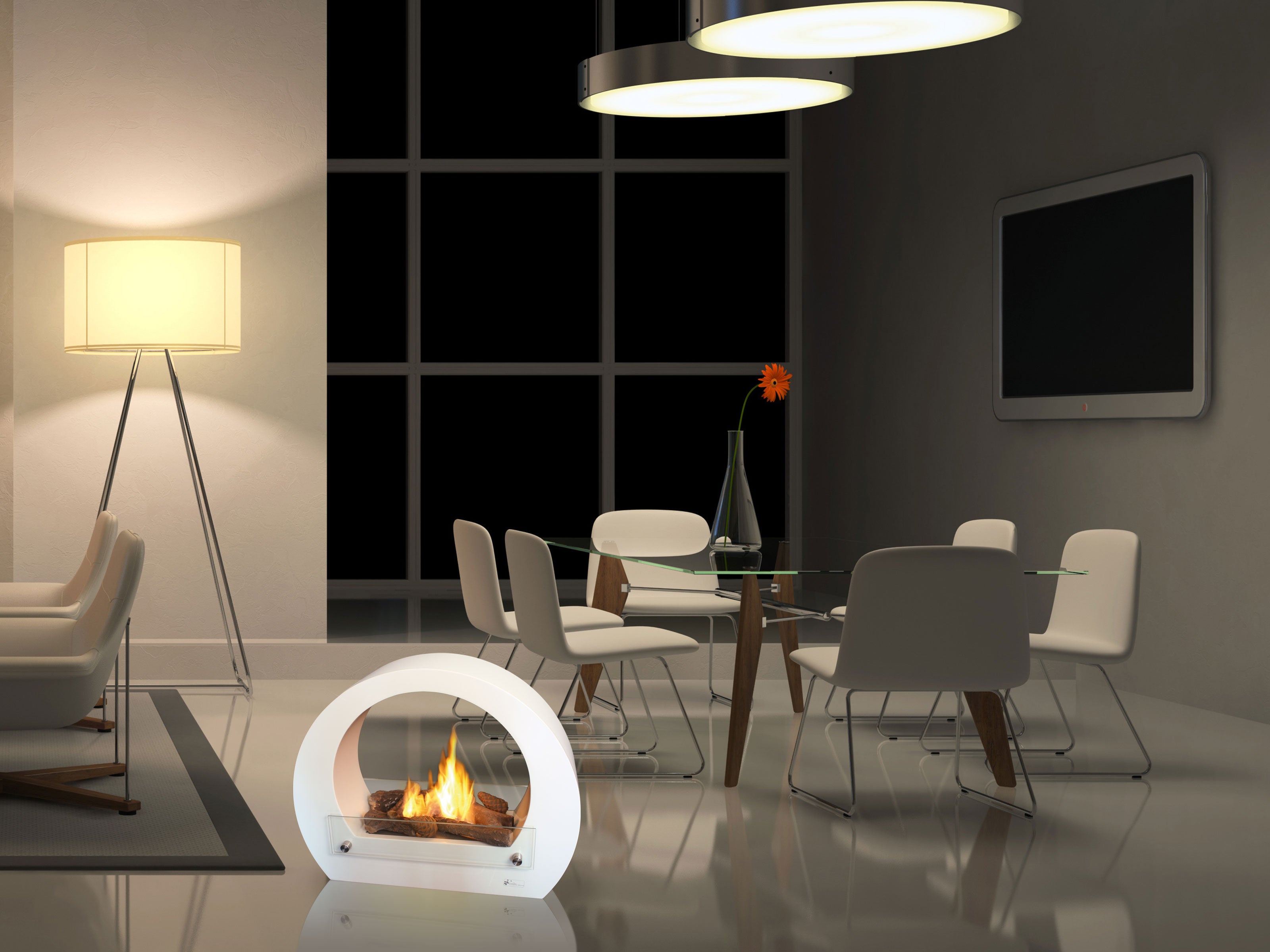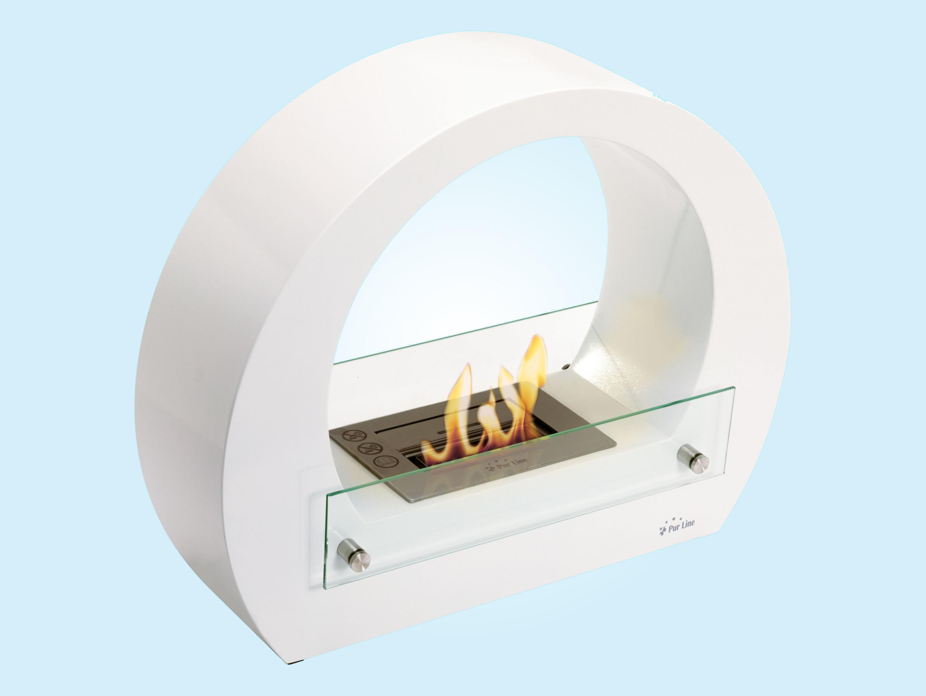 ¿Alguna vez pensaste en tener una chimenea en tu casa? Gracias a Purline ya puedes conseguirlo, solo necesitas esta biochimenea, un poco de su combustible líquido de origen natural y rápidamente tendrás un fuego con llamas y calor reales en tu salón, dormitorio o despacho, limpia, sin humos ni cenizas y de fácil mantenimiento. Además incorpora fibra cerámica para garantizar su seguridad.Su tamaño (LxPxH: 64 x 23 x 52 cm), su solidez (11.6kg) y su diseño moderno la hacen perfecta para usar en el suelo de tu terraza, jardín o salón, ayudando a crear un ambiente acogedor, cálido y genuino.El modelo SATURN es una moderna biochimenea diseñada en forma de semicírculo con acabado en acero inoxidable lacado en blanco y dos cristales de vidrio templado que enmarcan una llama que puedes regular a tu gusto. Incluye un depósito de 1.5L cuya potencia calorífica es equivalente a 2KW.