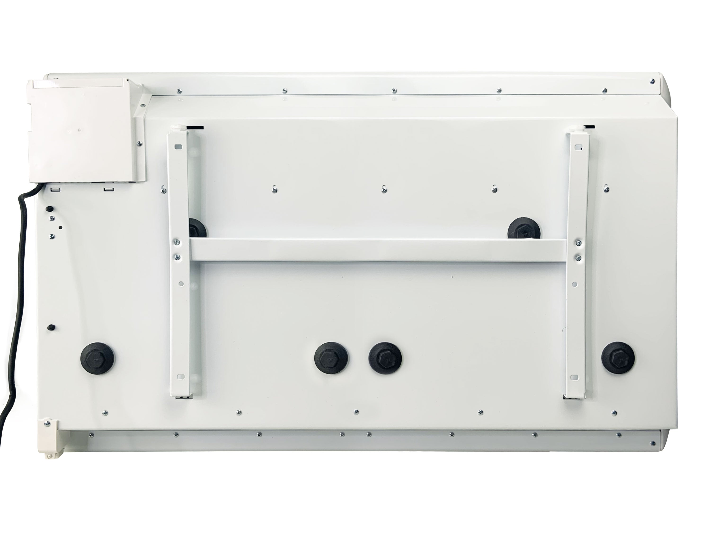 Su diseño rectangular en color blanco es elegante y compacto, e incluye todo lo necesario para su instalación mural. Su tamaño (LxPxH: 90 x 10 x 55 cm) y solidez (19.5kg) te permitirán desplazarlo según tus necesidades siendo ideal para estancias de hasta 25m2.