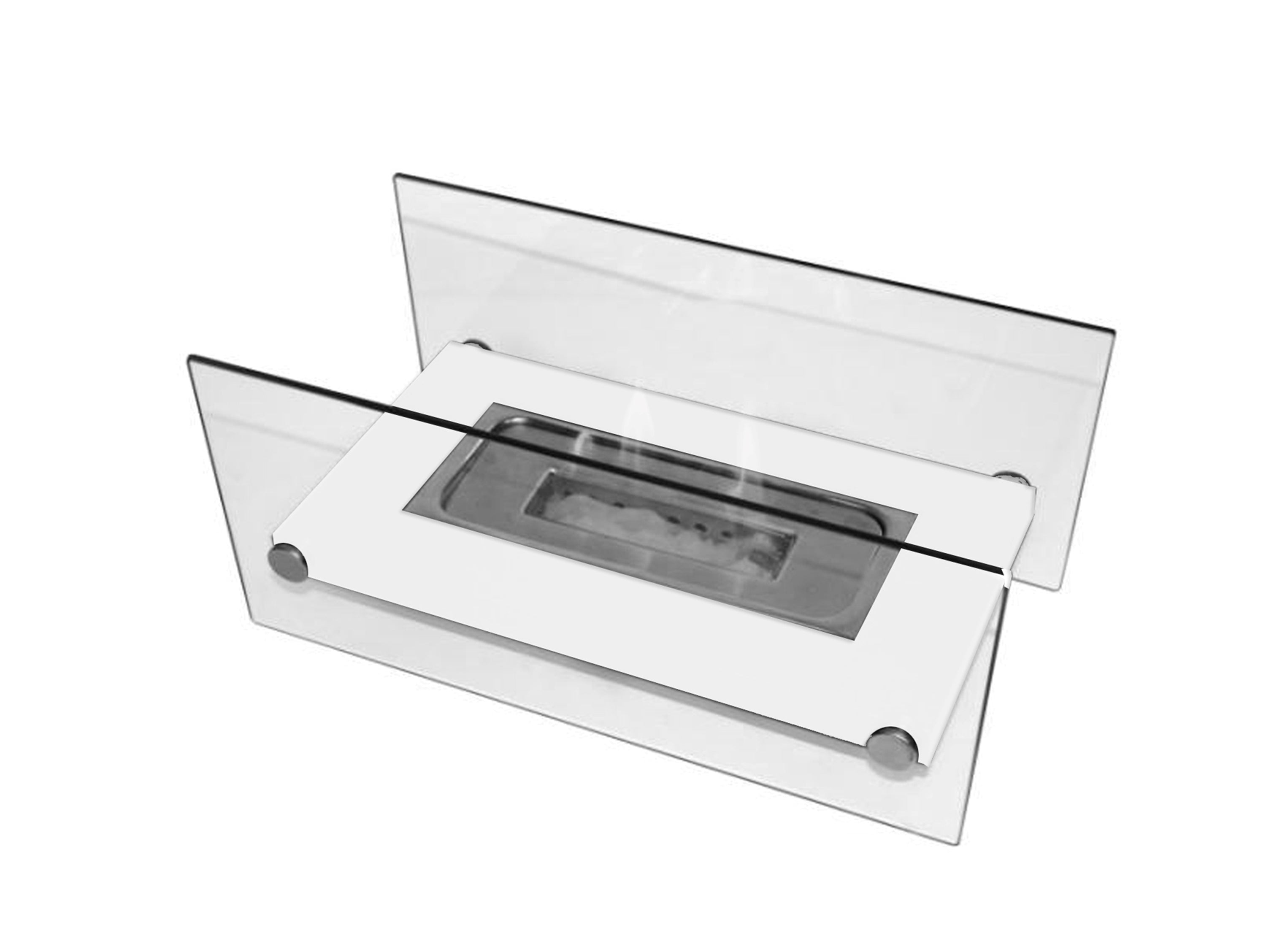 Con la biochimenea de Purline, solo necesitas este modelo de sobremesa en metal blanco, un poco de combustible líquido de origen natural y tendrás un fuego real sin humos ni cenizas.