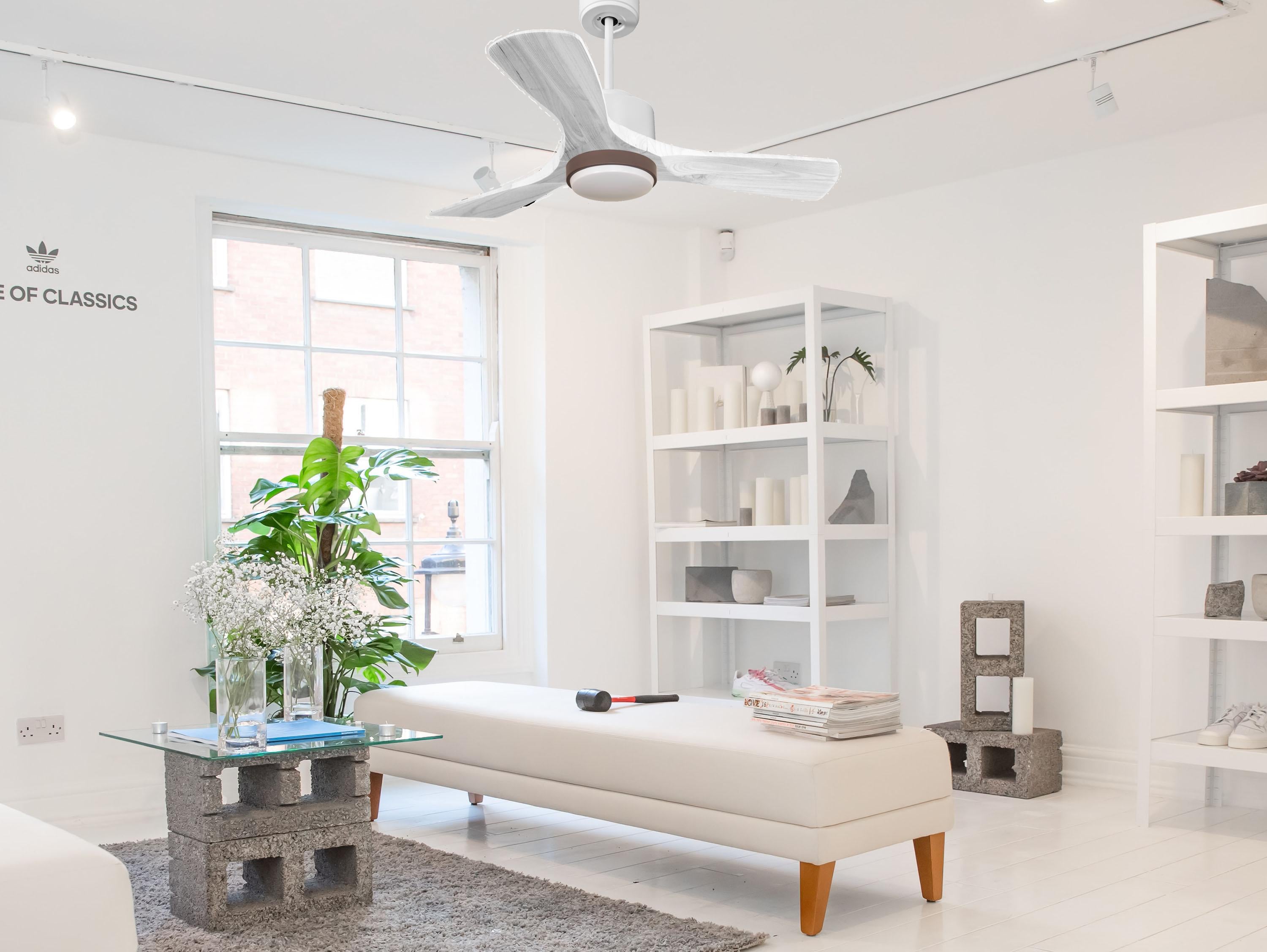 Las palas aerodinámicas de madera balsa maciza otorgan al ventilador una gran ligereza. Han sido artesanalmente tratadas para estar equilibradas y no producir ningún tipo de vibración. Este modelo de 3 aspas acabadas en madera blanca tiene un diámetro de 106 cm