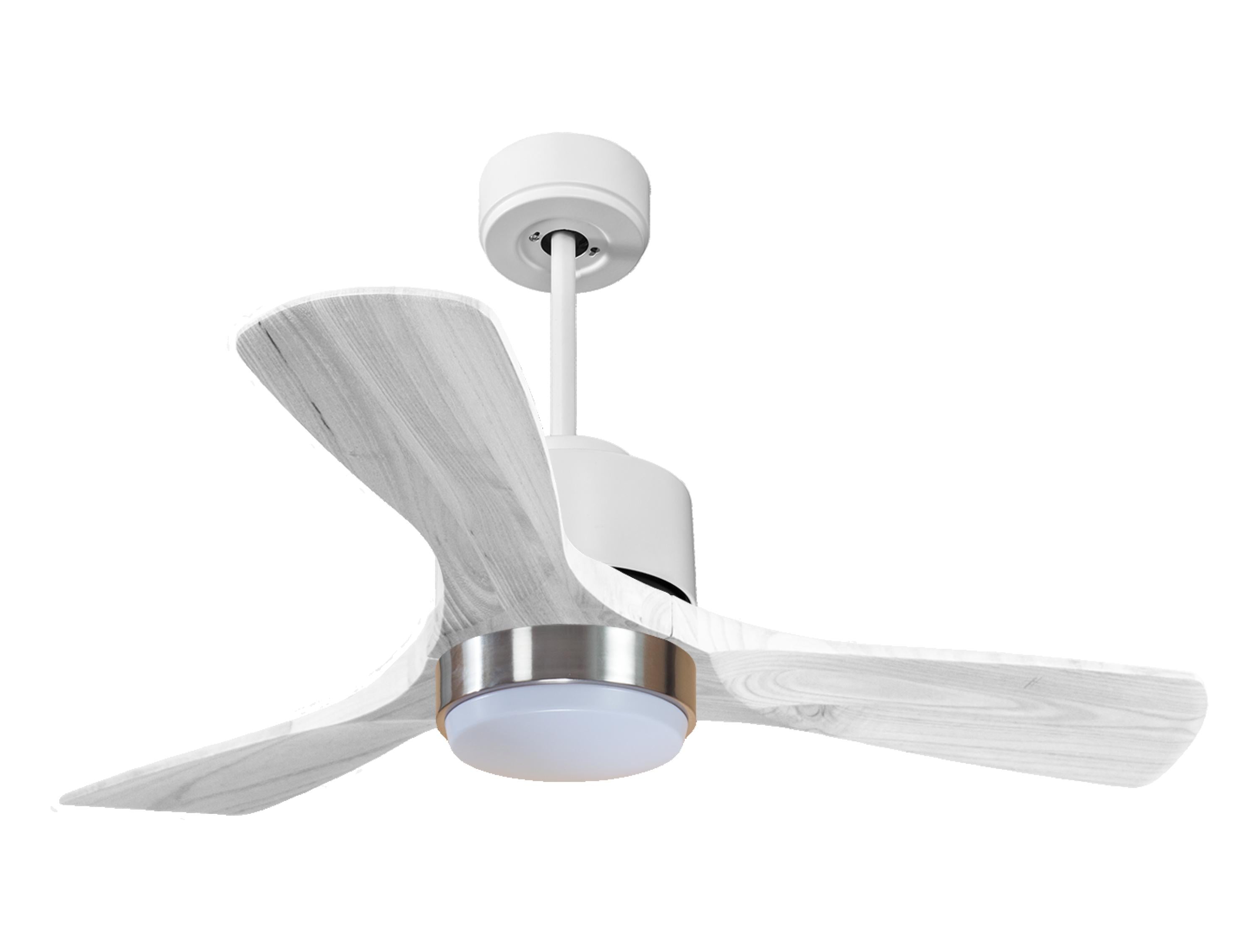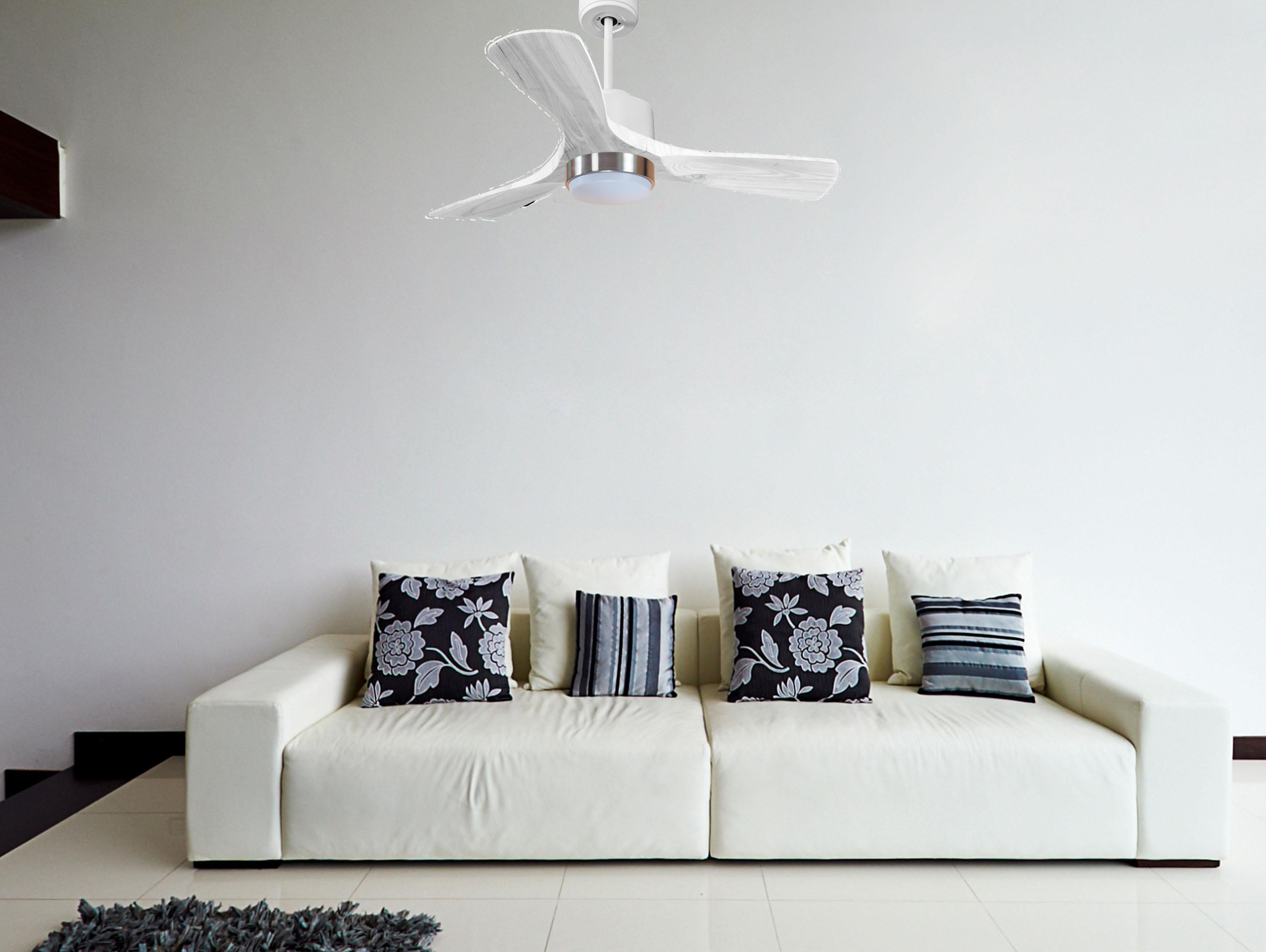 Las palas aerodinámicas de madera balsa maciza otorgan al ventilador una gran ligereza. Han sido artesanalmente tratadas para estar equilibradas y no producir ningún tipo de vibración. Este modelo de 3 aspas acabadas en madera blanca tiene un diámetro de 106 cm
