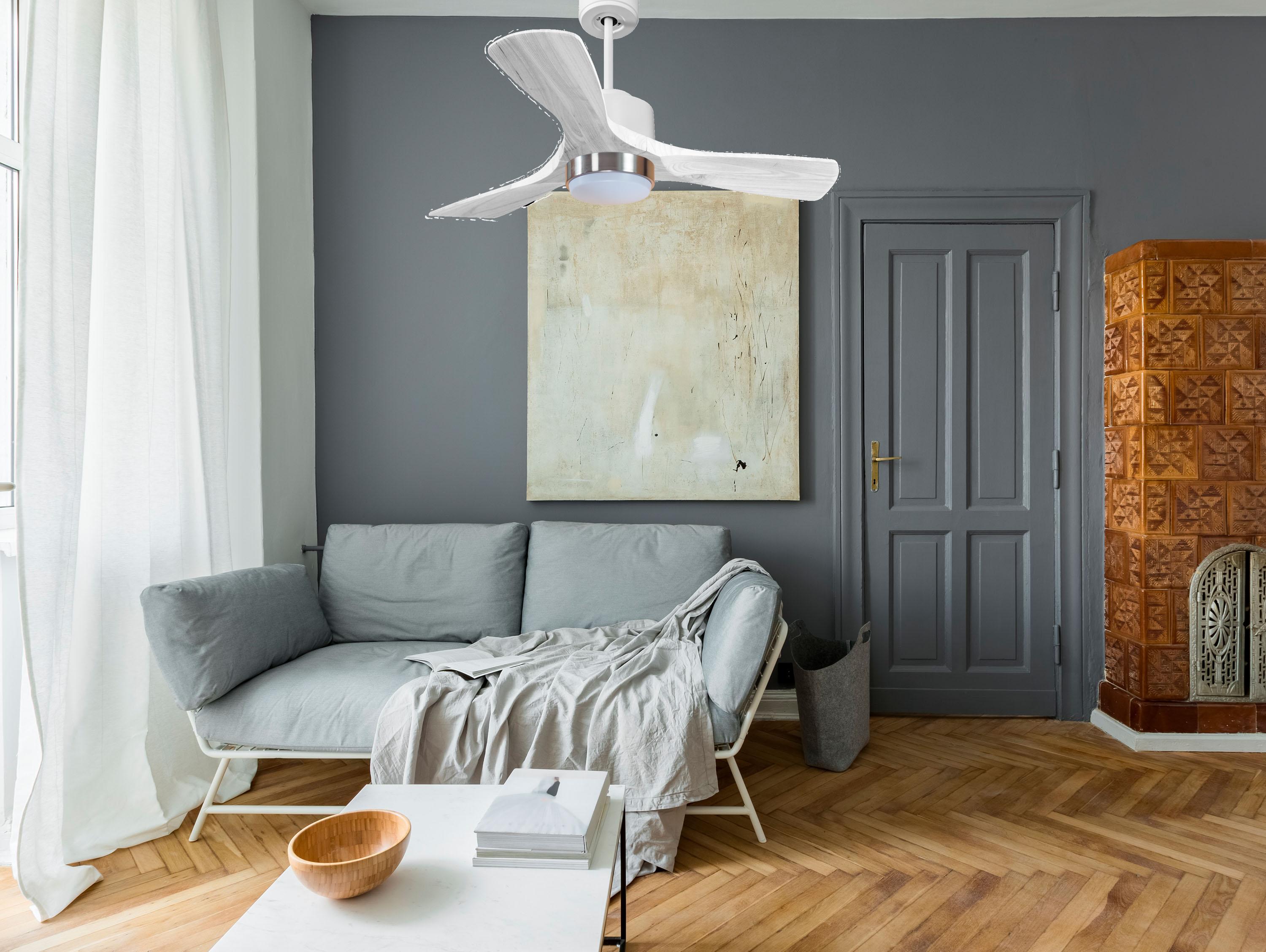Ventilador de techo Modo Invierno/Verano Termostato Dimable Wifi Motor DC Techos Inclinados Mando a Distancia Luz tres tonos Hypersilence Memoria