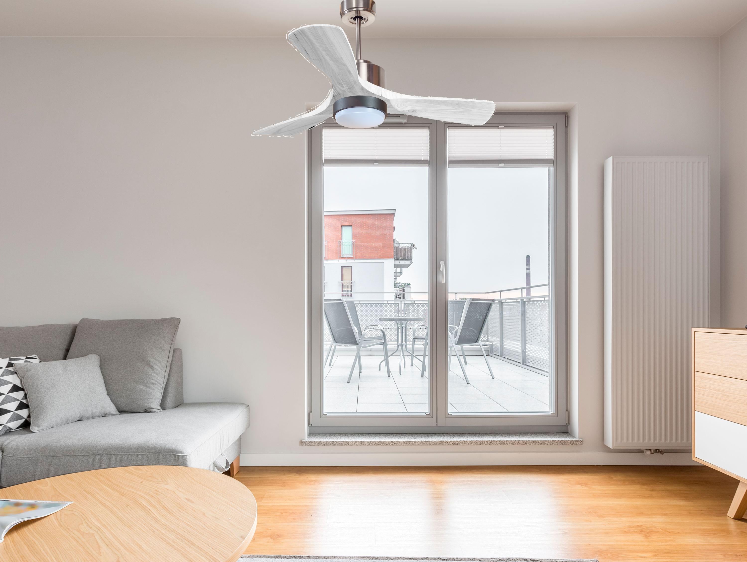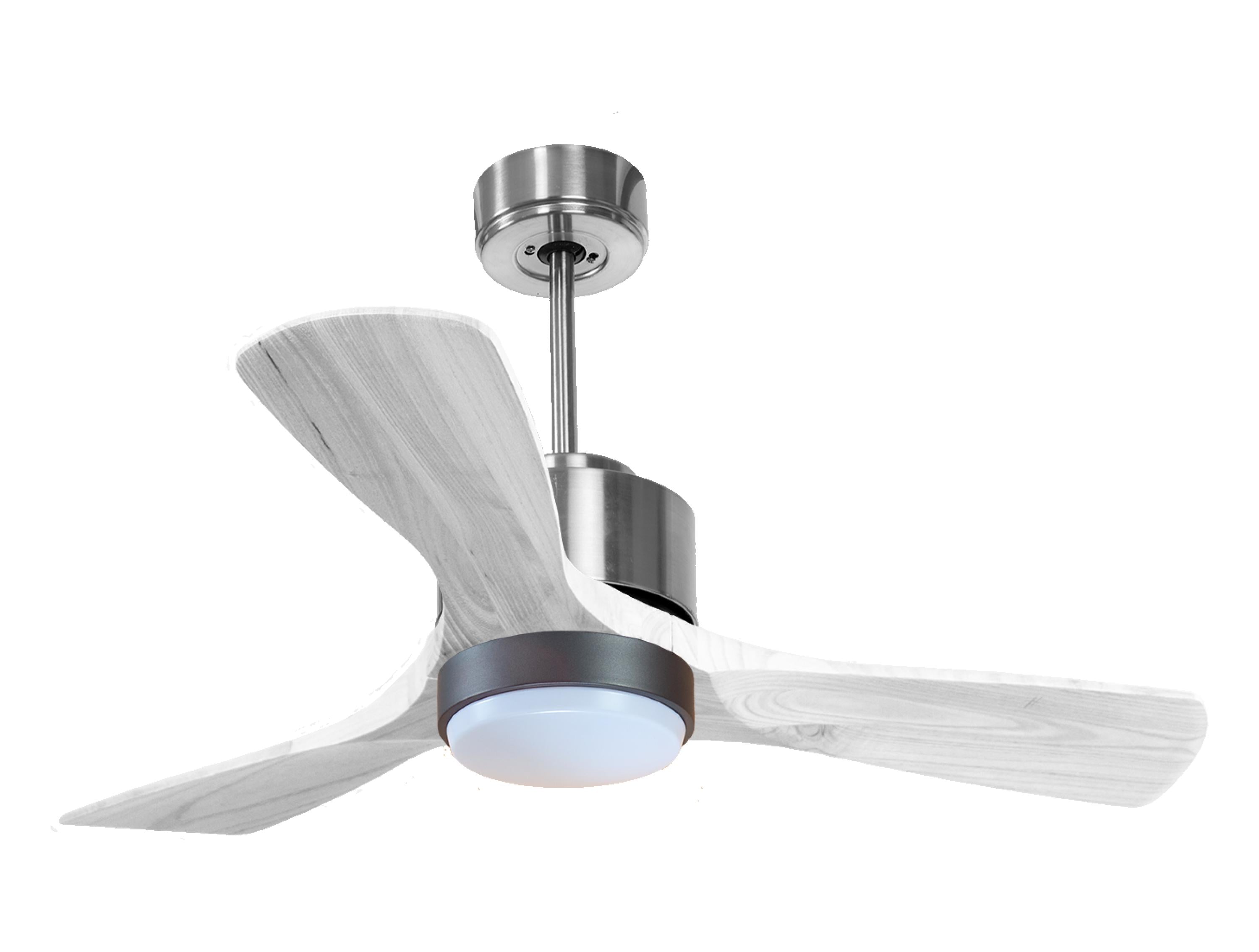 Ventilador de techo Modo Invierno/Verano Termostato Dimable Wifi Motor DC Techos Inclinados Mando a Distancia Luz tres tonos Hypersilence Memoria