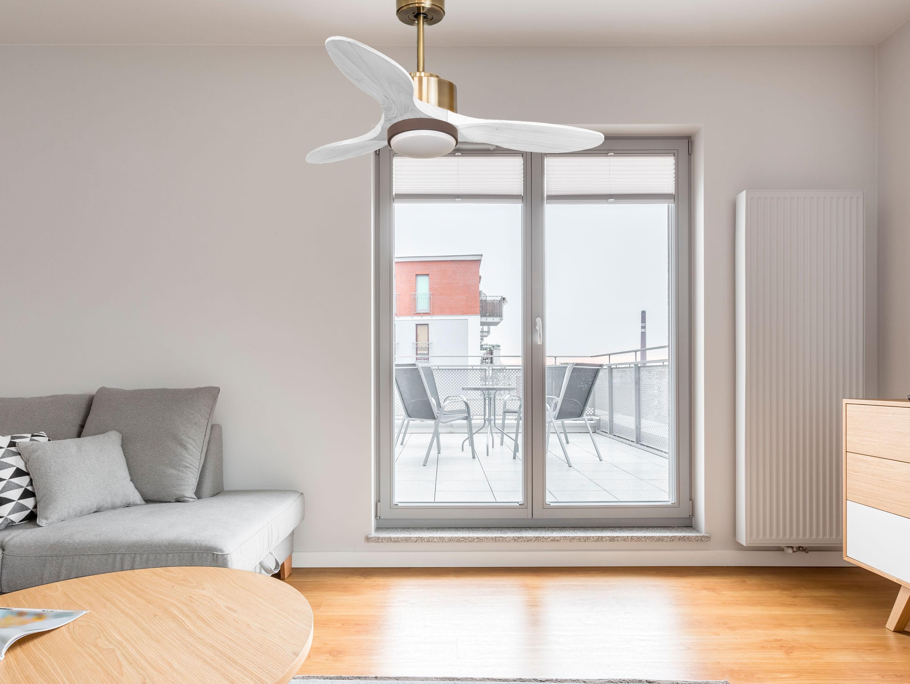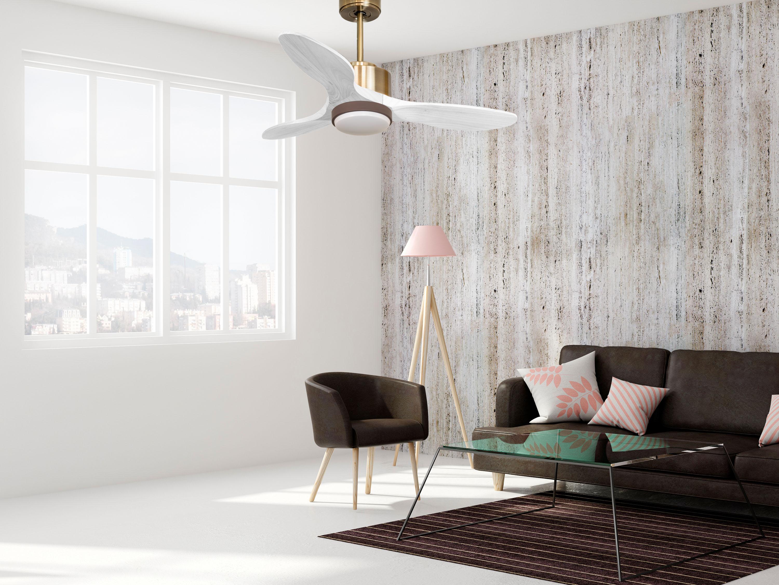 Ventilador de techo Modo Invierno/Verano Termostato Dimable Wifi Motor DC Techos Inclinados Mando a Distancia Luz tres tonos Hypersilence Memoria