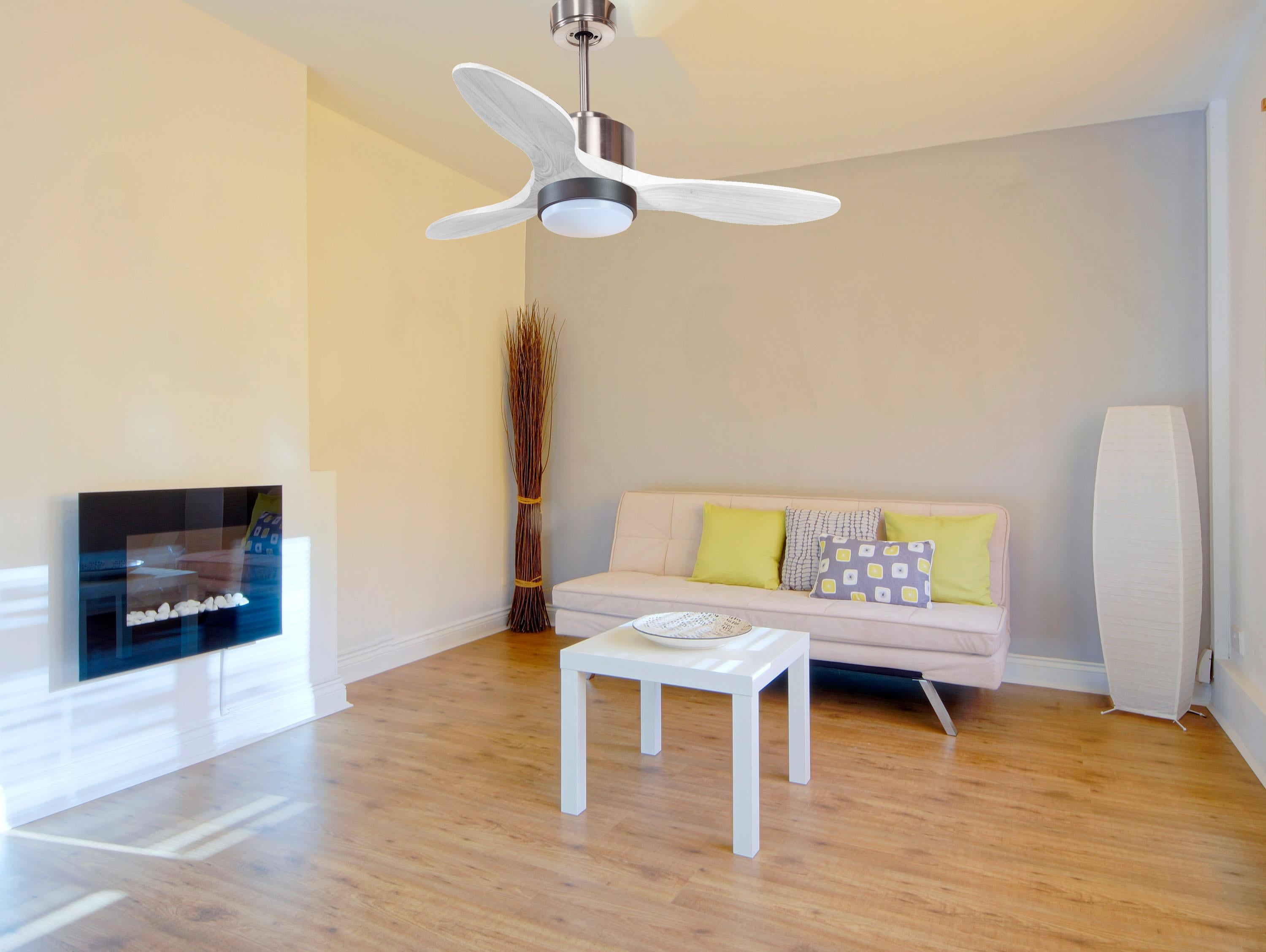 Ventilador de techo Modo Invierno/Verano Termostato Dimable Wifi Motor DC Techos Inclinados Mando a Distancia Luz tres tonos Hypersilence Memoria
