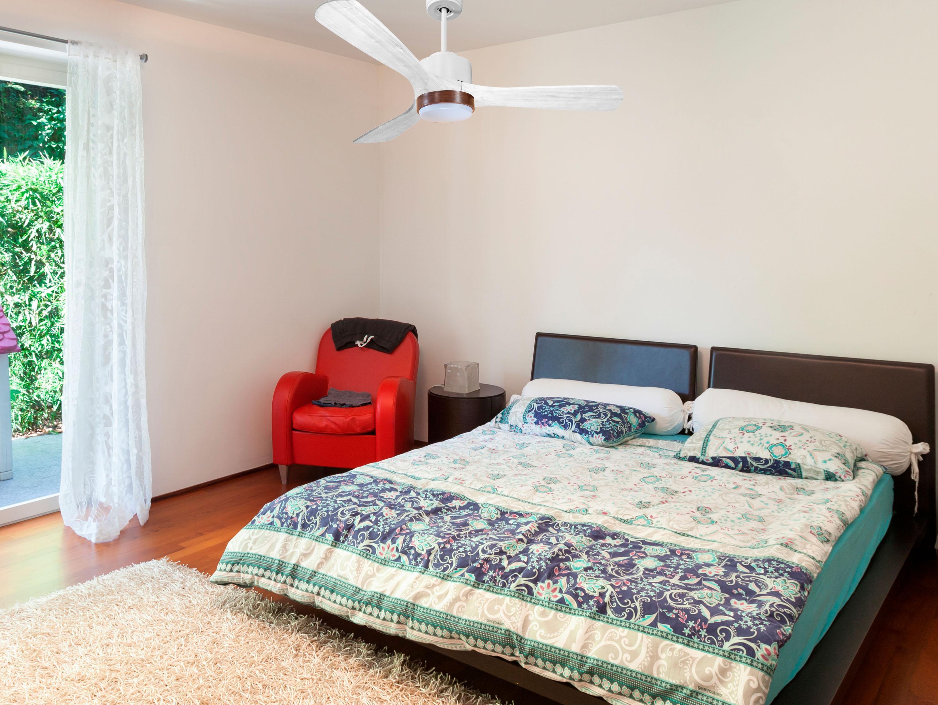 Ventilador de techo Modo Invierno/Verano Termostato Dimable Wifi Motor DC Techos Inclinados Mando a Distancia Luz tres tonos Hypersilence Memoria