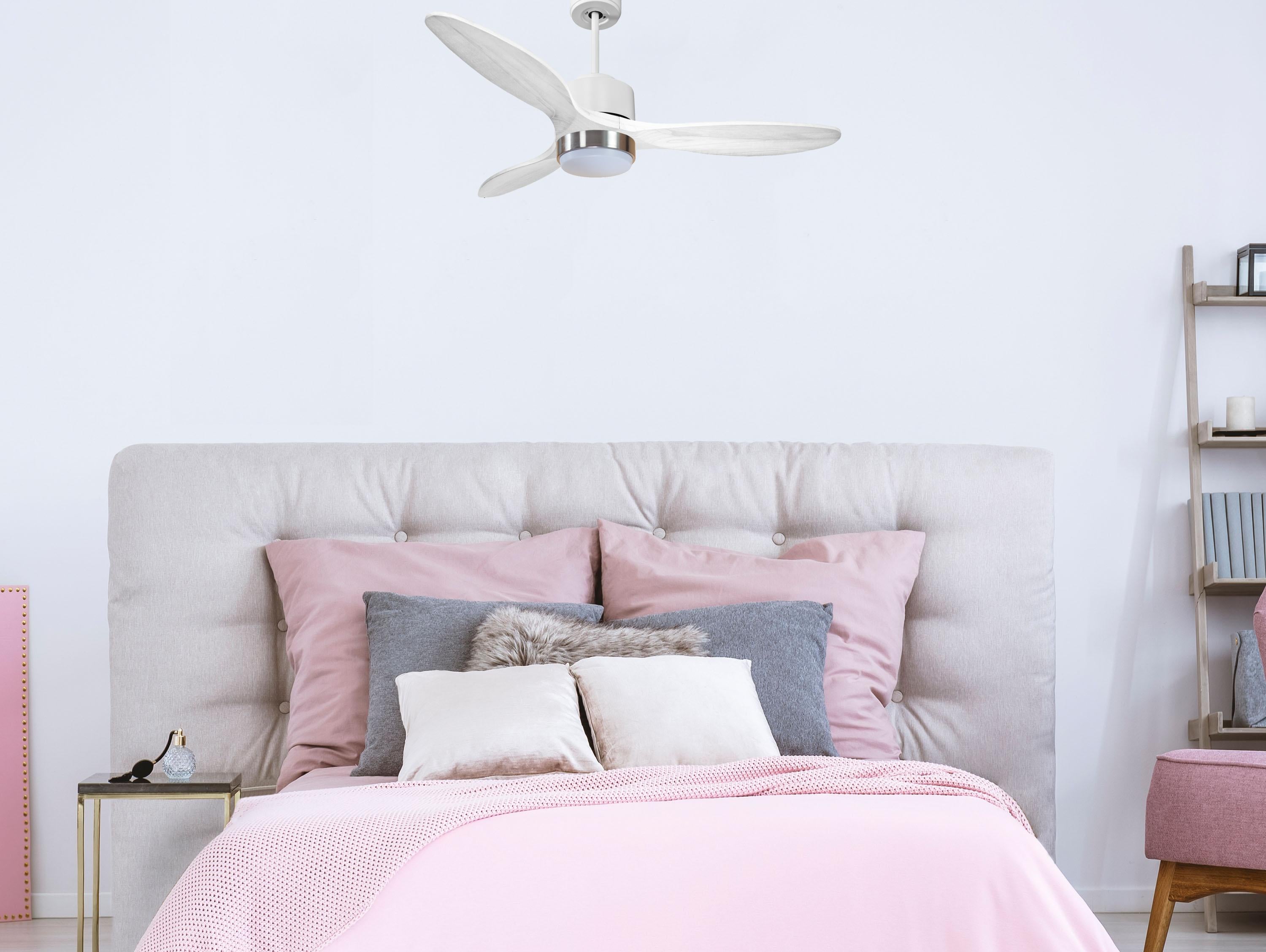 Ventilador de techo Modo Invierno/Verano Termostato Dimable Wifi Motor DC Techos Inclinados Mando a Distancia Luz tres tonos Hypersilence Memoria