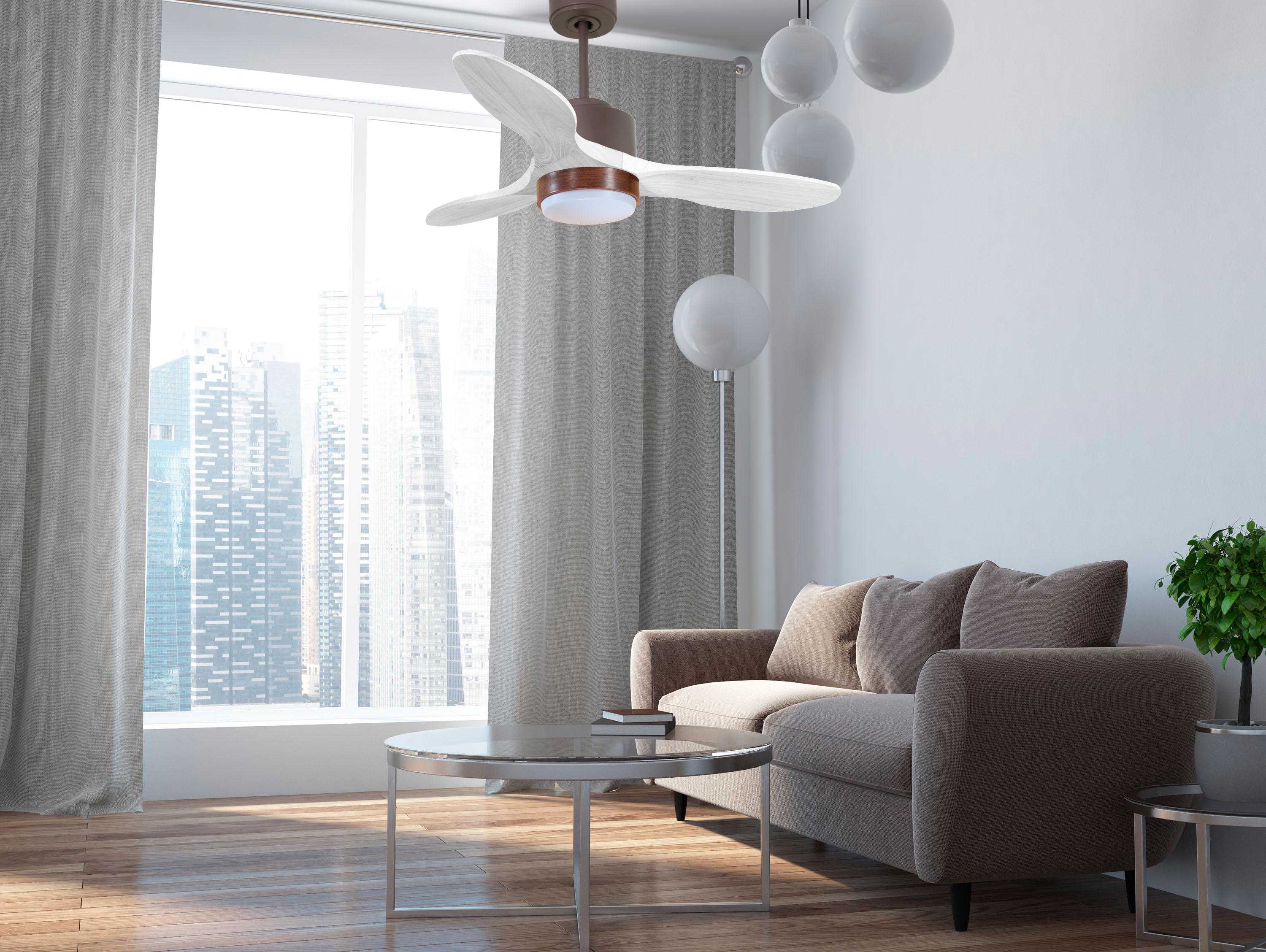 Las palas aerodinámicas de madera balsa maciza otorgan al ventilador una gran ligereza. Han sido artesanalmente tratadas para estar equilibradas y no producir ningún tipo de vibración. Este modelo de 3 aspas acabadas en madera blanca tiene un diámetro de 106 cm