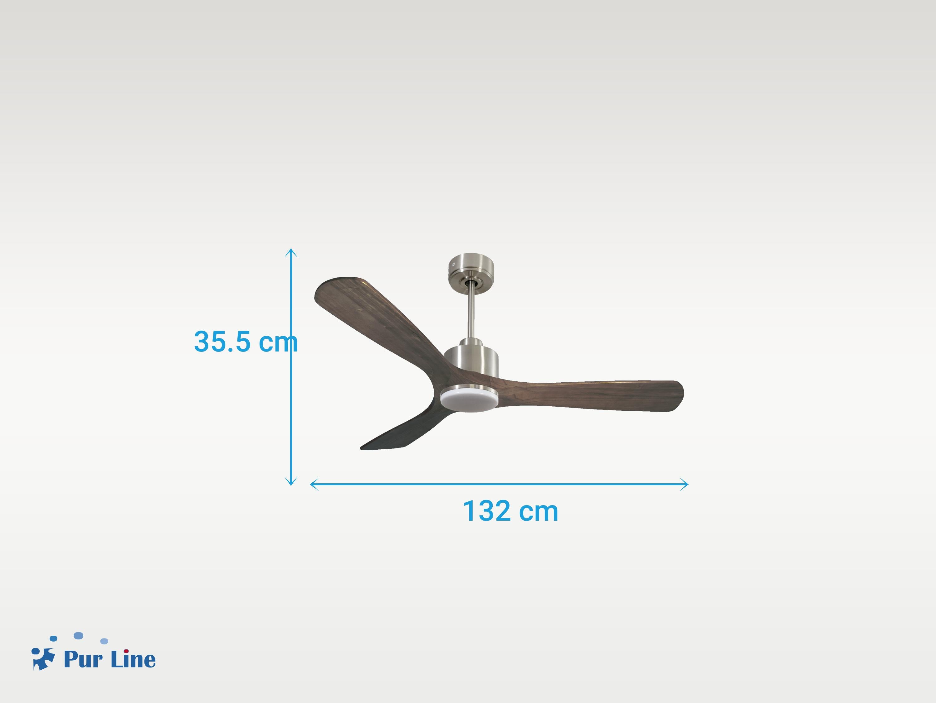 Las palas aerodinámicas de madera balsa maciza otorgan al ventilador una gran ligereza. Han sido artesanalmente tratadas para estar equilibradas y no producir ningún tipo de vibración. Este modelo de 3 aspas acabadas en madera oscura tiene un diámetro de 132 cm