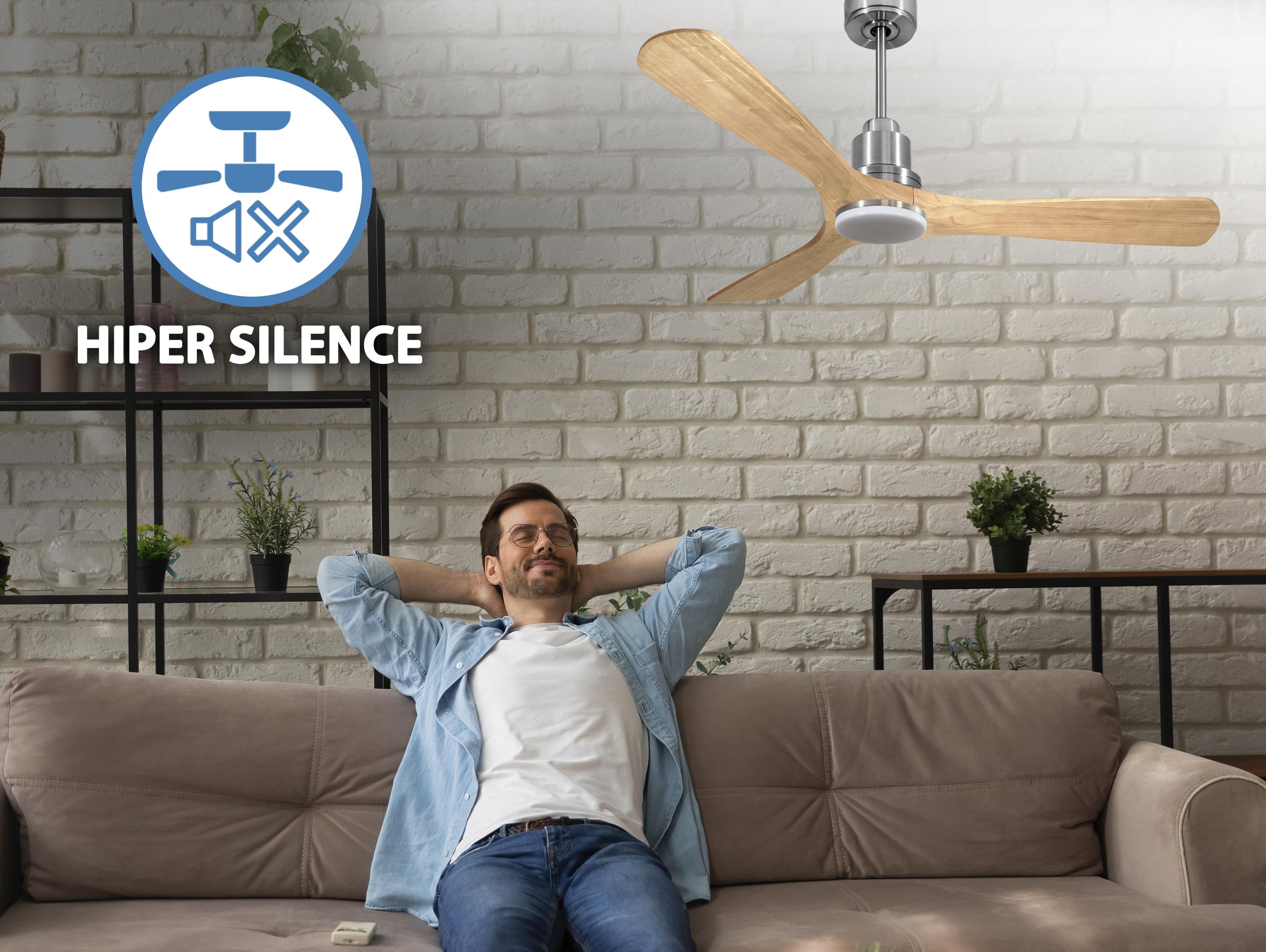 Ventilador de techo Modo Invierno/Verano Termostato Dimable Wifi Motor DC Techos Inclinados Mando a Distancia Luz tres tonos Hypersilence Memoria