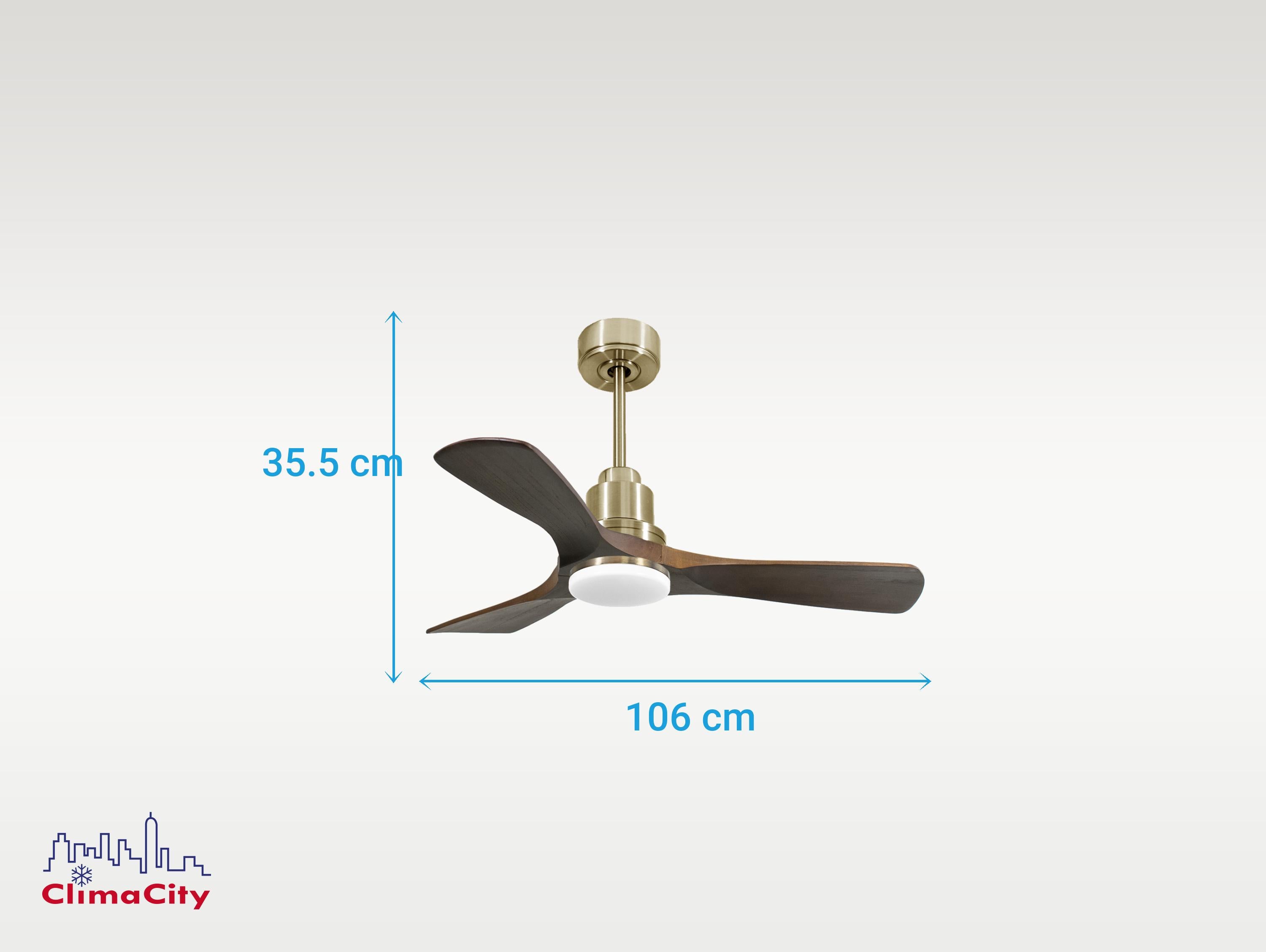 El motor de corriente continua (DC) Klassfan by Purline, es un motor de alta calidad con unas prestaciones de alto nivel. Permite instalaciones en techos de hasta 15º de inclinación y se sirve con dos tijas para que se instale a la altura adecuada (13.5 cm y 25 cm). Permite 2 o 3 aspas (dependiendo del modelo de aspa), pues dispone de una función de auto equilibrado. Todos los motores permite incluir un kit de luz.Es un motor con función Verano/Invierno (Desestratificador de aire), de forma que en invierno podrás invertir el movimiento del motor, para que su giro desplace el aire caliente hacia abajo, actuando como complemento de tu sistema de calefacción y favoreciendo un consumo optimizado con un importante ahorro energético. Además incluye un termostato en su base superior, que te permite programar el ventilador para funcione según la temperatura ambiente.Una ventaja muy destacada, es su sistema FullFlow patentado, que permite calibrar el consumo y la potencia del motor, a las necesidades de las palas elegidas, logrando unos resultados espectaculares en rendimiento energético. Nuestro sistema Fullflow permite una verdadera versatibilidad.Ademas cuenta con multitud de ventajas adicionales como 6 velocidades programables (fullflow), temporizador (8h) y posibilidad de control remoto mediante mando a distancia, mando de pared y conexión WiFi con la aplicación Tuya Smart, para poder utilizar el ventilador desde cualquier dispositivo móvil. Cuenta también con sistema certificado Hypersilence, una tecnología súper silenciosa a velocidad 3 y que permite utilizar el ventilador por las noches o en momentos de descansos, ofreciendo un rendimiento muy silencioso y con un consumo muy reducido, pudiendo llegar de 3 a 5 W, con aspas de 106 cm.También dispone de una función de memoria que guarda la configuración utilizada, tanto de velocidad como de luz, si así está equipado, de forma que cuando se apaga el ventilador se guarda y cuando se vuelve a encender arranca con la misma configuración. Las palas aerodinámicas de madera balsa maciza otorgan al ventilador una gran ligereza. Han sido artesanalmente tratadas para estar equilibradas y no producir ningún tipo de vibración. Este modelo de 3 aspas acabadas en madera oscura tiene un diámetro de 106 cm El kit de luz optimizará todas las posibilidades de tu ventilador, y su instalación es super sencilla... no más de 1 minuto.