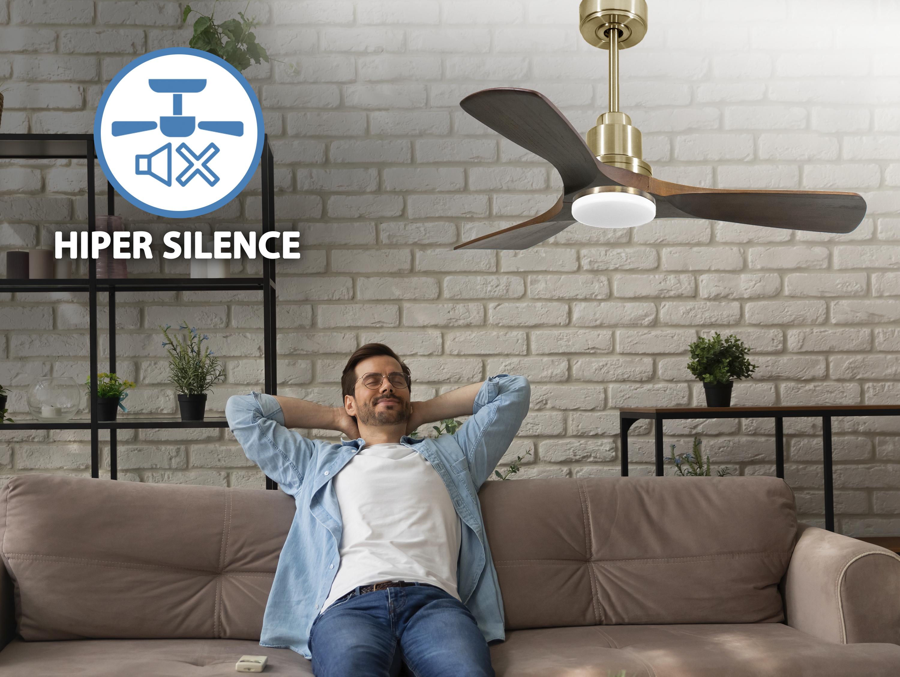 Ademas cuenta con multitud de ventajas adicionales como 6 velocidades programables (fullflow), temporizador (8h) y posibilidad de control remoto mediante mando a distancia, mando de pared y conexión WiFi con la aplicación Tuya Smart, para poder utilizar el ventilador desde cualquier dispositivo móvil. Cuenta también con sistema certificado Hypersilence, una tecnología súper silenciosa a velocidad 3 y que permite utilizar el ventilador por las noches o en momentos de descansos, ofreciendo un rendimiento muy silencioso y con un consumo muy reducido, pudiendo llegar de 3 a 5 W, con aspas de 106 cm.