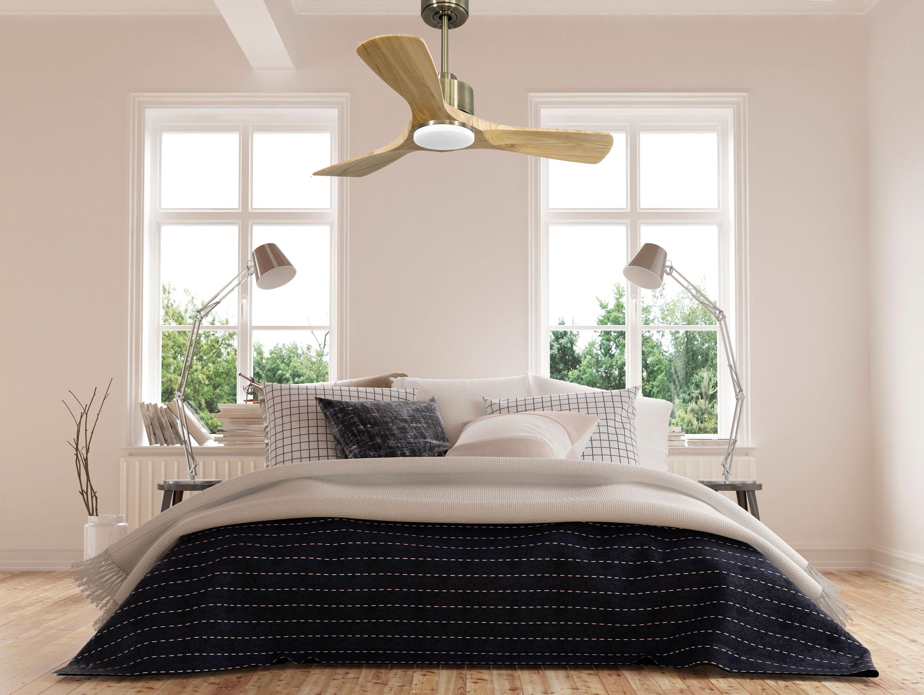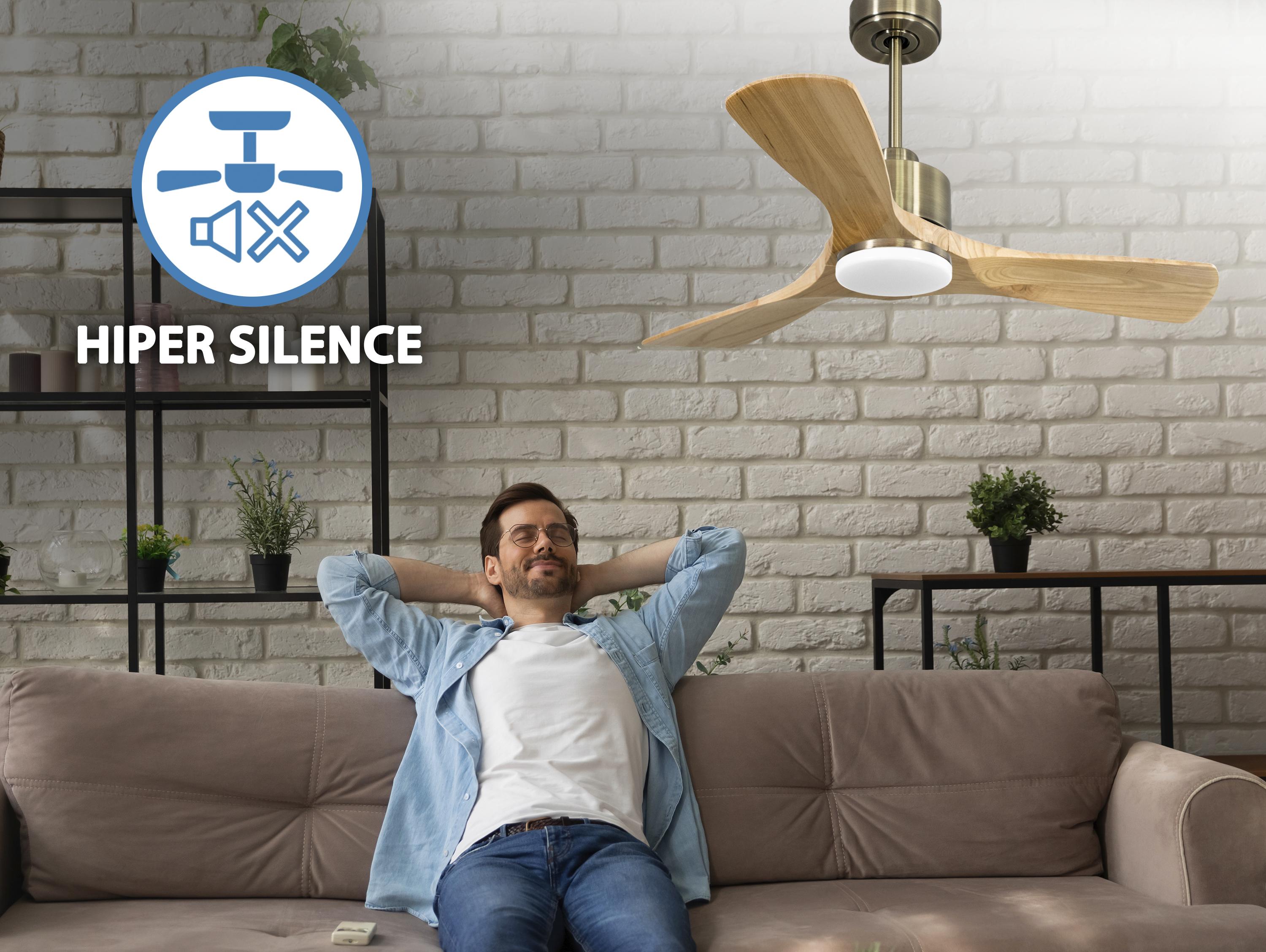 Ventilador de techo Reversible Termostato Dimable Wifi Motor DC Techos Inclinados Mando a Distancia Luz tres tonos Hypersilence Memoria