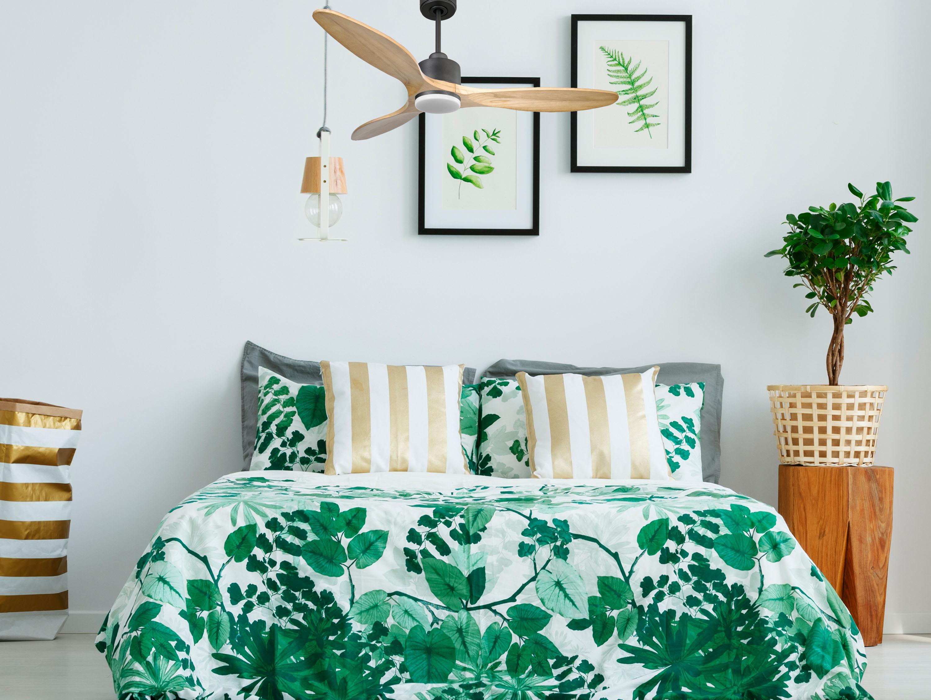 Ventilador de techo Reversible Termostato Dimable Wifi Motor DC Techos Inclinados Mando a Distancia Luz tres tonos Hypersilence Memoria