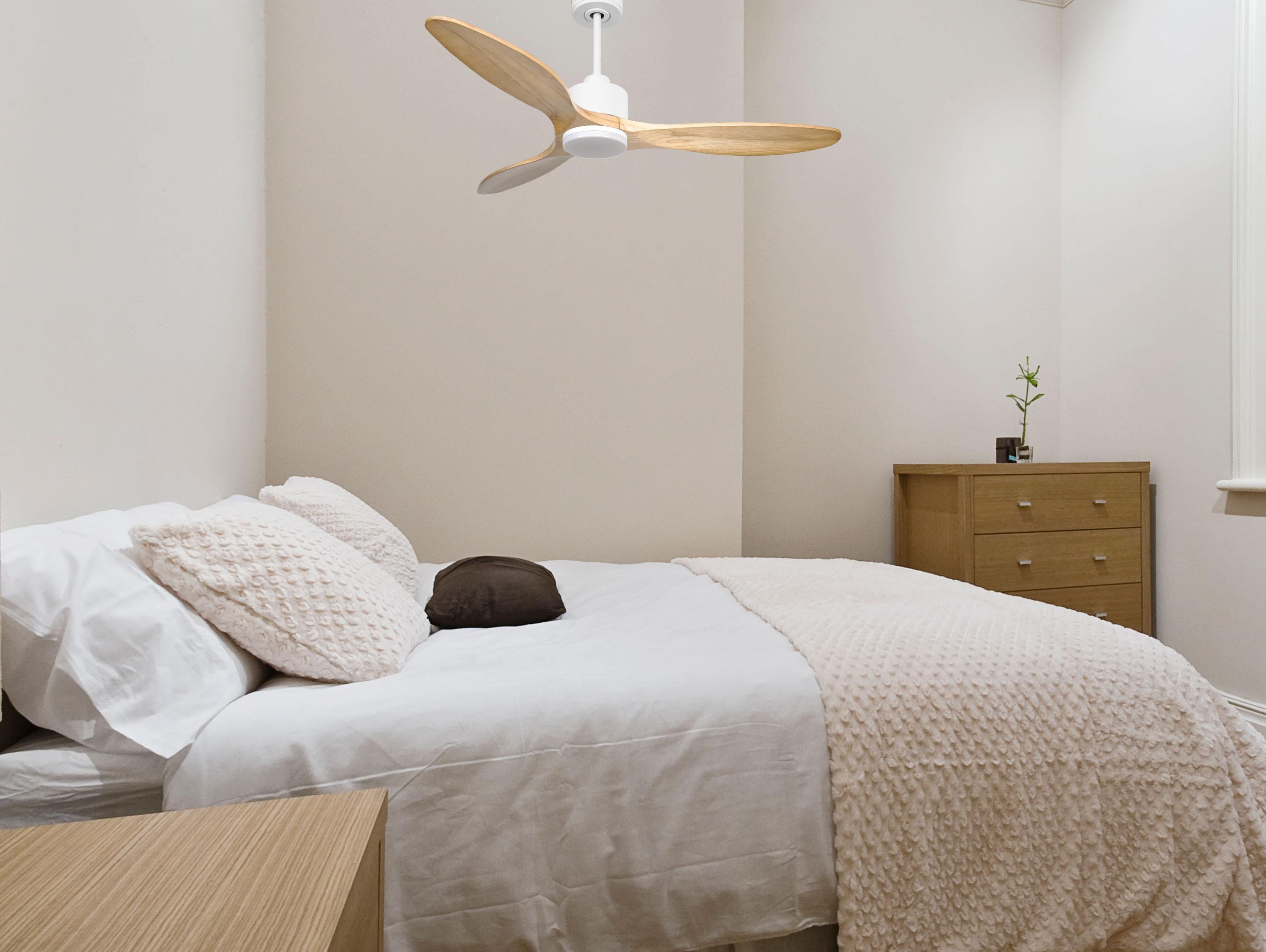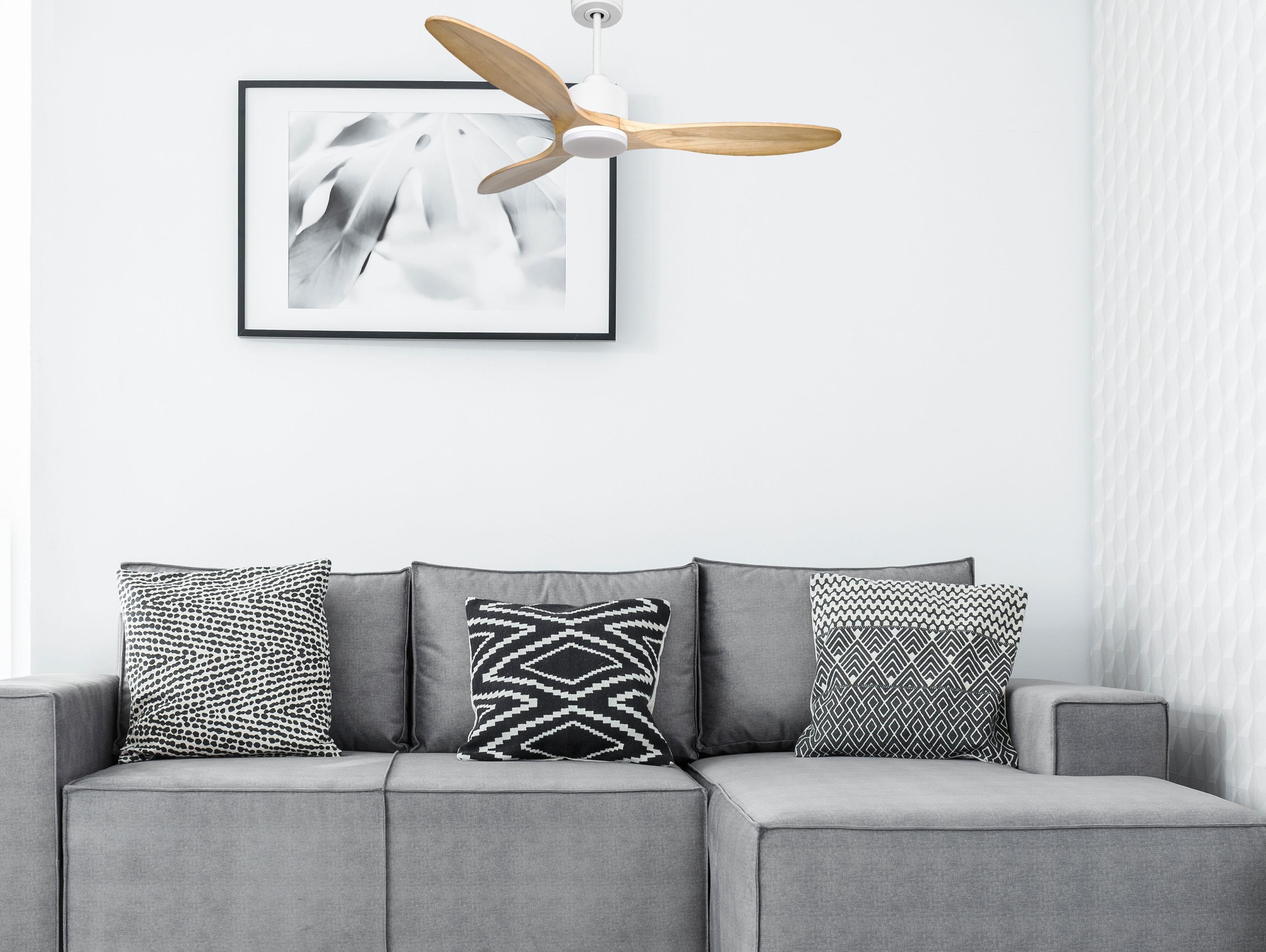 Ventilador de techo Reversible Termostato Dimable Wifi Motor DC Techos Inclinados Mando a Distancia Luz tres tonos Hypersilence Memoria
