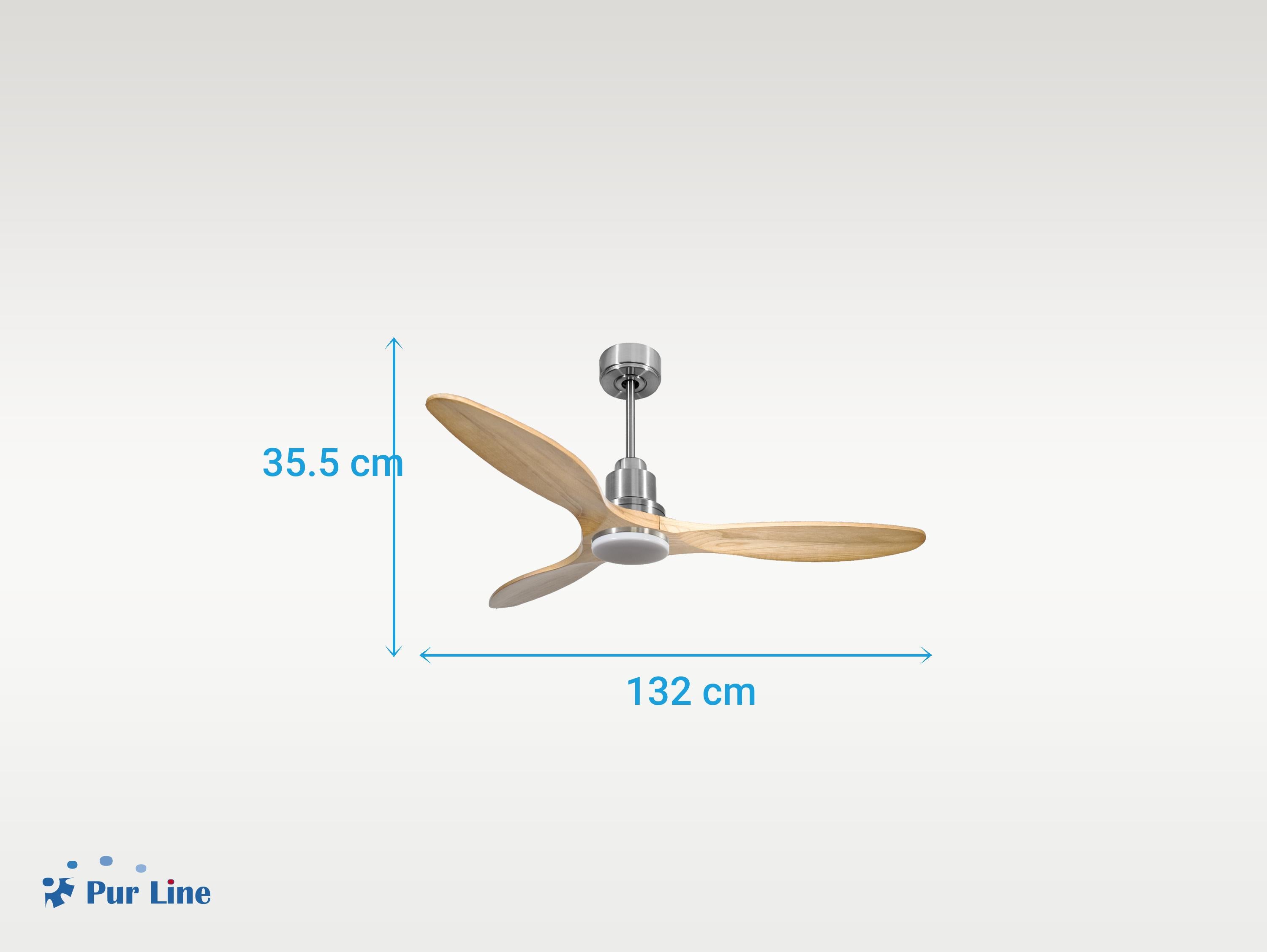 Las palas aerodinámicas de madera balsa maciza otorgan al ventilador una gran ligereza. Han sido artesanalmente tratadas para estar equilibradas y no producir ningún tipo de vibración. Este modelo de 3 aspas acabadas en madera clara tiene un diámetro de 132cm