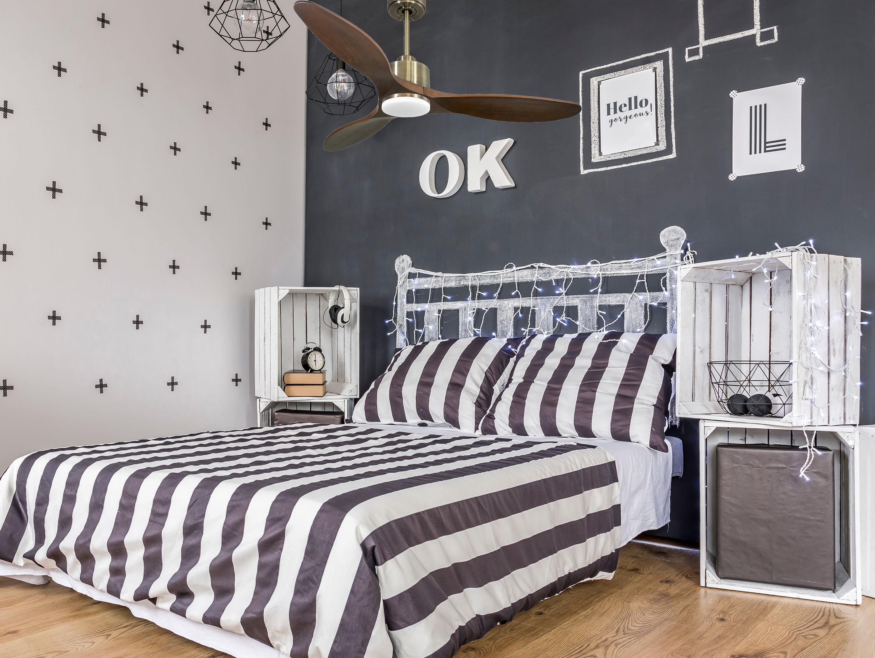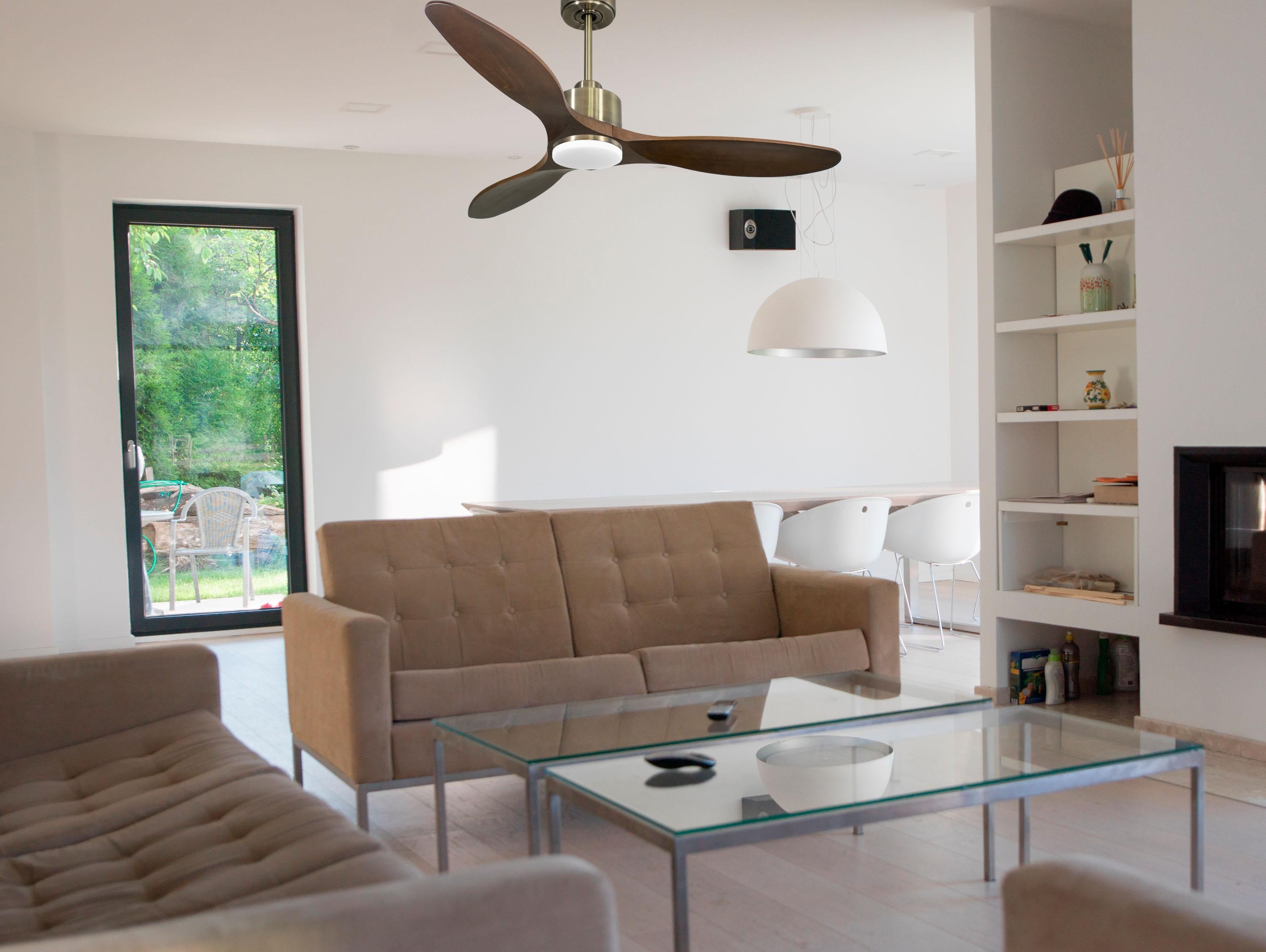 Ventilador de techo Reversible Termostato Dimable Wifi Motor DC Techos Inclinados Mando a Distancia Luz tres tonos Hypersilence Memoria