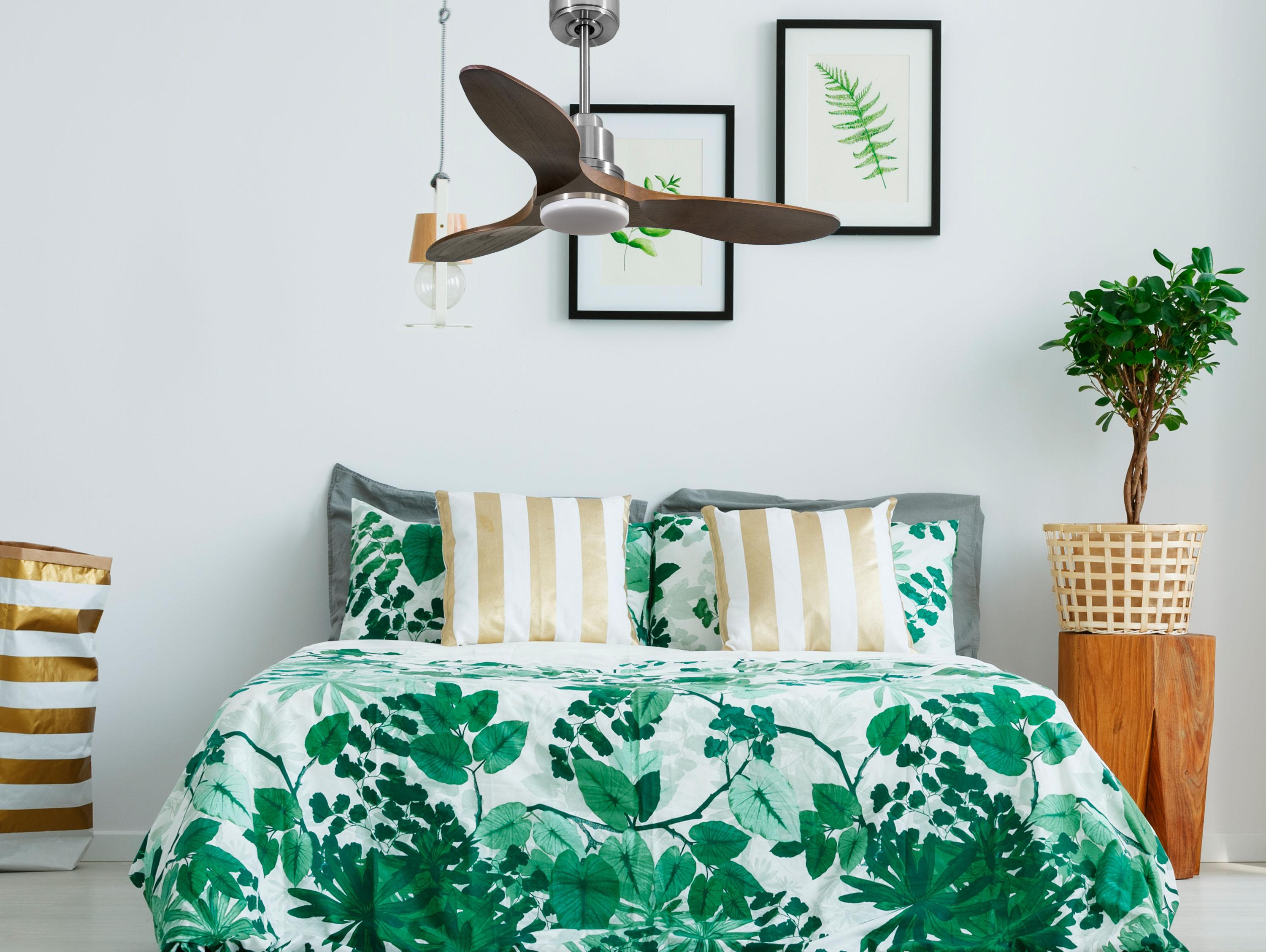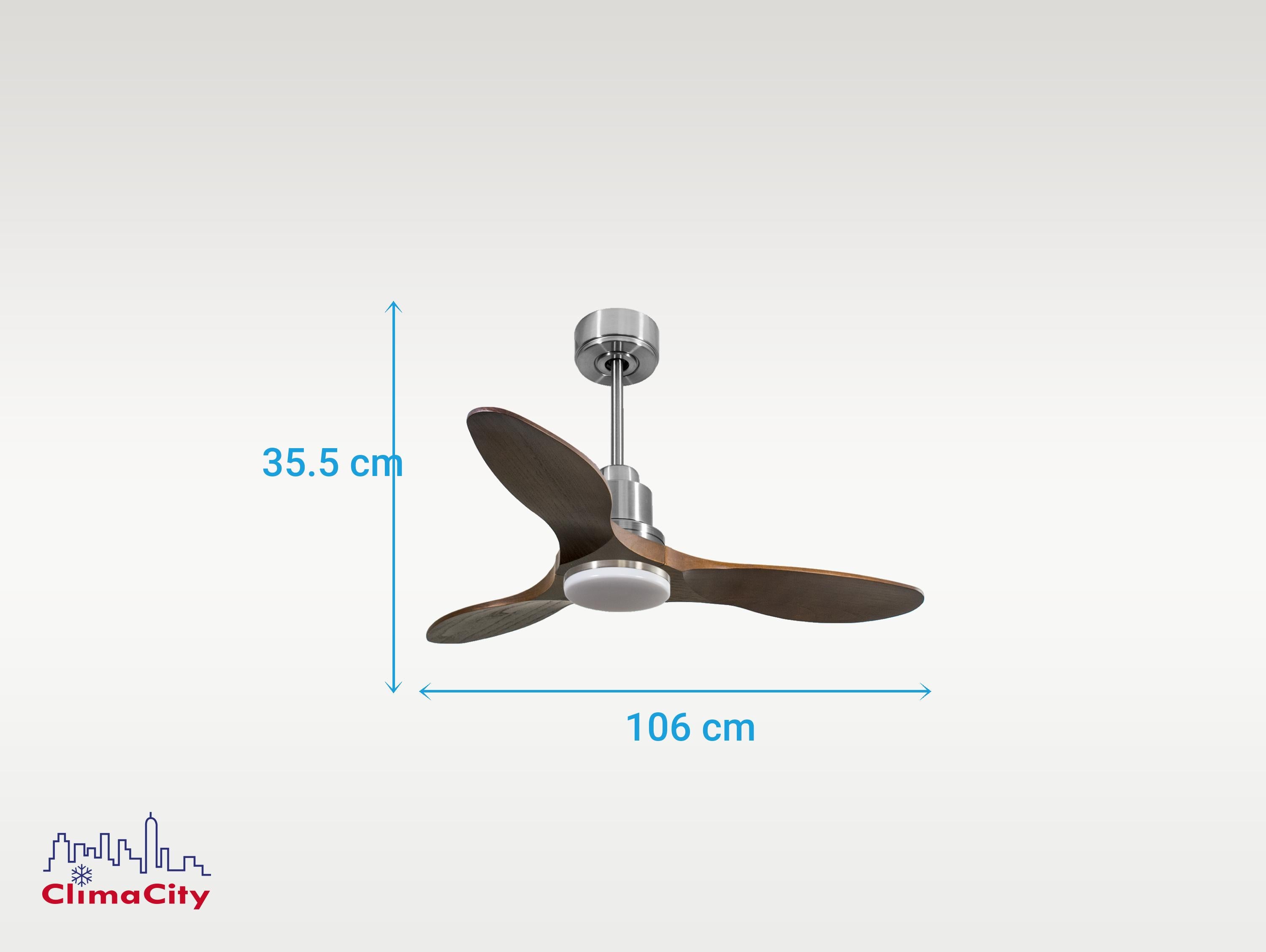 Ventilador de techo Modo Invierno/Verano Termostato Dimable Wifi Motor DC Techos Inclinados Mando a Distancia Luz tres tonos Hypersilence Memoria