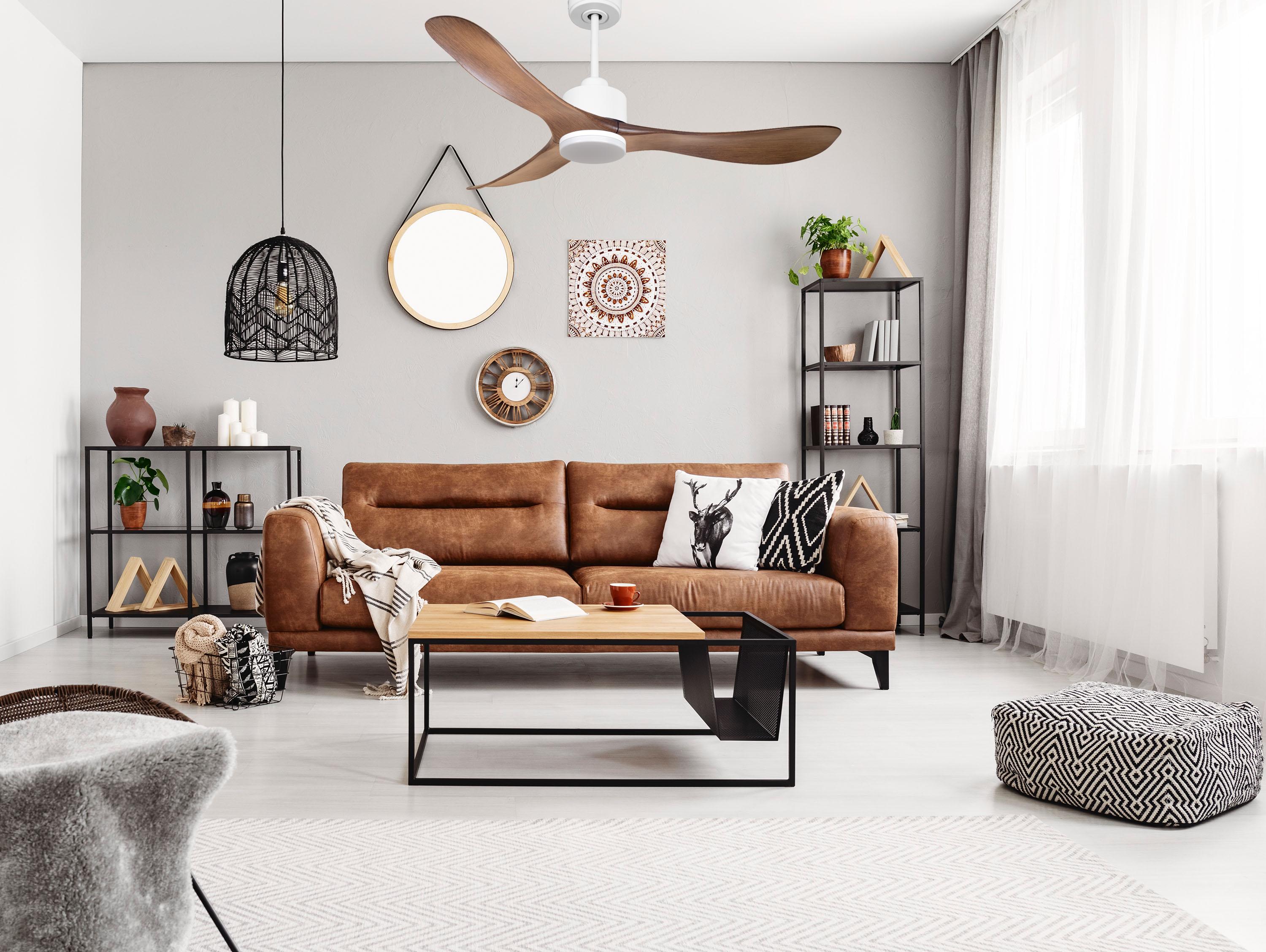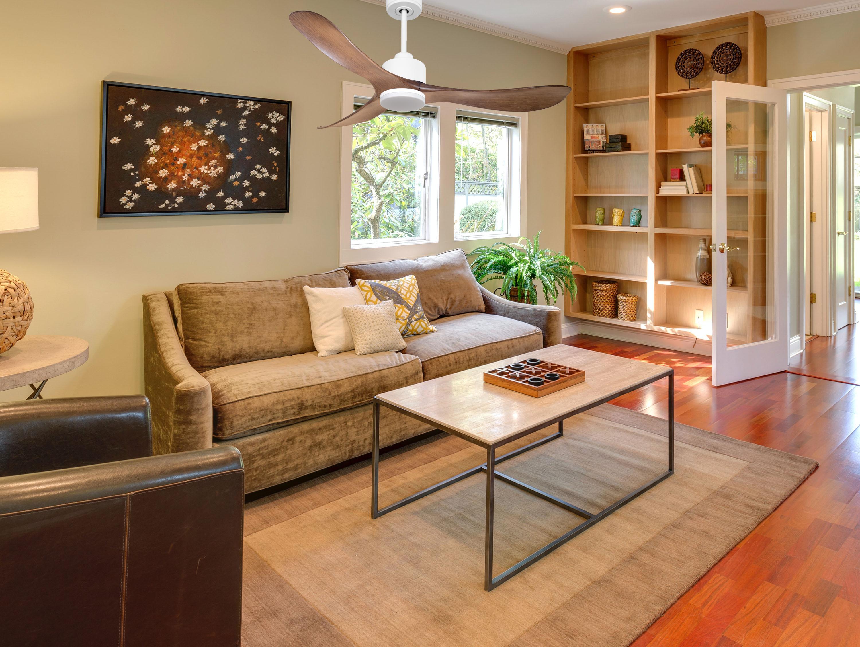 Ventilador de techo Reversible Termostato Dimable Wifi Motor DC Techos Inclinados Mando a Distancia Luz tres tonos Hypersilence Memoria