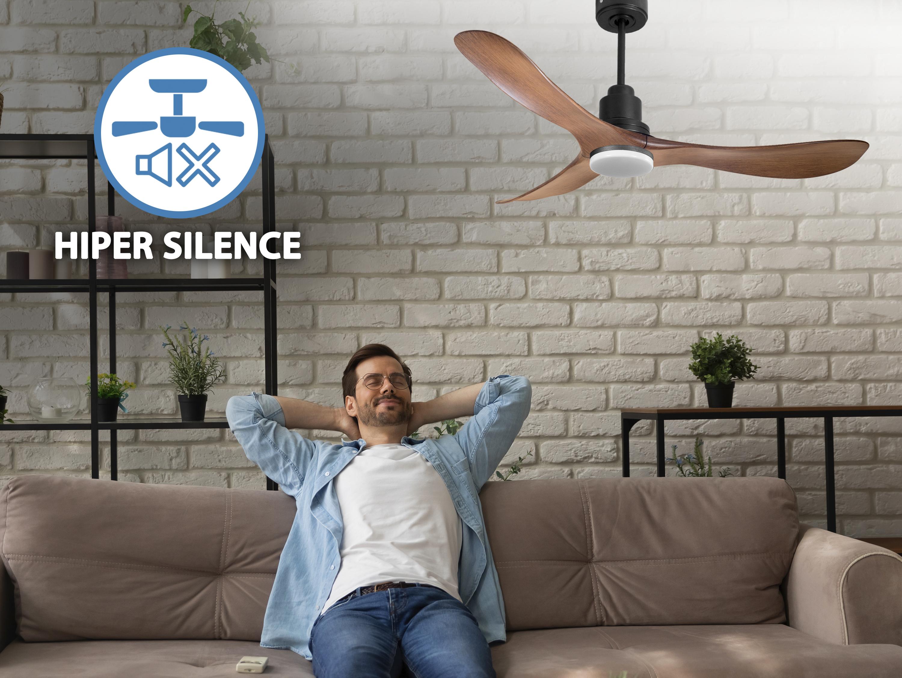 Ventilador de techo Modo Invierno/Verano Termostato Dimable Wifi Motor DC Techos Inclinados Mando a Distancia Luz tres tonos Hypersilence Memoria