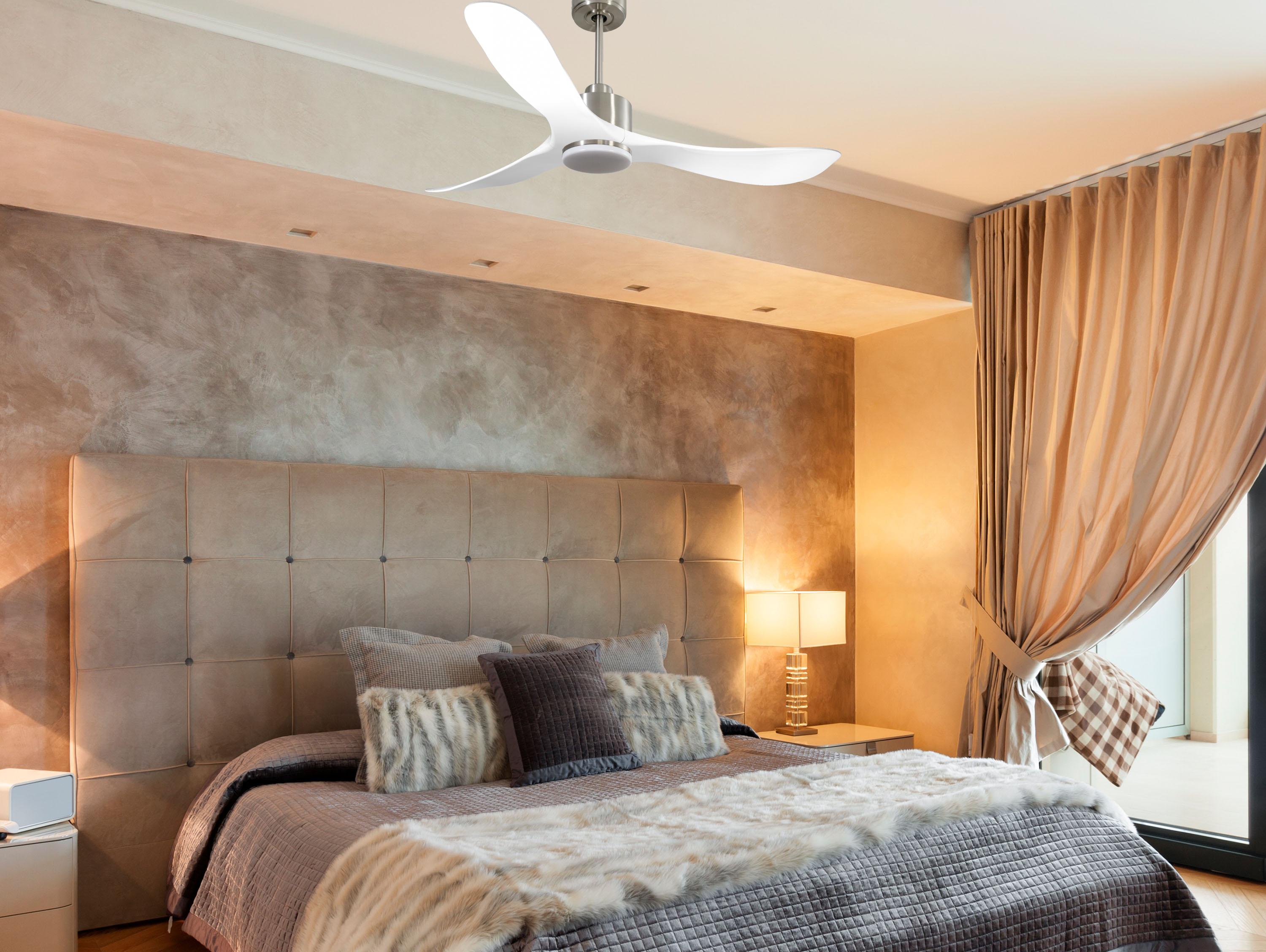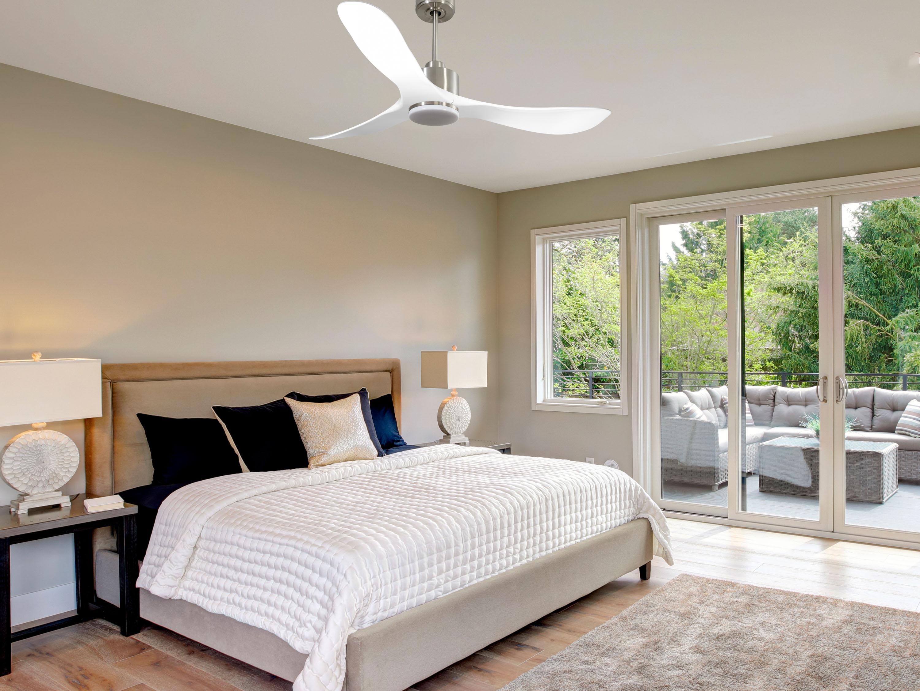 Las palas aerodinámicas de ABS otorgan al ventilador una gran ligereza. Han sido artesanalmente tratadas para estar equilibradas y no producir ningún tipo de vibración. Este modelo de 3 aspas en color blanco tiene un diámetro de 132 cm y alcanza gran velocidad.