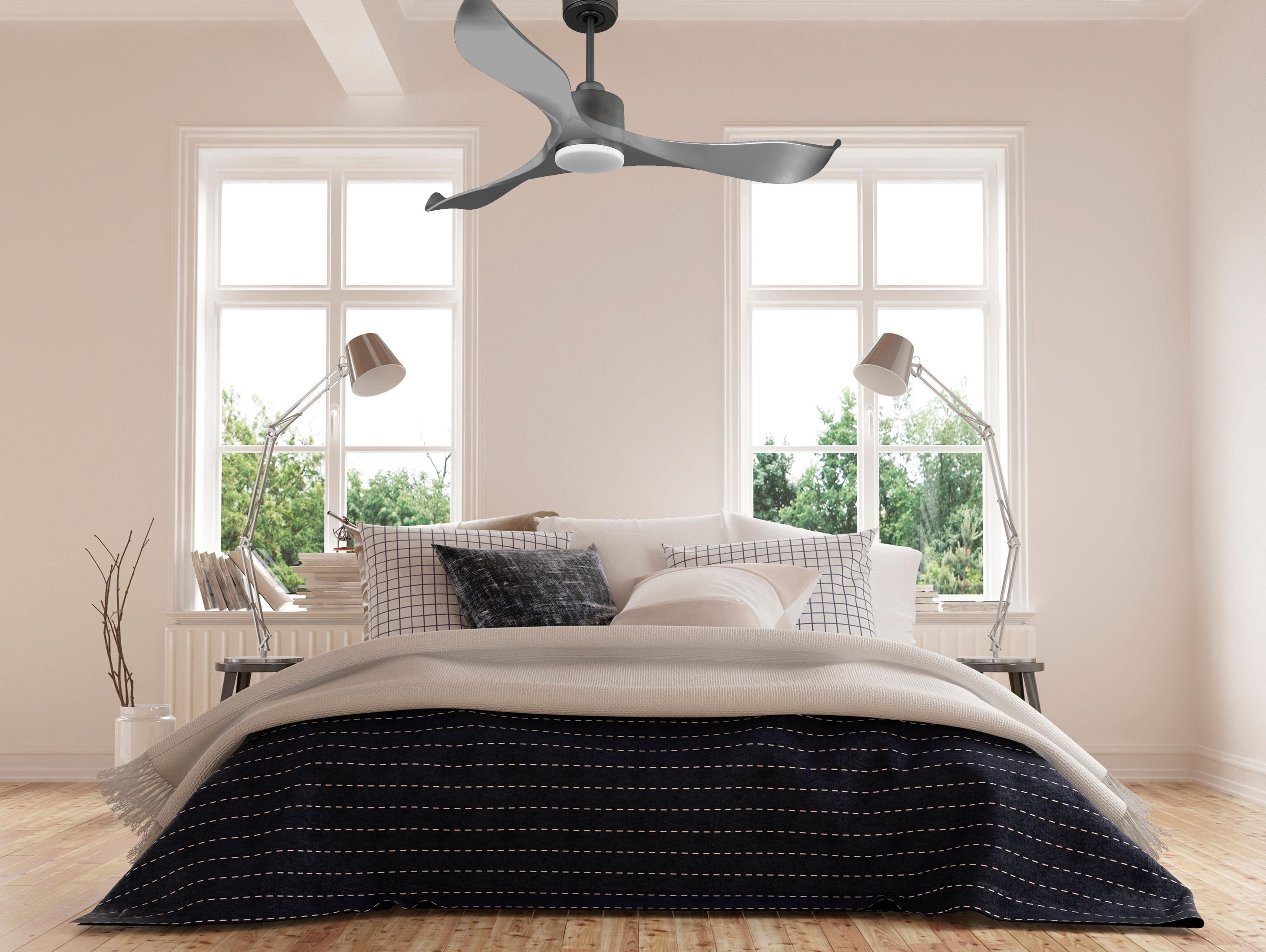 Ventilador de techo Reversible Termostato Dimable Wifi Motor DC Techos Inclinados Mando a Distancia Luz tres tonos Memoria
