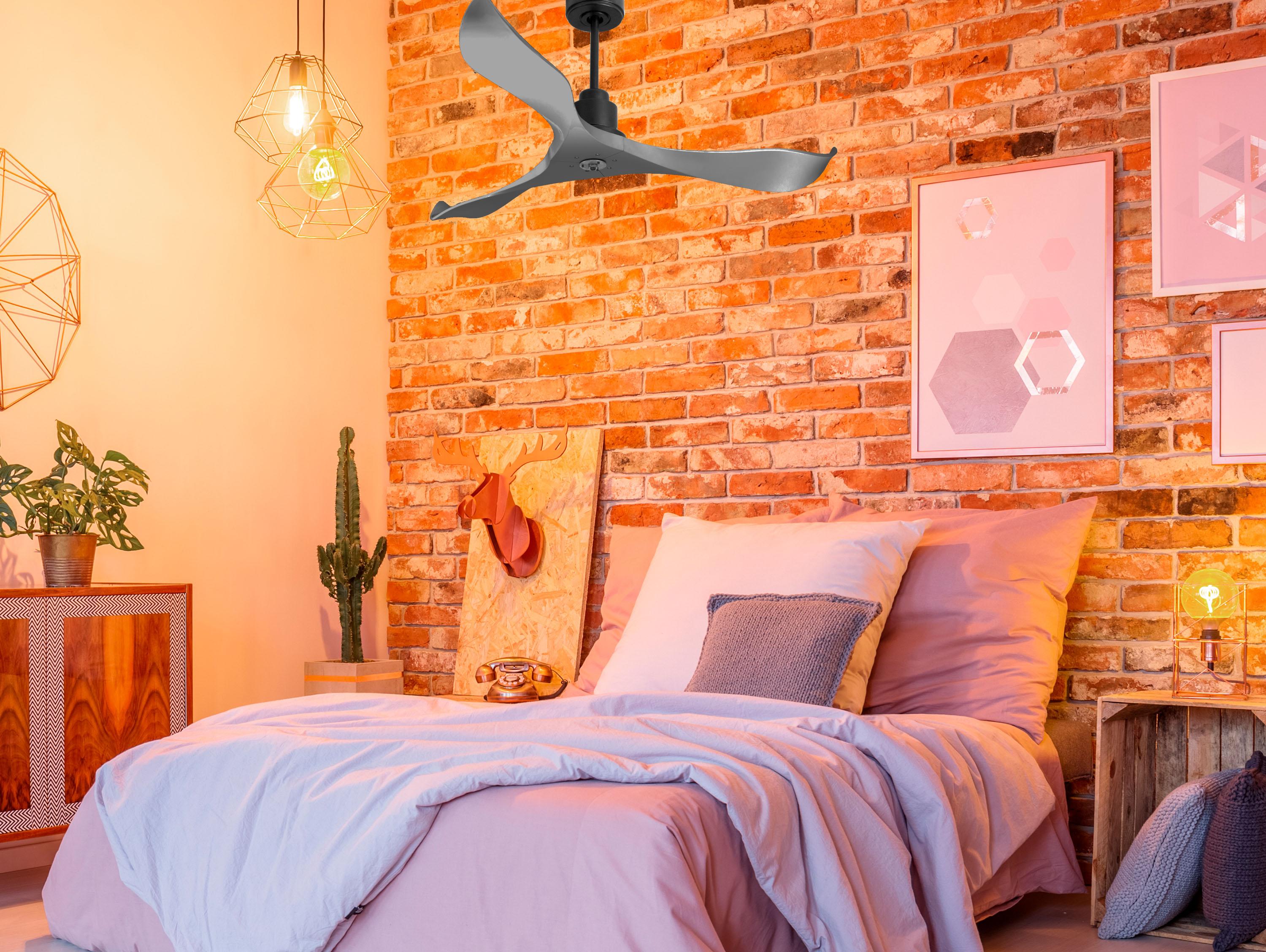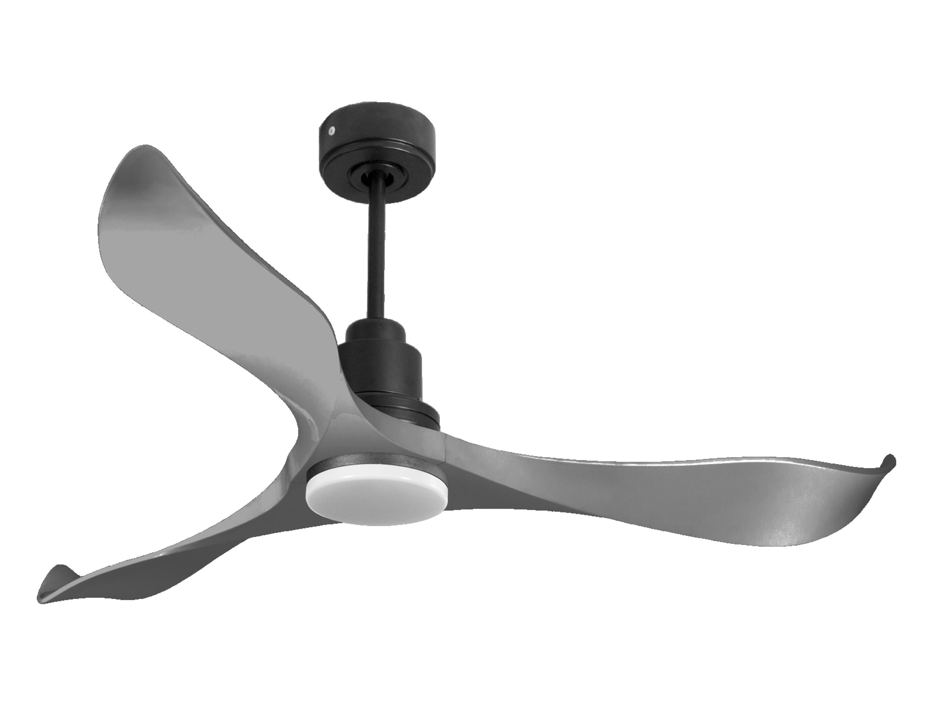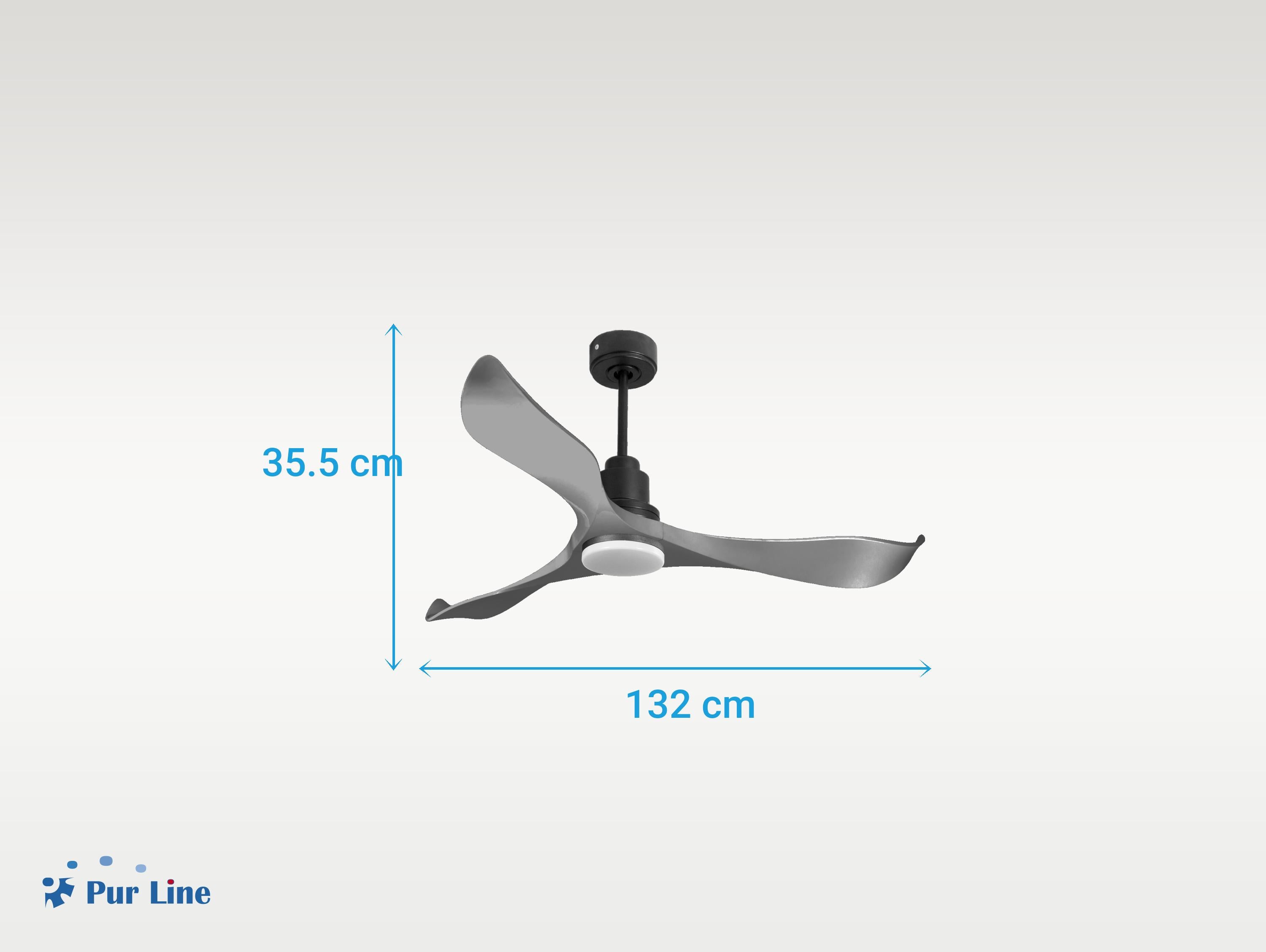 Las palas aerodinámicas de ABS otorgan al ventilador una gran ligereza. Han sido artesanalmente tratadas para estar equilibradas y no producir ningún tipo de vibración. Este modelo de 3 aspas en color gris tiene un diámetro de 132 cm y alcanza gran velocidad.