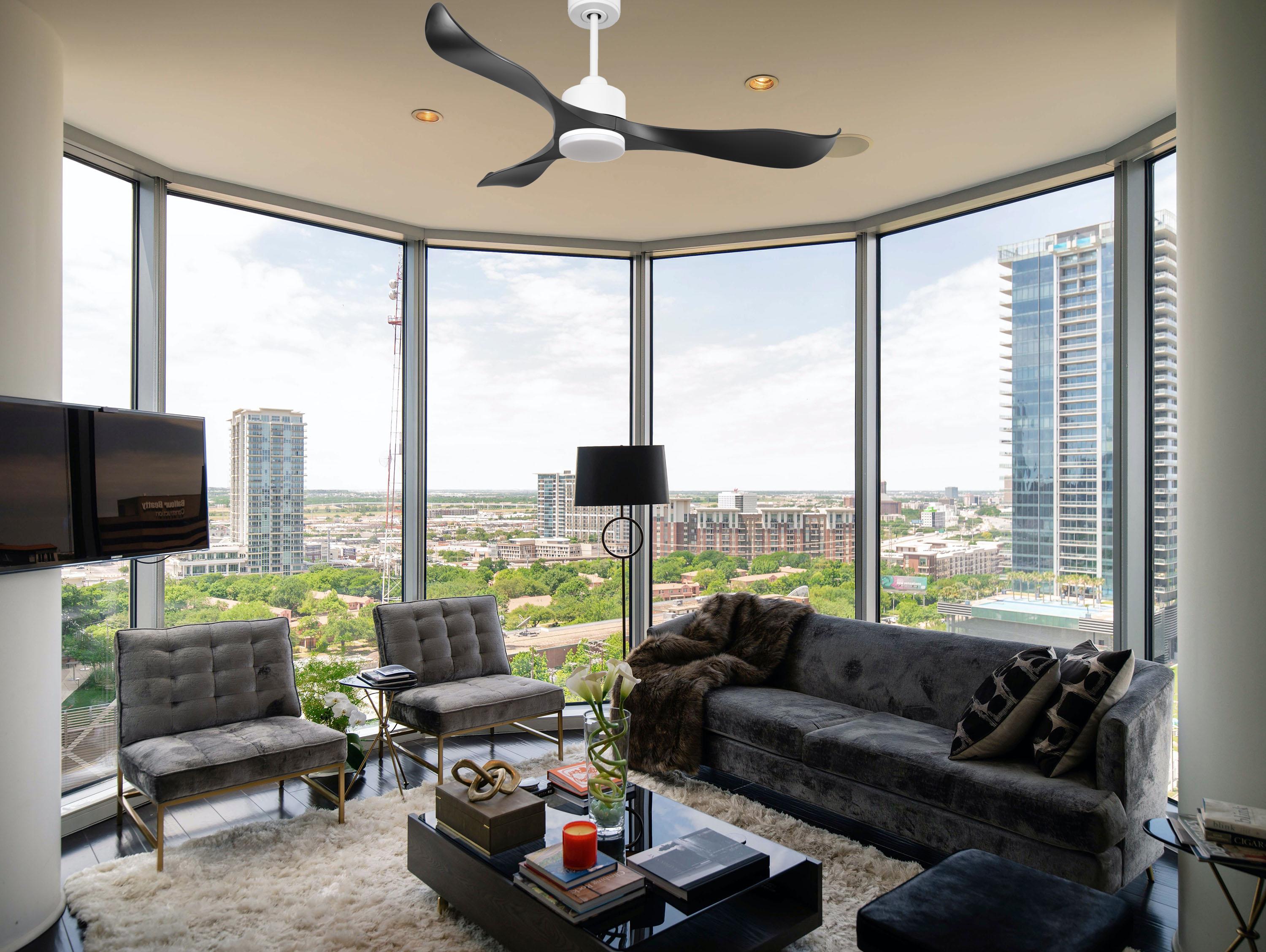 Ventilador de techo Reversible Termostato Dimable Wifi Motor DC Techos Inclinados Mando a Distancia Luz tres tonos Adaptador 2/3 Aspas Hypersilence Memoria