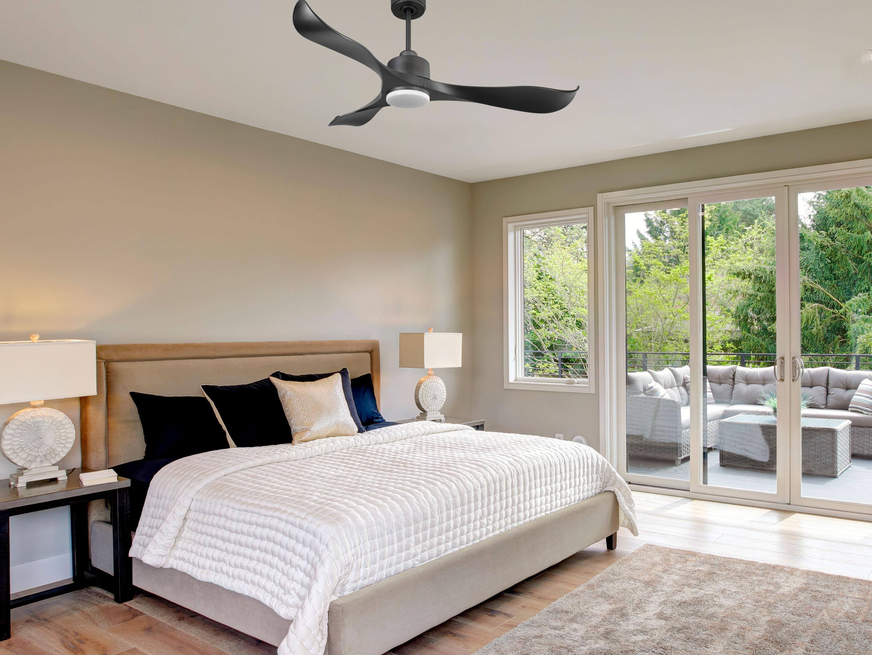 Ventilador de techo Reversible Termostato Dimable Wifi Motor DC Techos Inclinados Mando a Distancia Luz tres tonos Adaptador 2/3 Aspas Hypersilence Memoria