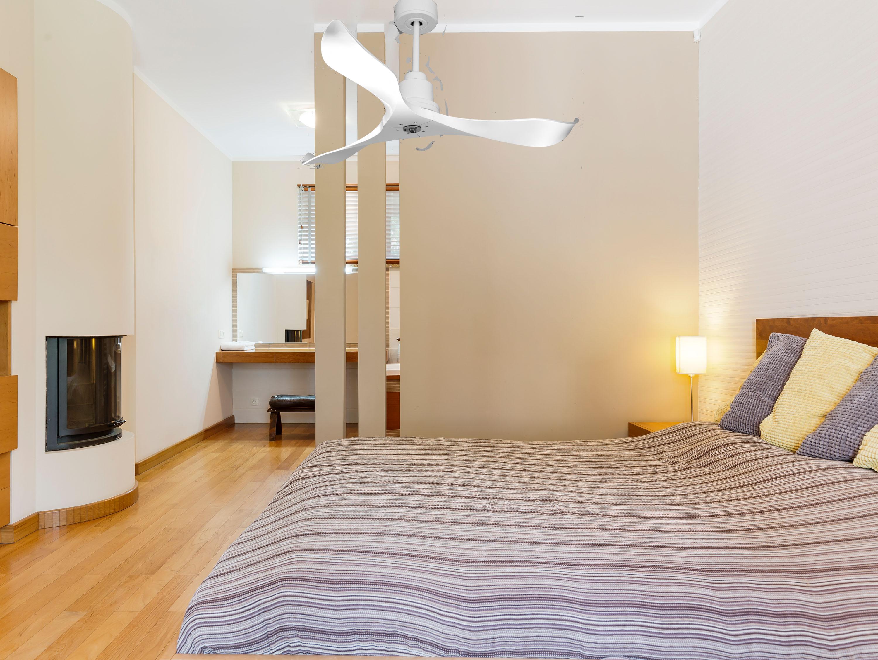 Ventilador de techo Reversible Termostato Dimable Wifi Motor DC Techos Inclinados Mando a Distancia Luz tres tonos Adaptador 2/3 Aspas Hypersilence Memoria