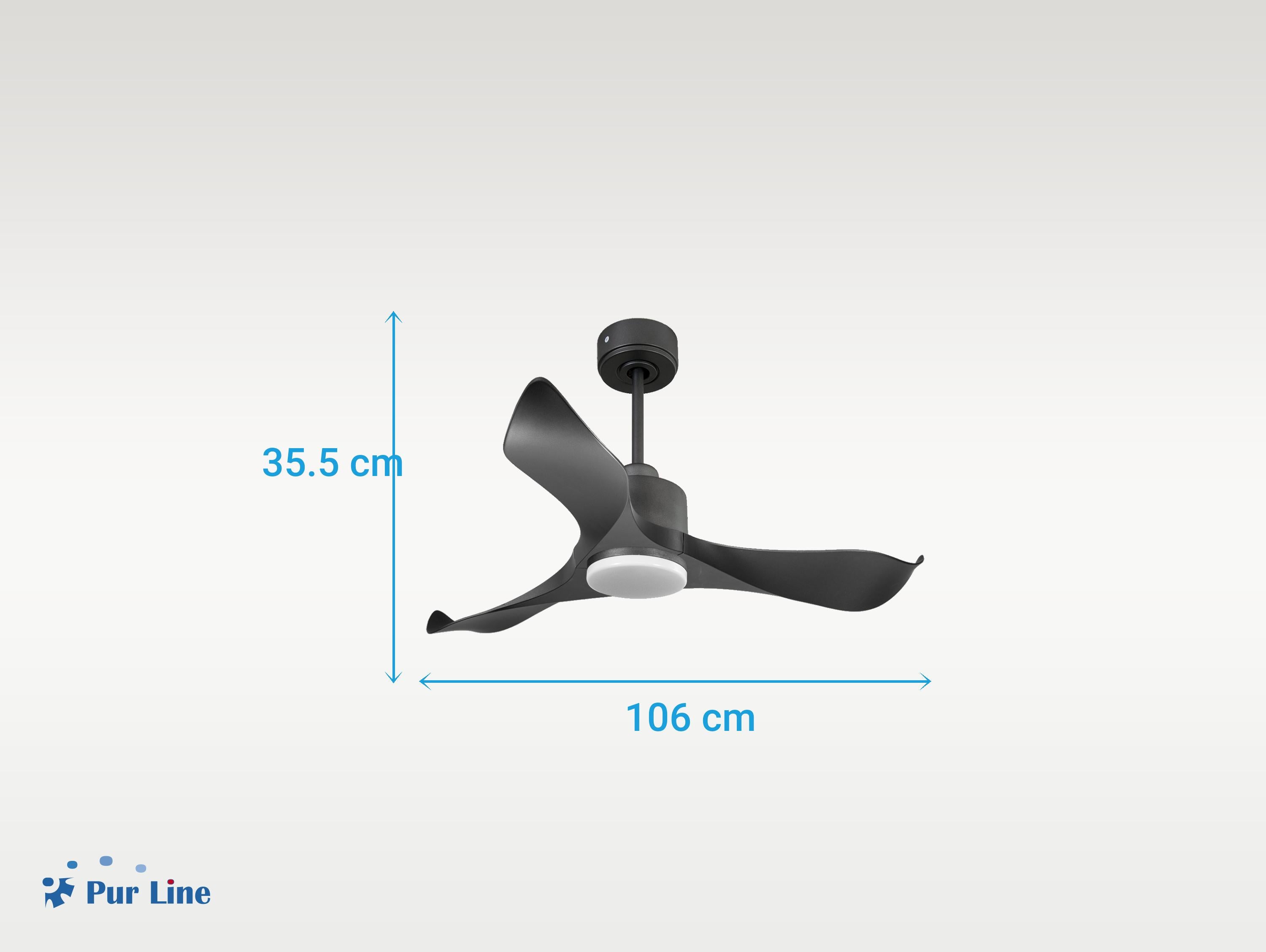 El motor de corriente continua (DC) Klassfan by Purline, es un motor de alta calidad con unas prestaciones de alto nivel. Permite instalaciones en techos de hasta 15º de inclinación y se sirve con dos tijas para que se instale a la altura adecuada (13.5 cm y 25 cm). Permite 2 o 3 aspas (dependiendo del modelo de aspa), pues dispone de una función de auto equilibrado. Todos los motores permite incluir un kit de luz.Es un motor con función Verano/Invierno (Desestratificador de aire), de forma que en invierno podrás invertir el movimiento del motor, para que su giro desplace el aire caliente hacia abajo, actuando como complemento de tu sistema de calefacción y favoreciendo un consumo optimizado con un importante ahorro energético. Además incluye un termostato en su base superior, que te permite programar el ventilador para funcione según la temperatura ambiente.Una ventaja muy destacada, es su sistema FullFlow patentado, que permite calibrar el consumo y la potencia del motor, a las necesidades de las palas elegidas, logrando unos resultados espectaculares en rendimiento energético. Nuestro sistema Fullflow permite una verdadera versatibilidad.Ademas cuenta con multitud de ventajas adicionales como 6 velocidades programables (fullflow), temporizador (8h) y posibilidad de control remoto mediante mando a distancia, mando de pared y conexión WiFi con la aplicación Tuya Smart, para poder utilizar el ventilador desde cualquier dispositivo móvil. Cuenta también con sistema certificado Hypersilence, una tecnología súper silenciosa a velocidad 3 y que permite utilizar el ventilador por las noches o en momentos de descansos, ofreciendo un rendimiento muy silencioso y con un consumo muy reducido, pudiendo llegar de 3 a 5 W, con aspas de 106 cm.También dispone de una función de memoria que guarda la configuración utilizada, tanto de velocidad como de luz, si así está equipado, de forma que cuando se apaga el ventilador se guarda y cuando se vuelve a encender arranca con la misma configuración. Las palas aerodinámicas de ABS otorgan al ventilador una gran ligereza. Han sido artesanalmente tratadas para estar equilibradas y no producir ningún tipo de vibración. Este modelo de 3 aspas en color negro tiene un diámetro de 106 cm y alcanza gran velocidad. El kit de luz optimizará todas las posibilidades de tu ventilador, y su instalación es super sencilla... no más de 1 minuto.