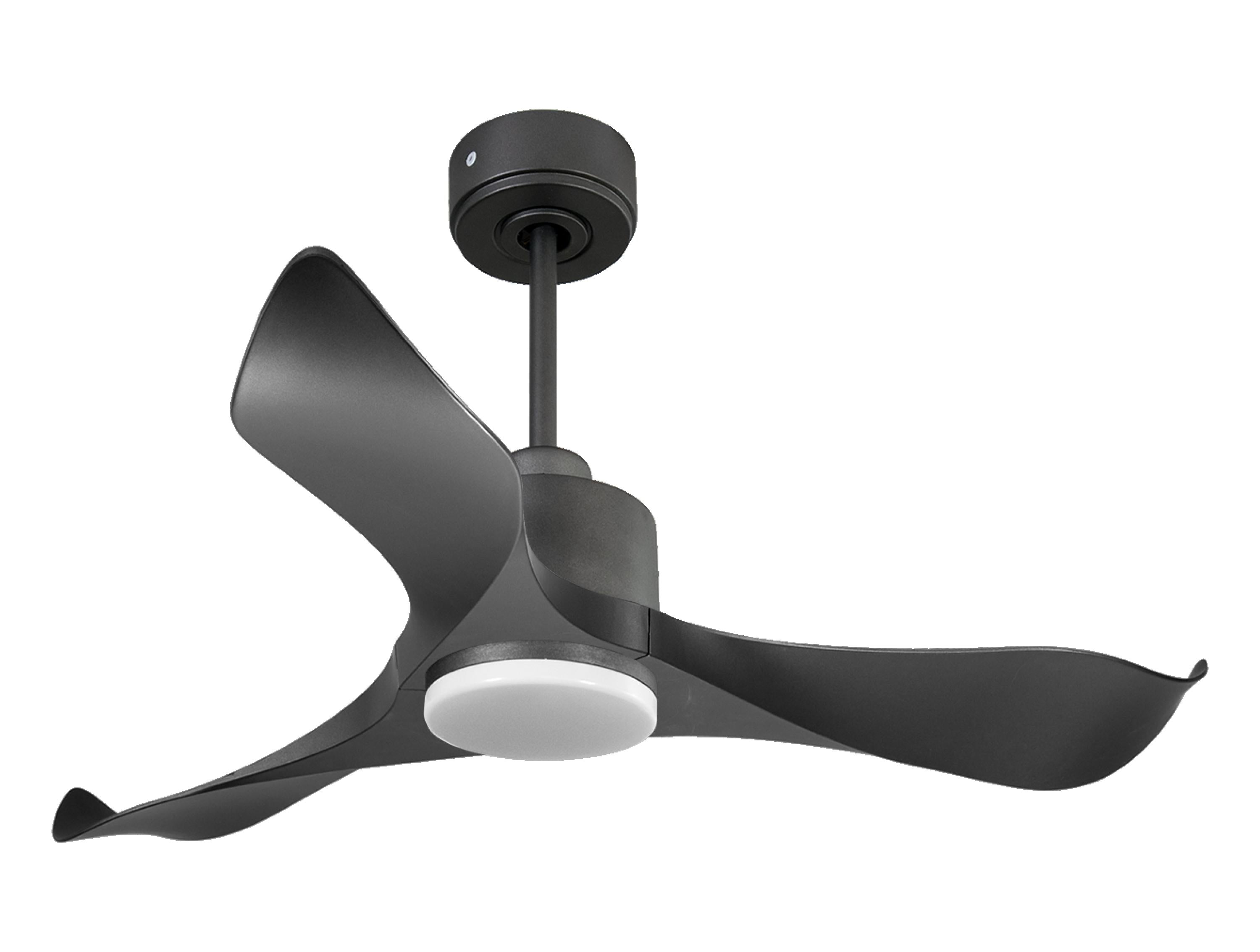 Las palas aerodinámicas de ABS otorgan al ventilador una gran ligereza. Han sido artesanalmente tratadas para estar equilibradas y no producir ningún tipo de vibración. Este modelo de 3 aspas en color negro tiene un diámetro de 106 cm y alcanza gran velocidad.