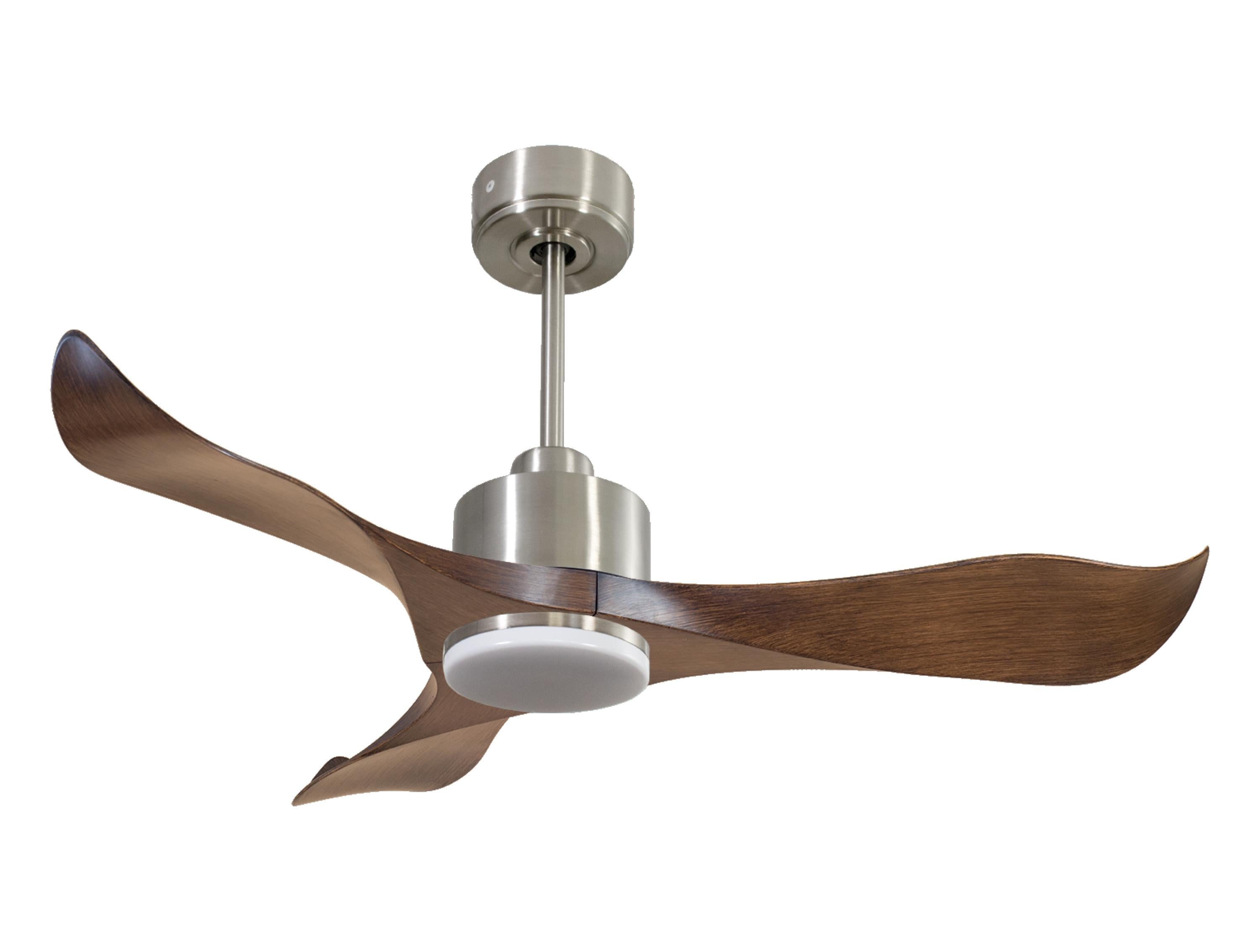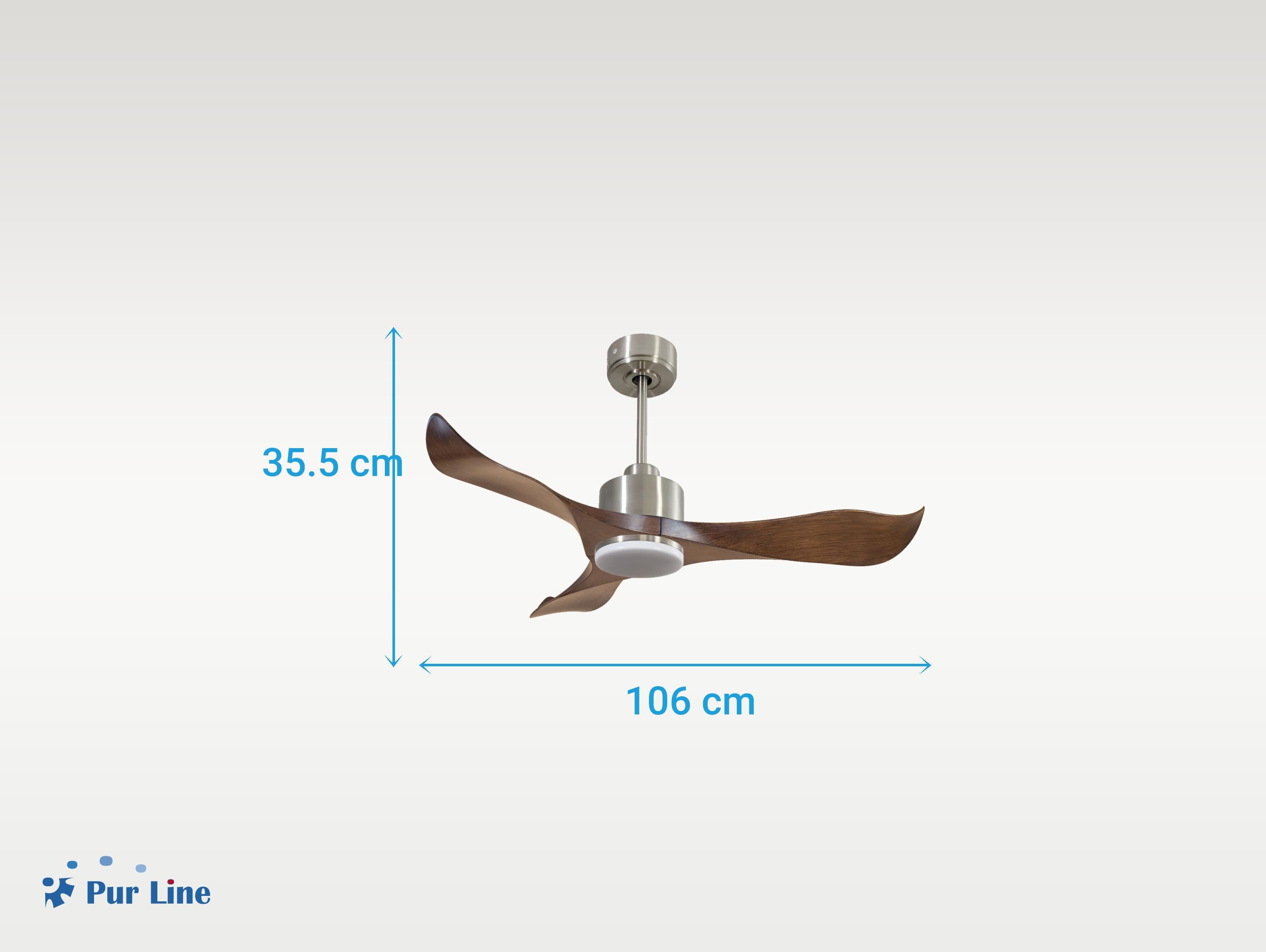 Las palas aerodinámicas de ABS otorgan al ventilador una gran ligereza. Han sido artesanalmente tratadas para estar equilibradas y no producir ningún tipo de vibración. Este modelo de 3 aspas en color marrón tiene un diámetro de 106 cm y alcanza gran velocidad.