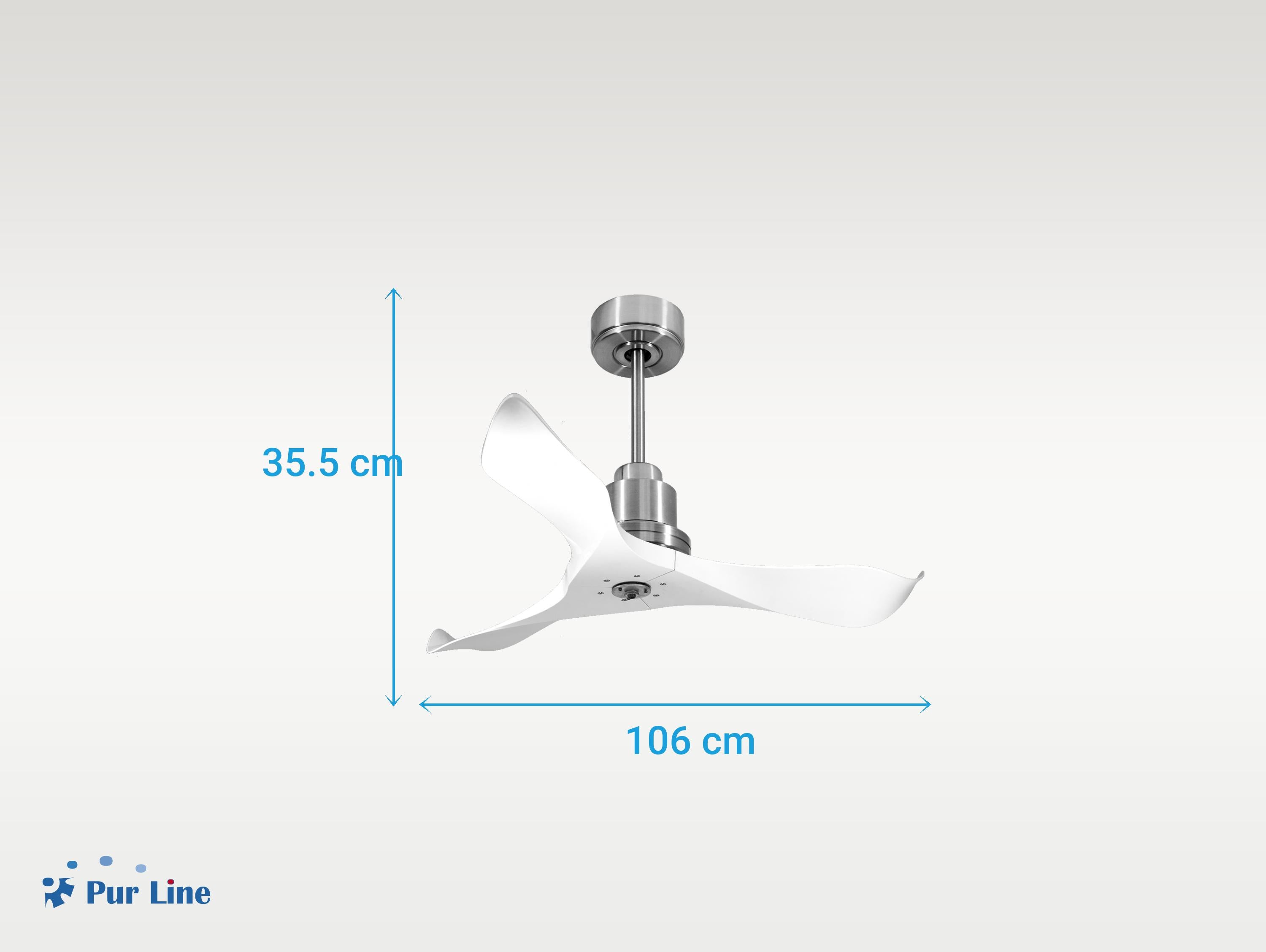 Ventilador de techo Modo Invierno/Verano Termostato Dimable Wifi Motor DC Techos Inclinados Mando a Distancia Luz tres tonos Adaptador 2/3 Aspas Hypersilence