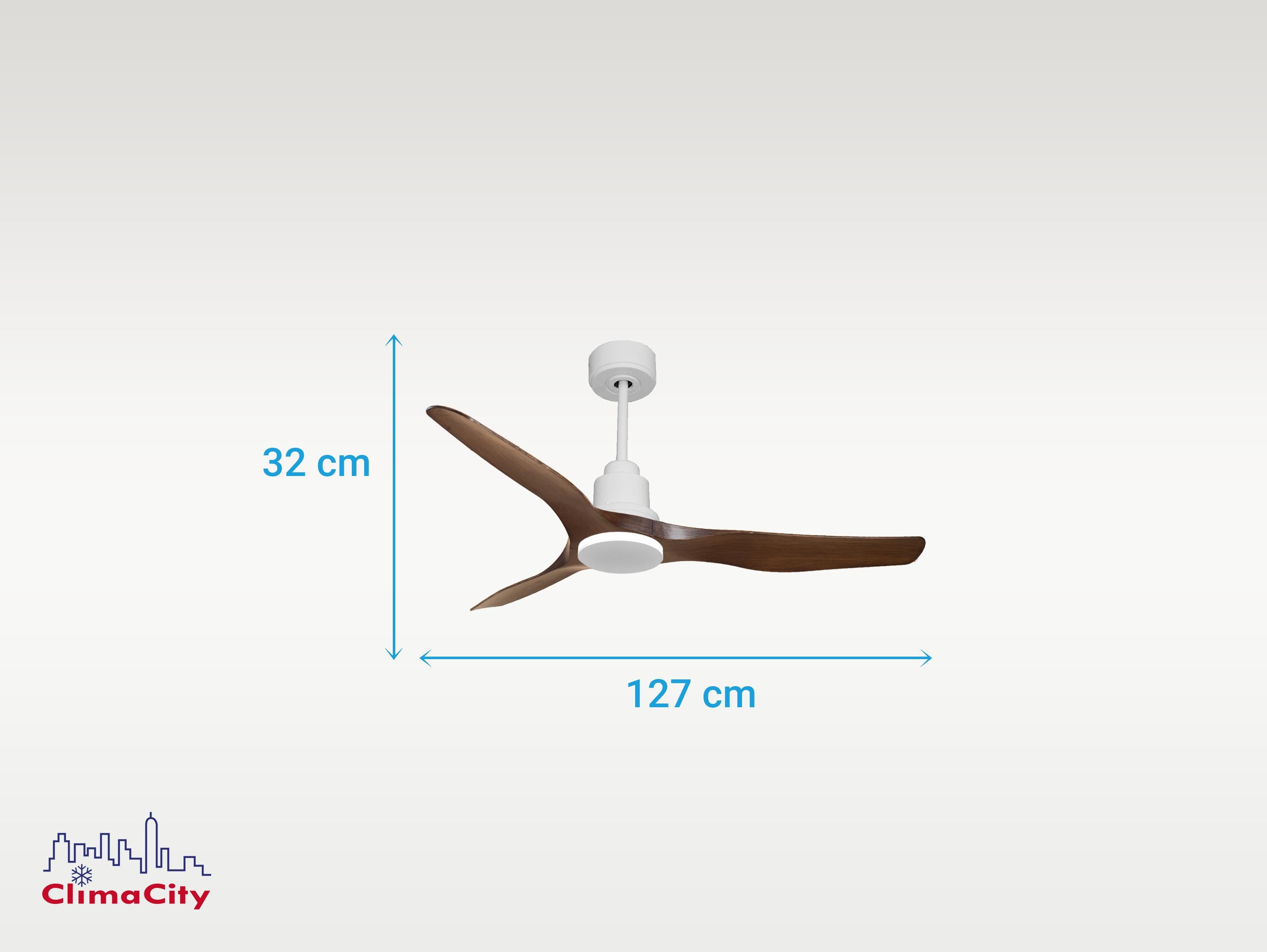 El motor de corriente continua (DC) Klassfan by Purline, es un motor de alta calidad con unas prestaciones de alto nivel. Permite instalaciones en techos de hasta 15º de inclinación y se sirve con dos tijas para que se instale a la altura adecuada (13.5 cm y 25 cm). Permite 2 o 3 aspas (dependiendo del modelo de aspa), pues dispone de una función de auto equilibrado. Todos los motores permite incluir un kit de luz.Es un motor con función Verano/Invierno (Desestratificador de aire), de forma que en invierno podrás invertir el movimiento del motor, para que su giro desplace el aire caliente hacia abajo, actuando como complemento de tu sistema de calefacción y favoreciendo un consumo optimizado con un importante ahorro energético. Además incluye un termostato en su base superior, que te permite programar el ventilador para funcione según la temperatura ambiente.Una ventaja muy destacada, es su sistema FullFlow patentado, que permite calibrar el consumo y la potencia del motor, a las necesidades de las palas elegidas, logrando unos resultados espectaculares en rendimiento energético. Nuestro sistema Fullflow permite una verdadera versatibilidad.Ademas cuenta con multitud de ventajas adicionales como 6 velocidades programables (fullflow), temporizador (8h) y posibilidad de control remoto mediante mando a distancia, mando de pared y conexión WiFi con la aplicación Tuya Smart, para poder utilizar el ventilador desde cualquier dispositivo móvil. Cuenta también con sistema certificado Hypersilence, una tecnología súper silenciosa a velocidad 3 y que permite utilizar el ventilador por las noches o en momentos de descansos, ofreciendo un rendimiento muy silencioso y con un consumo muy reducido, pudiendo llegar de 3 a 5 W, con aspas de 106 cm.También dispone de una función de memoria que guarda la configuración utilizada, tanto de velocidad como de luz, si así está equipado, de forma que cuando se apaga el ventilador se guarda y cuando se vuelve a encender arranca con la misma configuración. Las palas aerodinámicas de ABS otorgan al ventilador una gran ligereza. Han sido artesanalmente tratadas para estar equilibradas y no producir ningún tipo de vibración. Este modelo de 3 aspas en color marrón tiene un diámetro de 127 cm y alcanza gran velocidad.