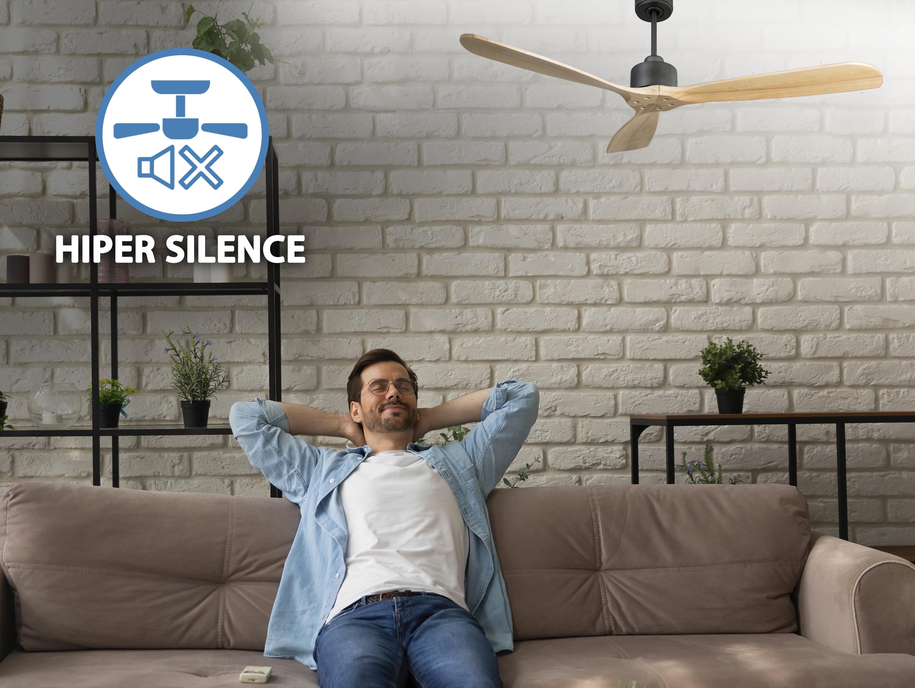 Ventilador de techo Reversible Termostato Wifi Motor DC Techos Inclinados Mando a Distancia Hypersilence Memoria FullWood