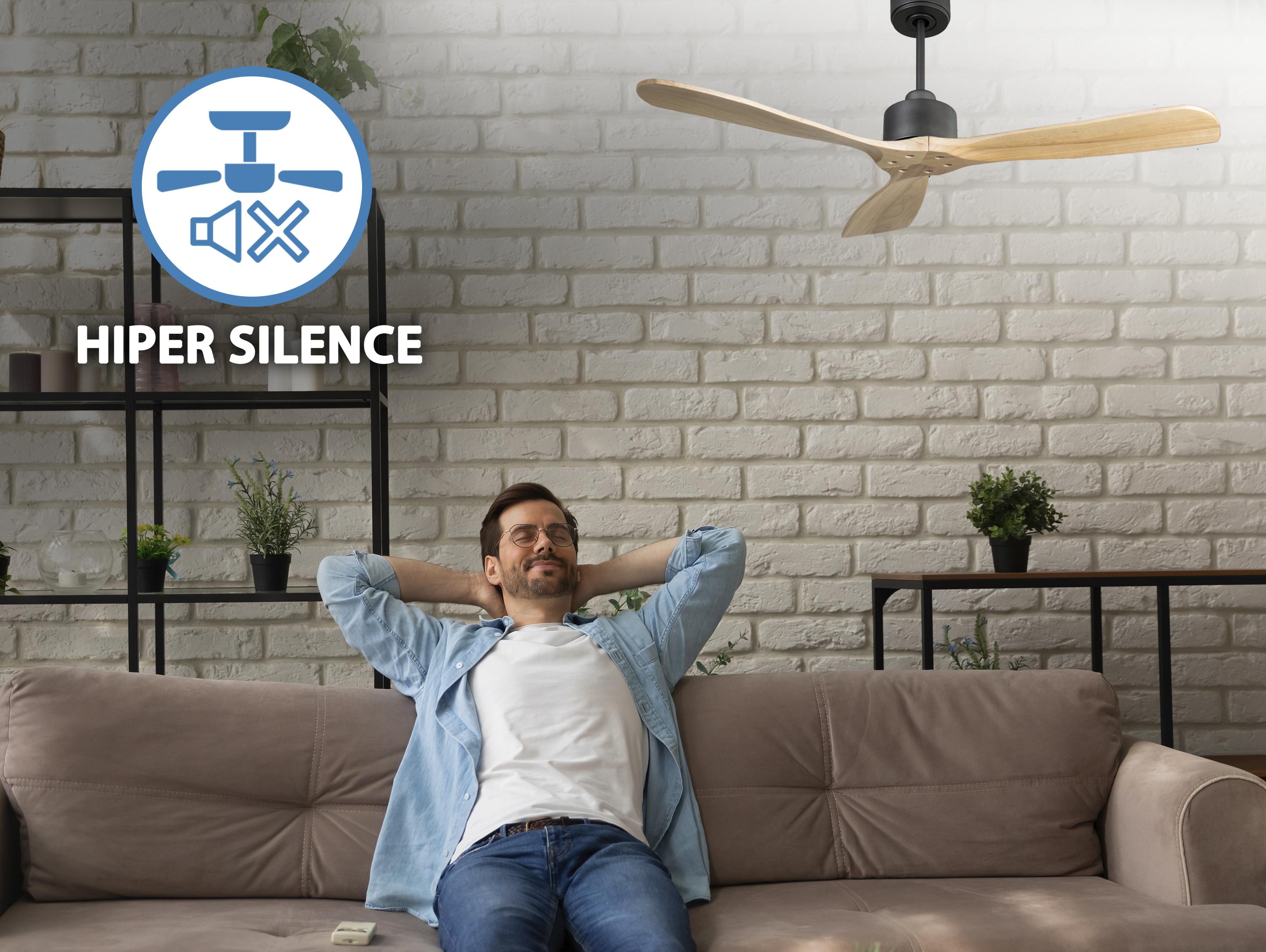 Ademas cuenta con multitud de ventajas adicionales como 6 velocidades programables (fullflow), temporizador (8h) y posibilidad de control remoto mediante mando a distancia, mando de pared y conexión WiFi con la aplicación Tuya Smart, para poder utilizar el ventilador desde cualquier dispositivo móvil. Cuenta también con sistema certificado Hypersilence, una tecnología súper silenciosa a velocidad 3 y que permite utilizar el ventilador por las noches o en momentos de descansos, ofreciendo un rendimiento muy silencioso y con un consumo muy reducido, pudiendo llegar de 3 a 5 W, con aspas de 106 cm.