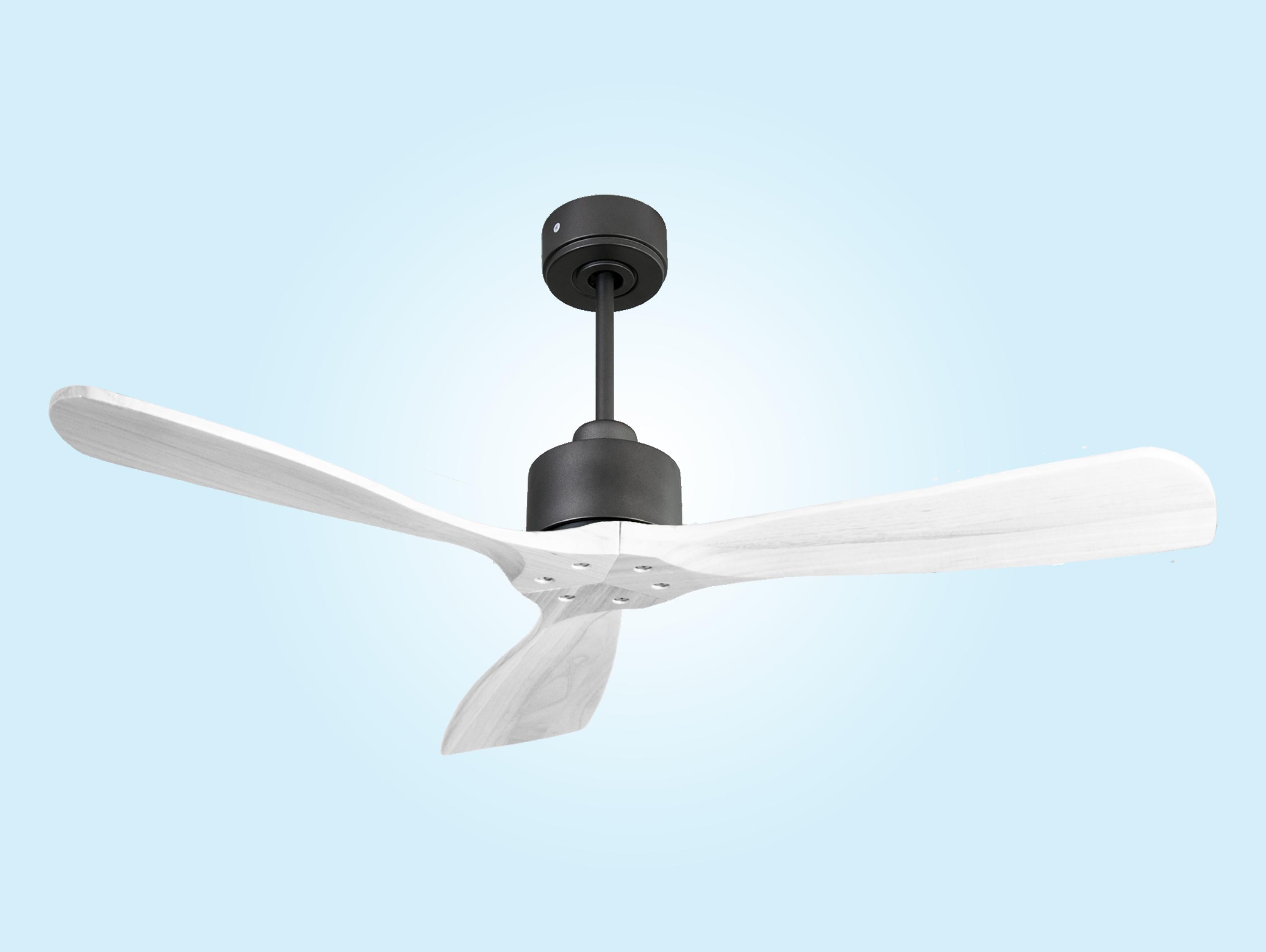 Las palas aerodinámicas de madera balsa maciza otorgan al ventilador una gran ligereza. Han sido artesanalmente tratadas para estar equilibradas y no producir ningún tipo de vibración. Este modelo de 3 aspas acabadas en madera blanca tiene un diámetro de 132 cm