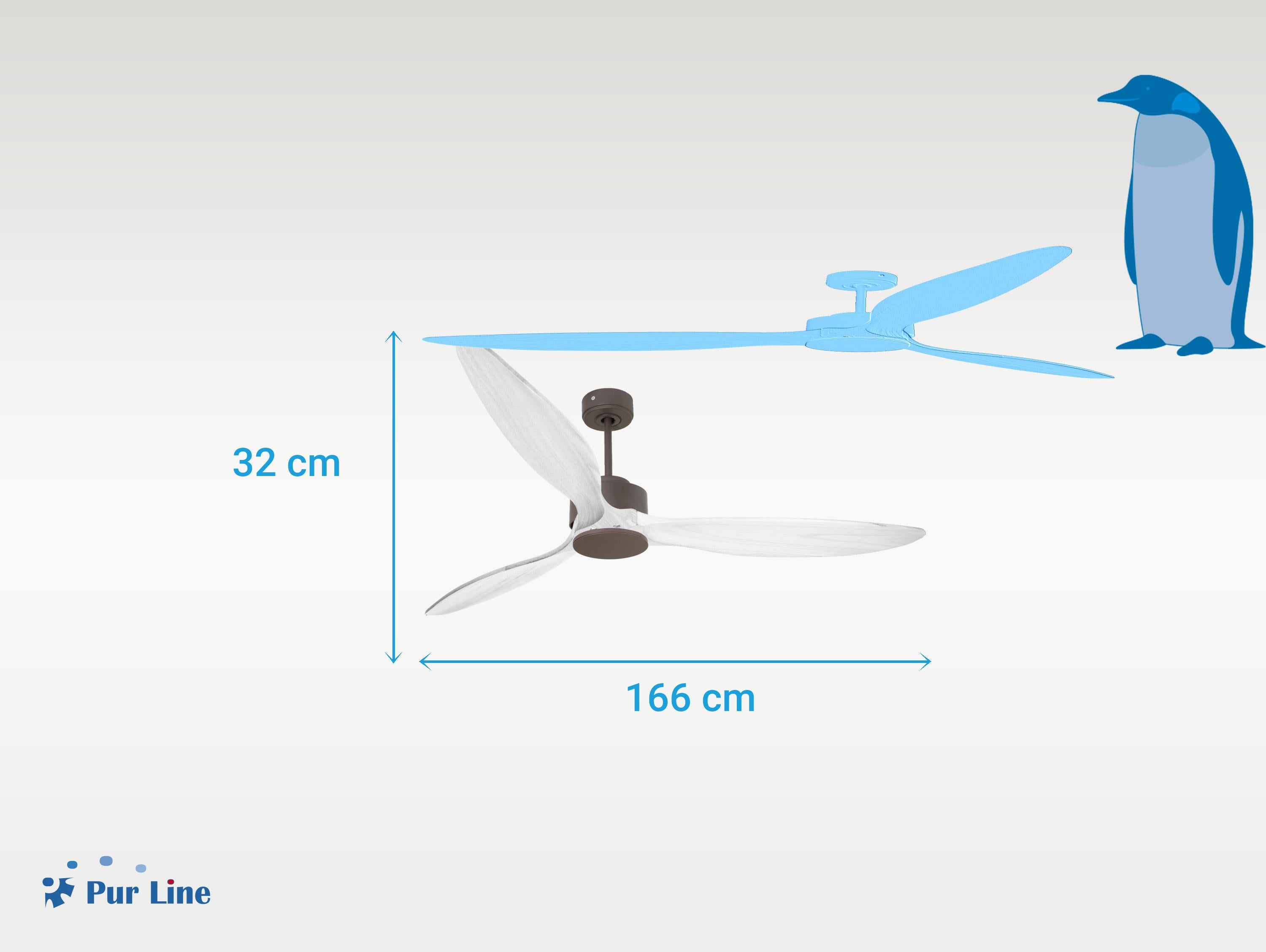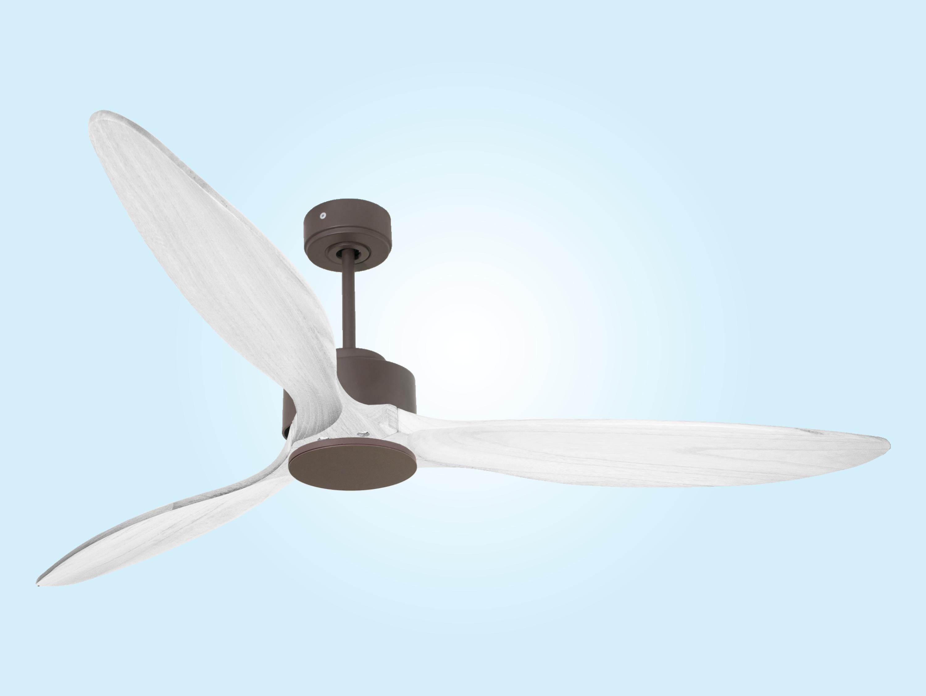 Las palas aerodinámicas de madera balsa maciza otorgan al ventilador una gran ligereza. Han sido artesanalmente tratadas para estar equilibradas y no producir ningún tipo de vibración. Este modelo de 3 aspas acabadas en madera blanca tiene un diámetro de 166 cm.