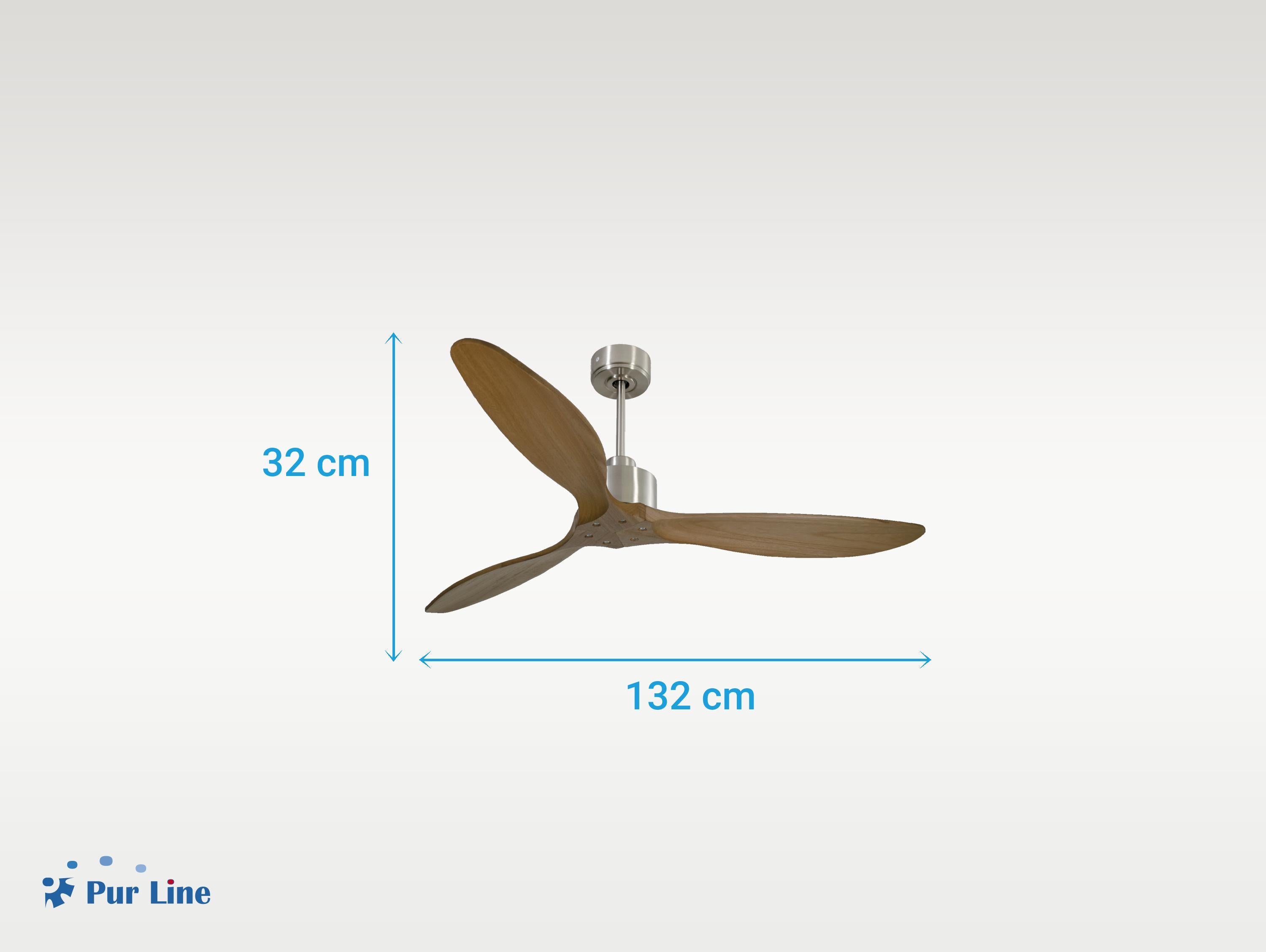 El motor de corriente continua (DC) Klassfan by Purline, es un motor de alta calidad con unas prestaciones de alto nivel. Permite instalaciones en techos de hasta 15º de inclinación y se sirve con dos tijas para que se instale a la altura adecuada (13.5 cm y 25 cm). Permite 2 o 3 aspas (dependiendo del modelo de aspa), pues dispone de una función de auto equilibrado. Todos los motores permite incluir un kit de luz.Es un motor con función Verano/Invierno (Desestratificador de aire), de forma que en invierno podrás invertir el movimiento del motor, para que su giro desplace el aire caliente hacia abajo, actuando como complemento de tu sistema de calefacción y favoreciendo un consumo optimizado con un importante ahorro energético. Además incluye un termostato en su base superior, que te permite programar el ventilador para funcione según la temperatura ambiente.Una ventaja muy destacada, es su sistema FullFlow patentado, que permite calibrar el consumo y la potencia del motor, a las necesidades de las palas elegidas, logrando unos resultados espectaculares en rendimiento energético. Nuestro sistema Fullflow permite una verdadera versatibilidad.Ademas cuenta con multitud de ventajas adicionales como 6 velocidades programables (fullflow), temporizador (8h) y posibilidad de control remoto mediante mando a distancia, mando de pared y conexión WiFi con la aplicación Tuya Smart, para poder utilizar el ventilador desde cualquier dispositivo móvil. Cuenta también con sistema certificado Hypersilence, una tecnología súper silenciosa a velocidad 3 y que permite utilizar el ventilador por las noches o en momentos de descansos, ofreciendo un rendimiento muy silencioso y con un consumo muy reducido, pudiendo llegar de 3 a 5 W, con aspas de 106 cm.También dispone de una función de memoria que guarda la configuración utilizada, tanto de velocidad como de luz, si así está equipado, de forma que cuando se apaga el ventilador se guarda y cuando se vuelve a encender arranca con la misma configuración. Las palas aerodinámicas de madera balsa maciza otorgan al ventilador una gran ligereza. Han sido artesanalmente tratadas para estar equilibradas y no producir ningún tipo de vibración. Este modelo de 3 aspas acabadas en madera oscura tiene un diámetro de 132 cm.