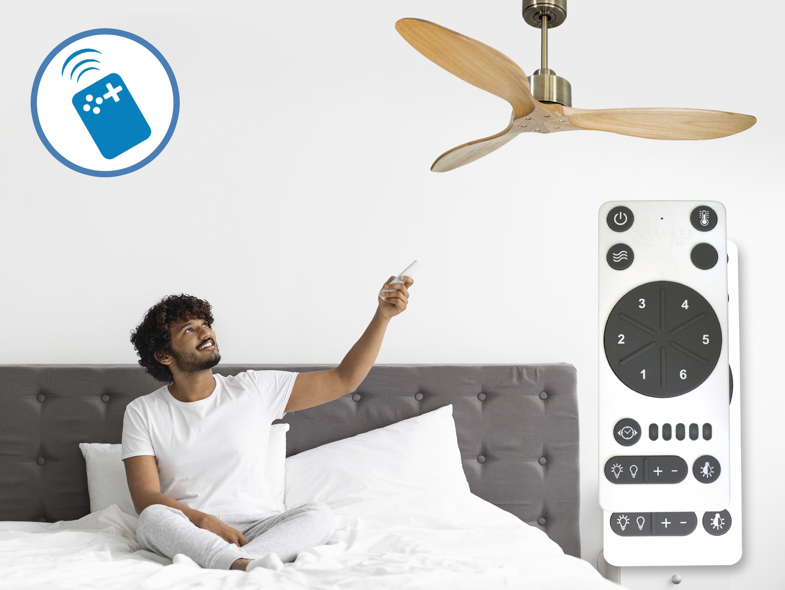 Ventilador de techo Modo Invierno/Verano Termostato Wifi Motor DC Techos Inclinados Mando a Distancia Hypersilence Memoria FullWood Vendible Shopify (AUTOMATICO)