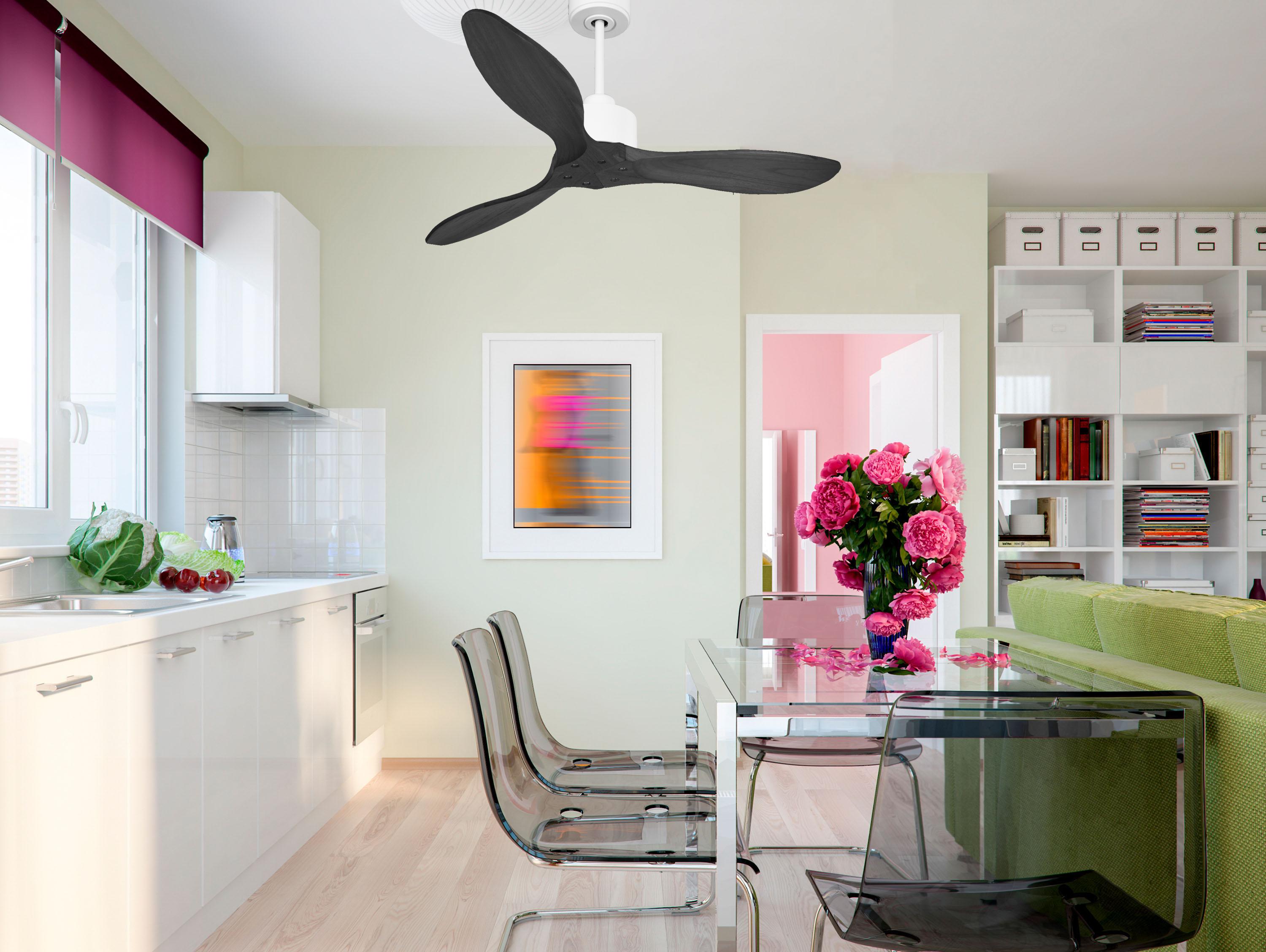 Ventilador de techo Reversible Termostato Wifi Motor DC Techos Inclinados Mando a Distancia Hypersilence Memoria FullWood