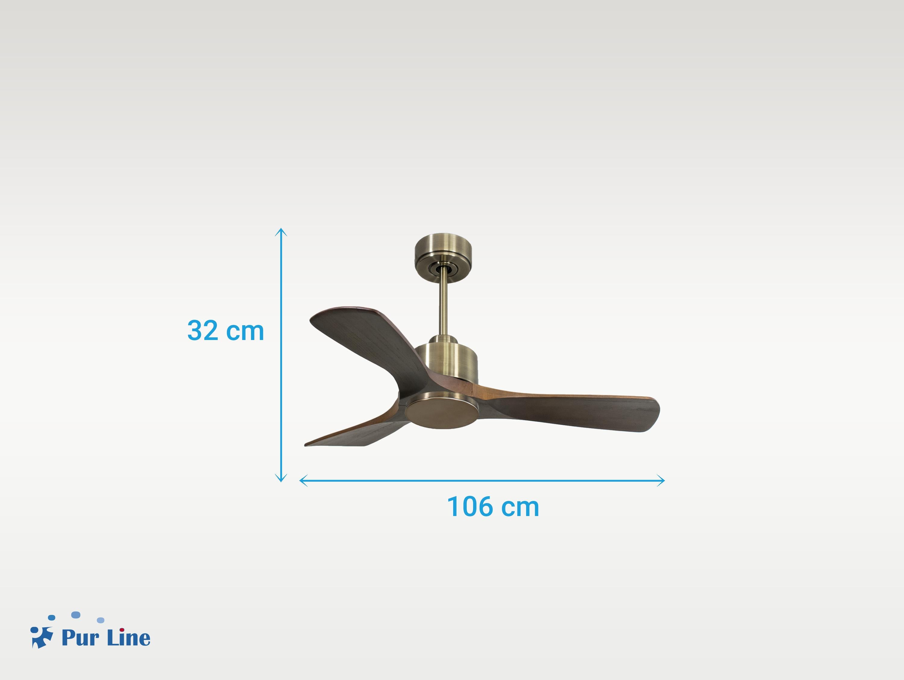 Las palas aerodinámicas de madera balsa maciza otorgan al ventilador una gran ligereza. Han sido artesanalmente tratadas para estar equilibradas y no producir ningún tipo de vibración. Este modelo de 3 aspas acabadas en madera oscura tiene un diámetro de 106 cm