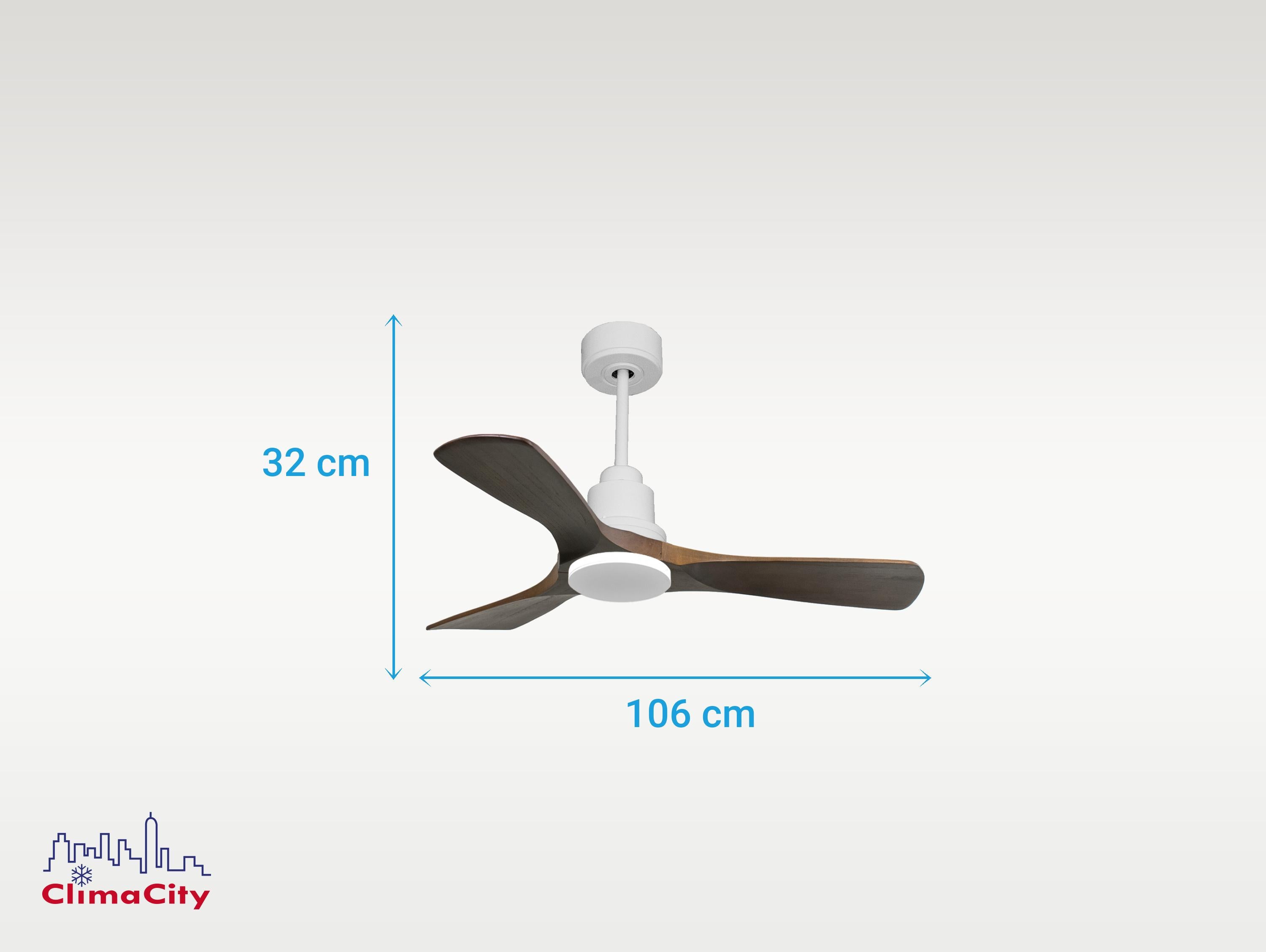 Las palas aerodinámicas de madera balsa maciza otorgan al ventilador una gran ligereza. Han sido artesanalmente tratadas para estar equilibradas y no producir ningún tipo de vibración. Este modelo de 3 aspas acabadas en madera oscura tiene un diámetro de 106 cm