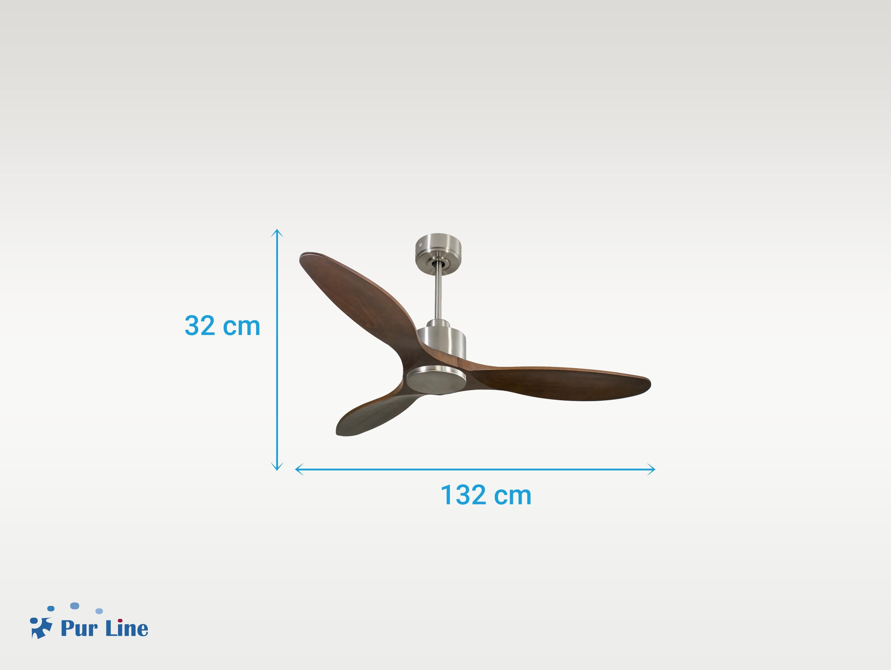 Las palas aerodinámicas de madera balsa maciza otorgan al ventilador una gran ligereza. Han sido artesanalmente tratadas para estar equilibradas y no producir ningún tipo de vibración. Este modelo de 3 aspas acabadas en madera oscura tiene un diámetro de 132 cm 132cm